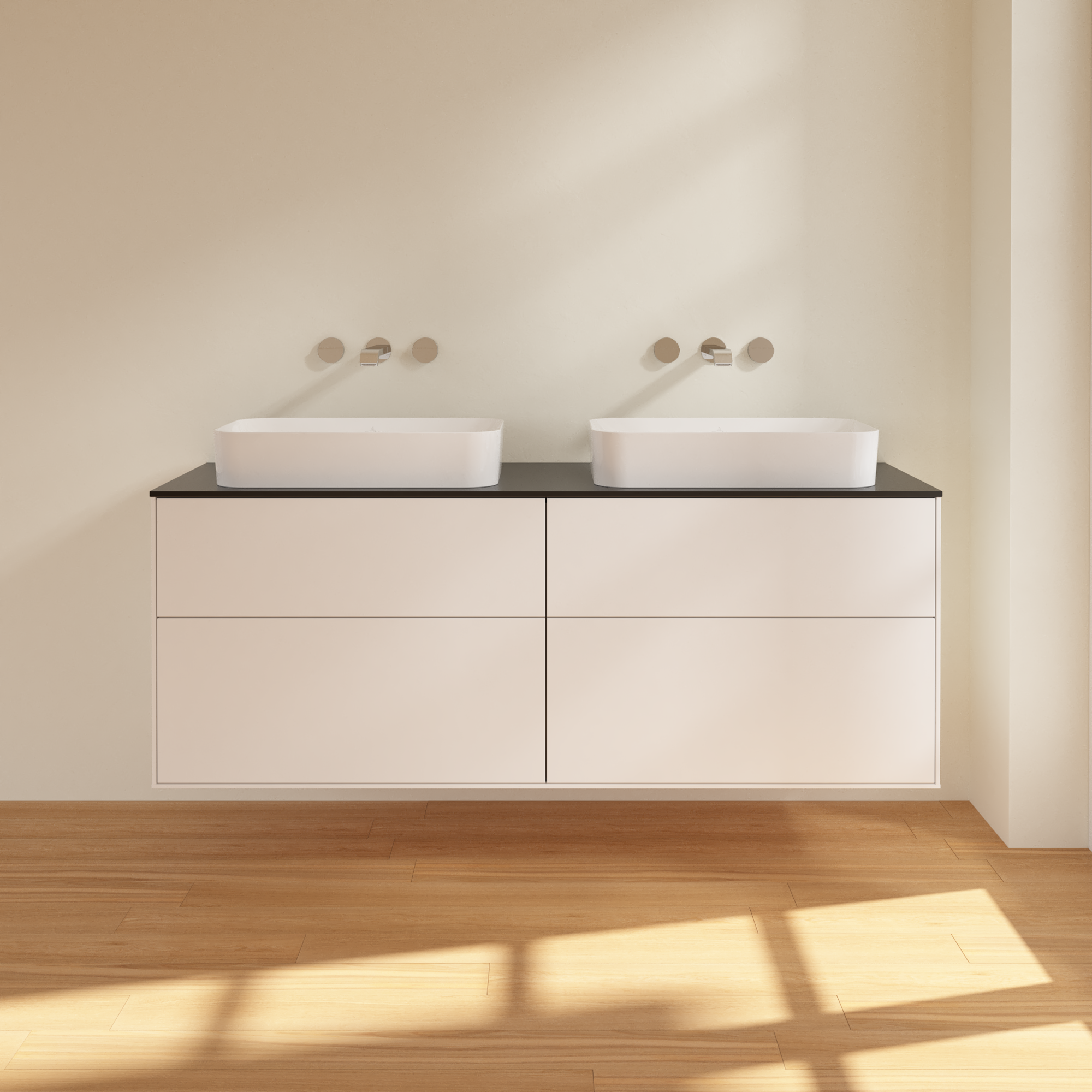 Finion Mobile sottolavabo, 4 vani estraibili, 1600x603x501mm, Corpo: White Matt Lacquer, Fronte: White Matt Lacquer, Piastra di copertura: Glass Black Matt