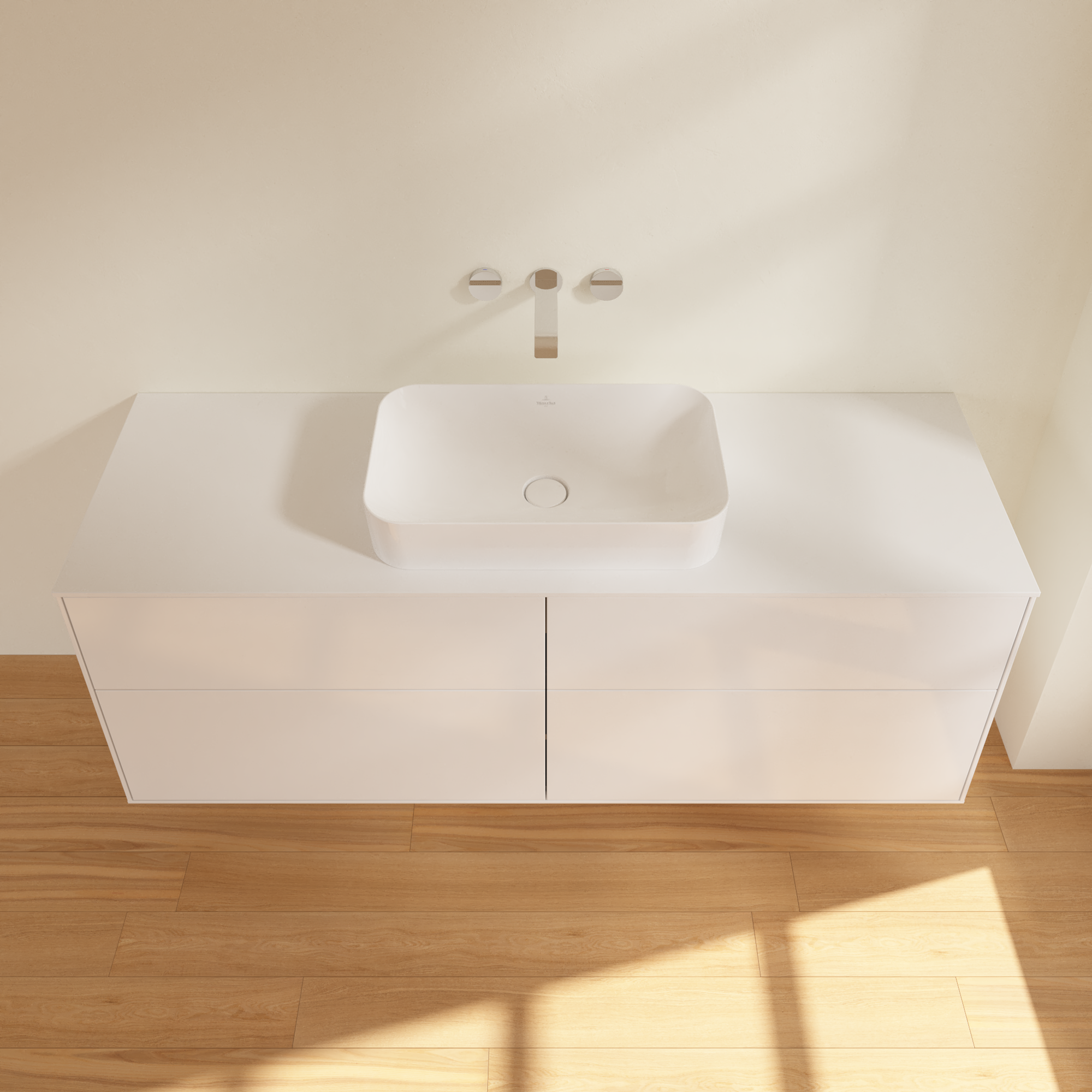 Finion Mobile sottolavabo, 4 vani estraibili, 1600x603x501mm, Corpo: Glossy White Lacquer, Fronte: Glossy White Lacquer, Piastra di copertura: Glass White Matt