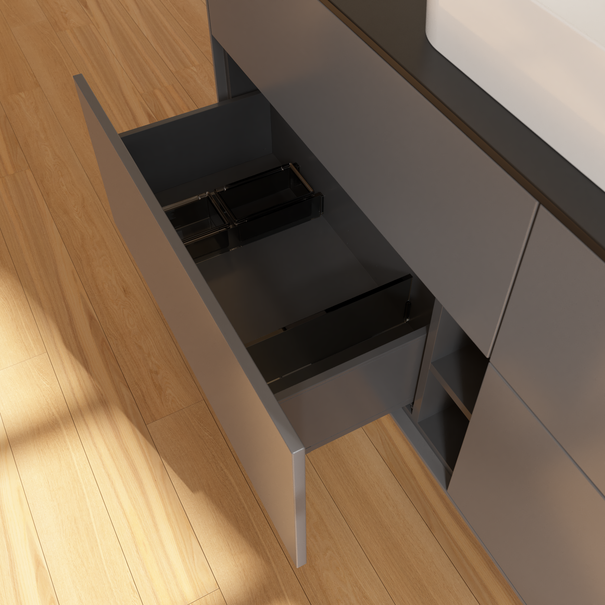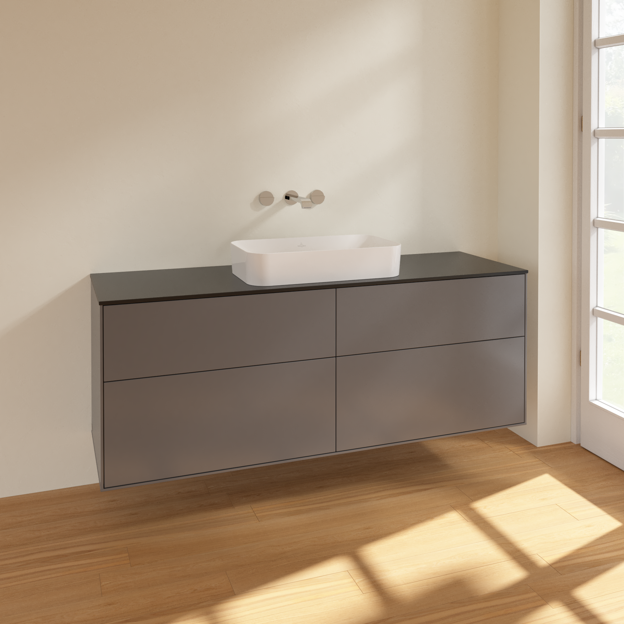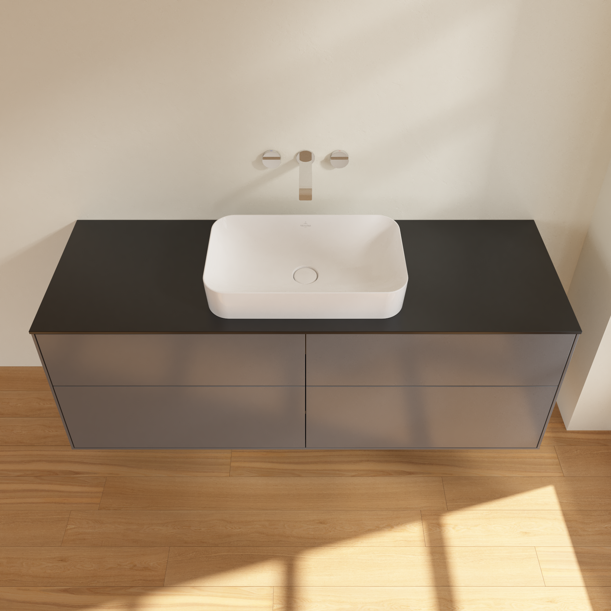 Finion Mobile sottolavabo, 4 vani estraibili, 1600x603x501mm, Corpo: Anthracite Matt Lacquer, Fronte: Anthracite Matt Lacquer, Piastra di copertura: Glass Black Matt