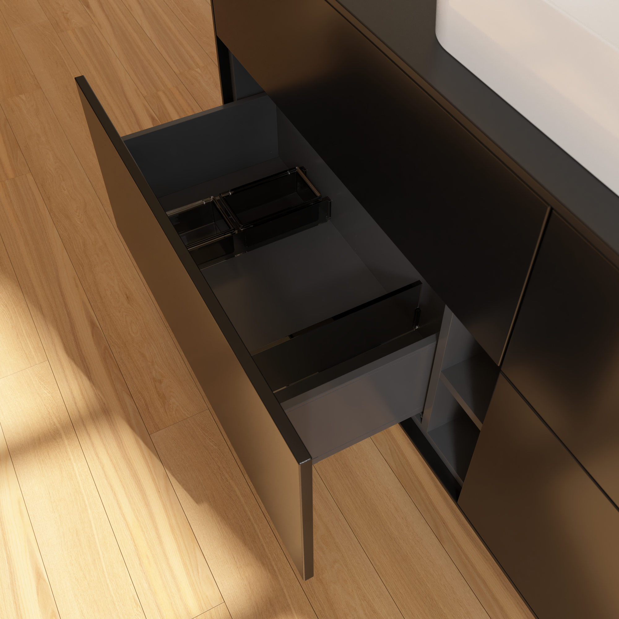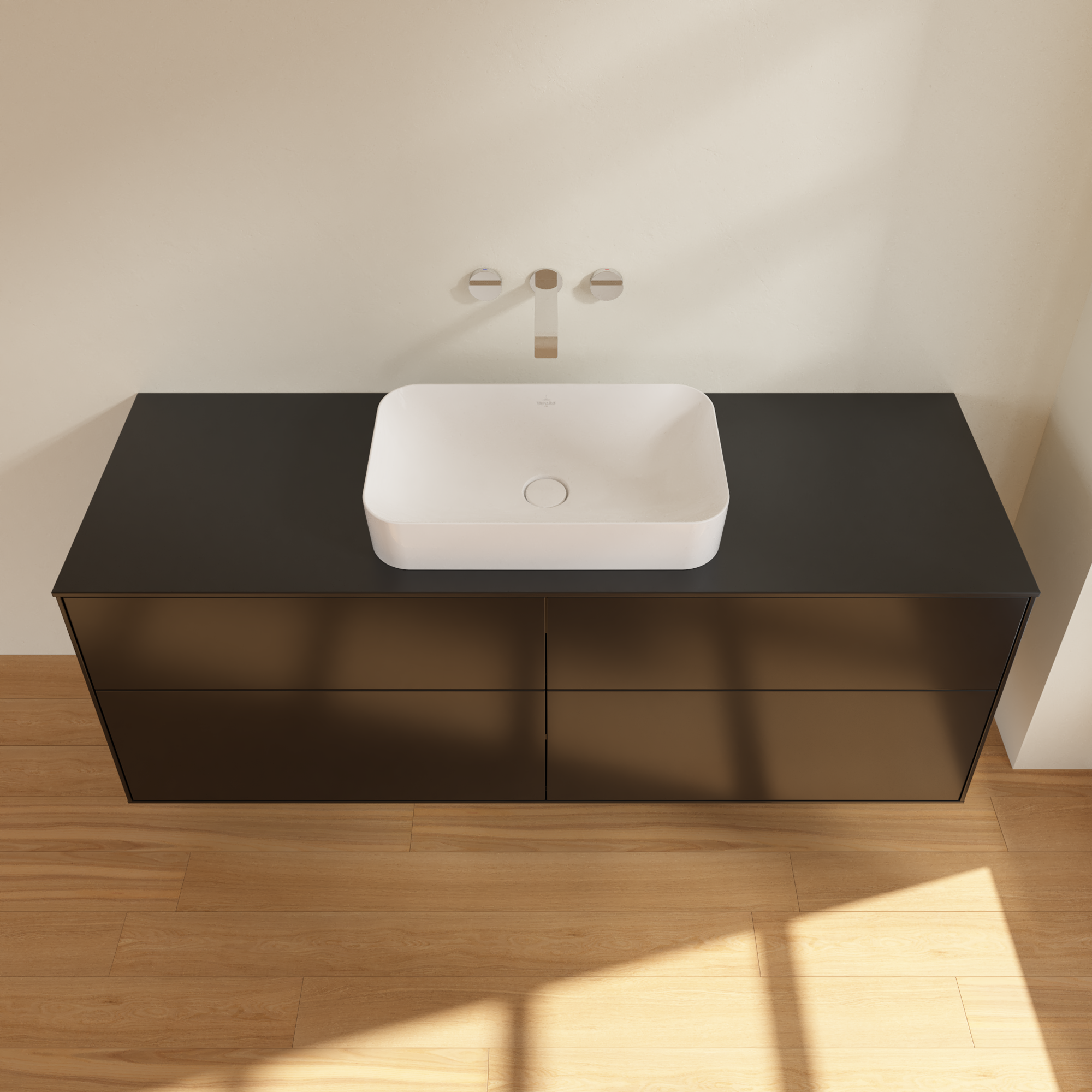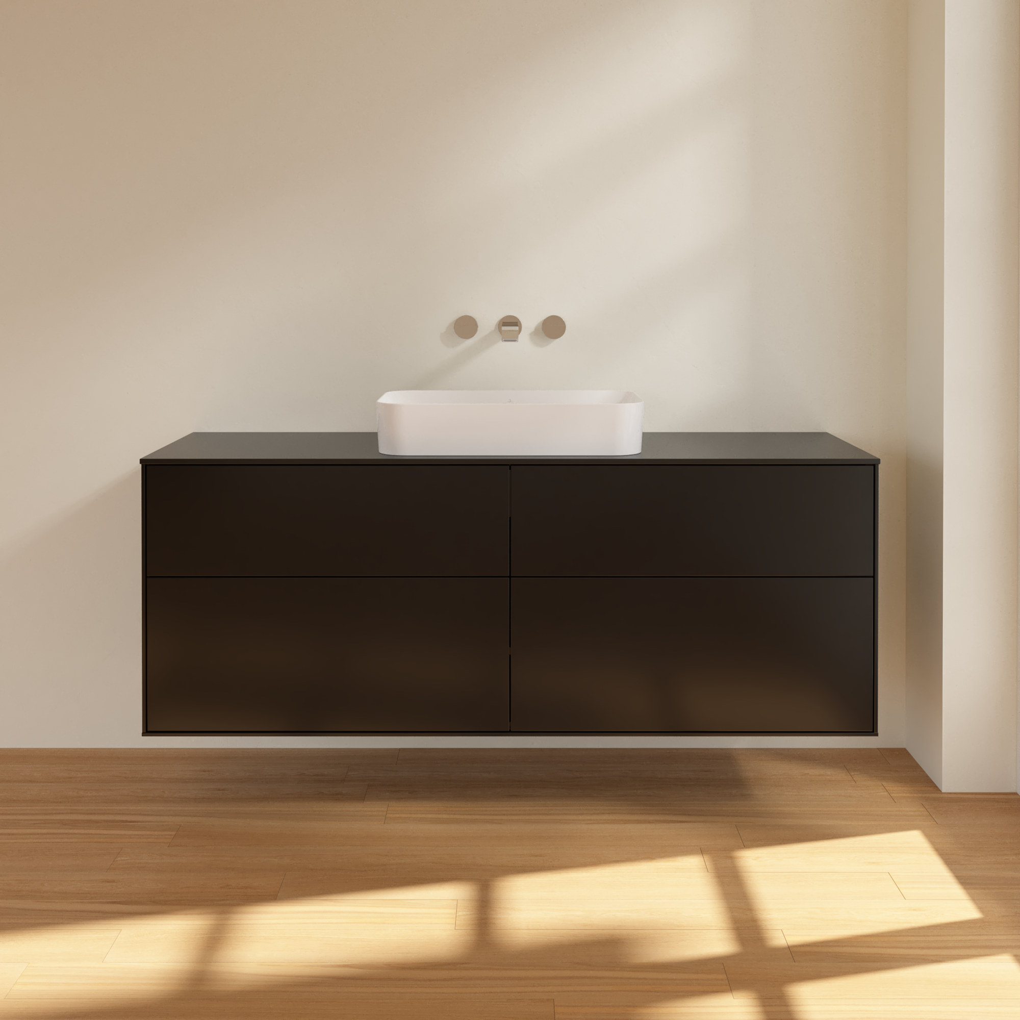 Finion Mobile sottolavabo, 4 vani estraibili, 1600x603x501mm, Corpo: Black Matt Lacquer, Fronte: Black Matt Lacquer, Piastra di copertura: Glass Black Matt