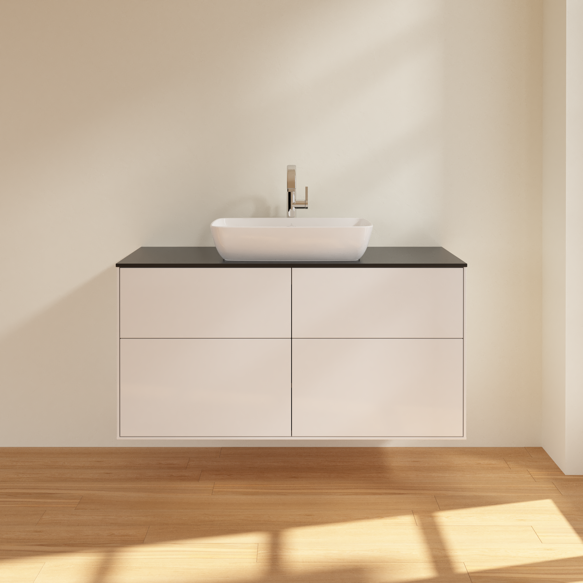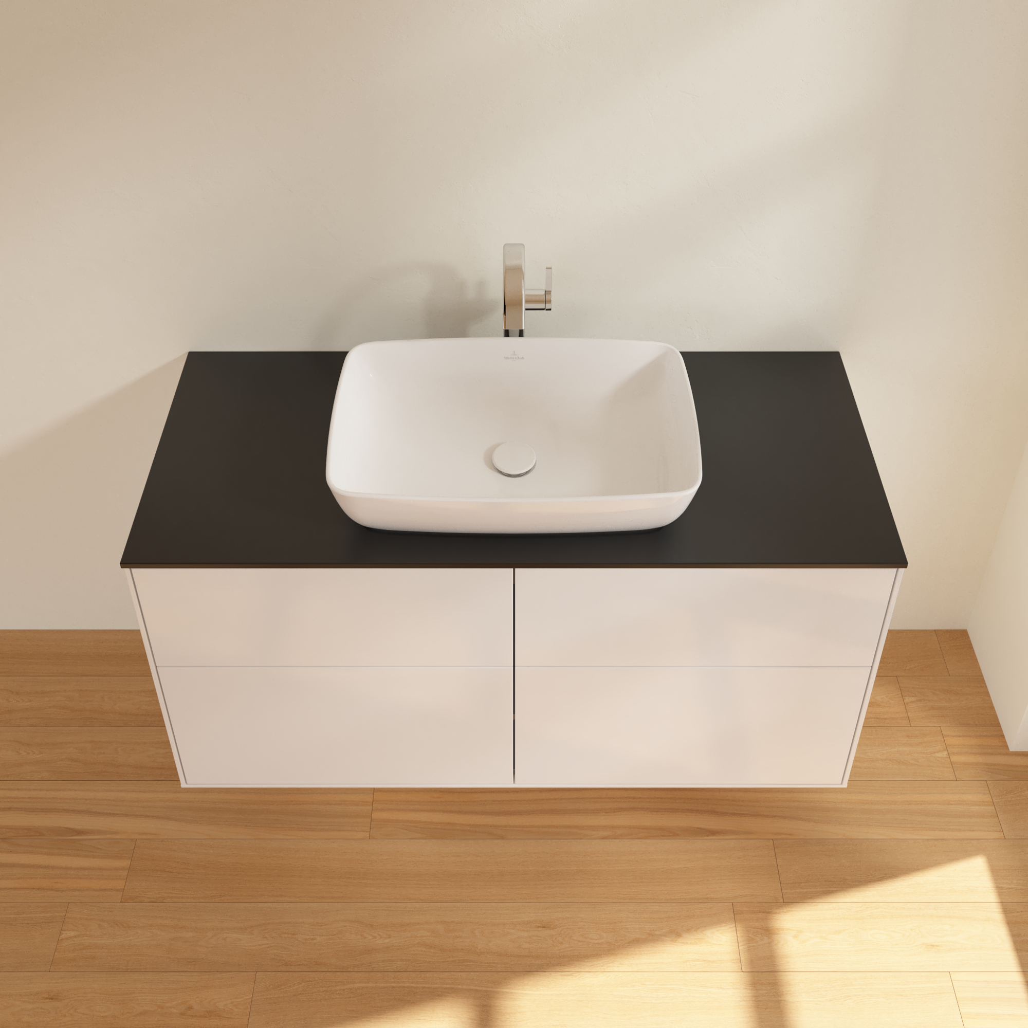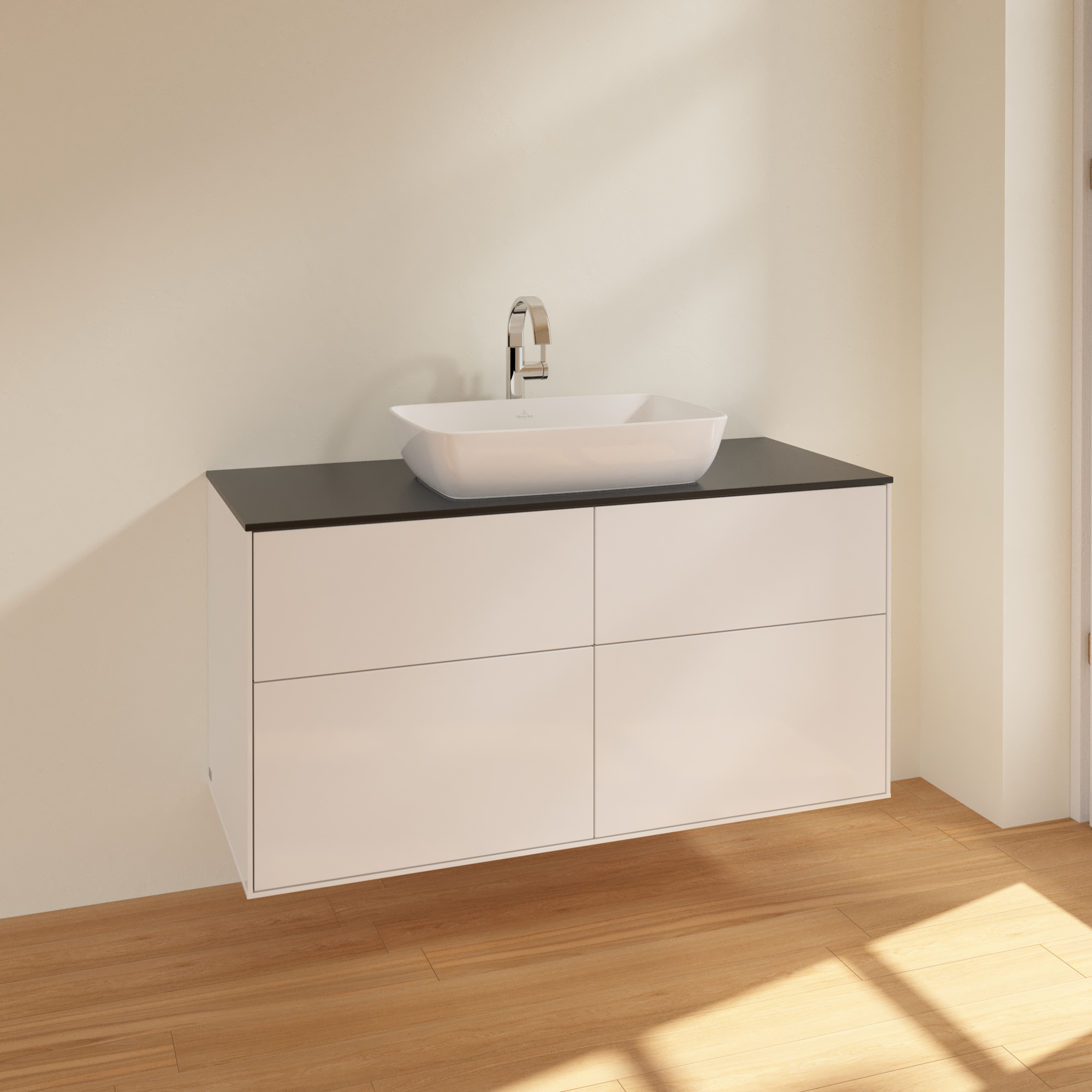 Finion Mobile sottolavabo, 4 vani estraibili, 1200x603x501mm, Corpo: Glossy White Lacquer, Fronte: Glossy White Lacquer, Piastra di copertura: Glass Black Matt