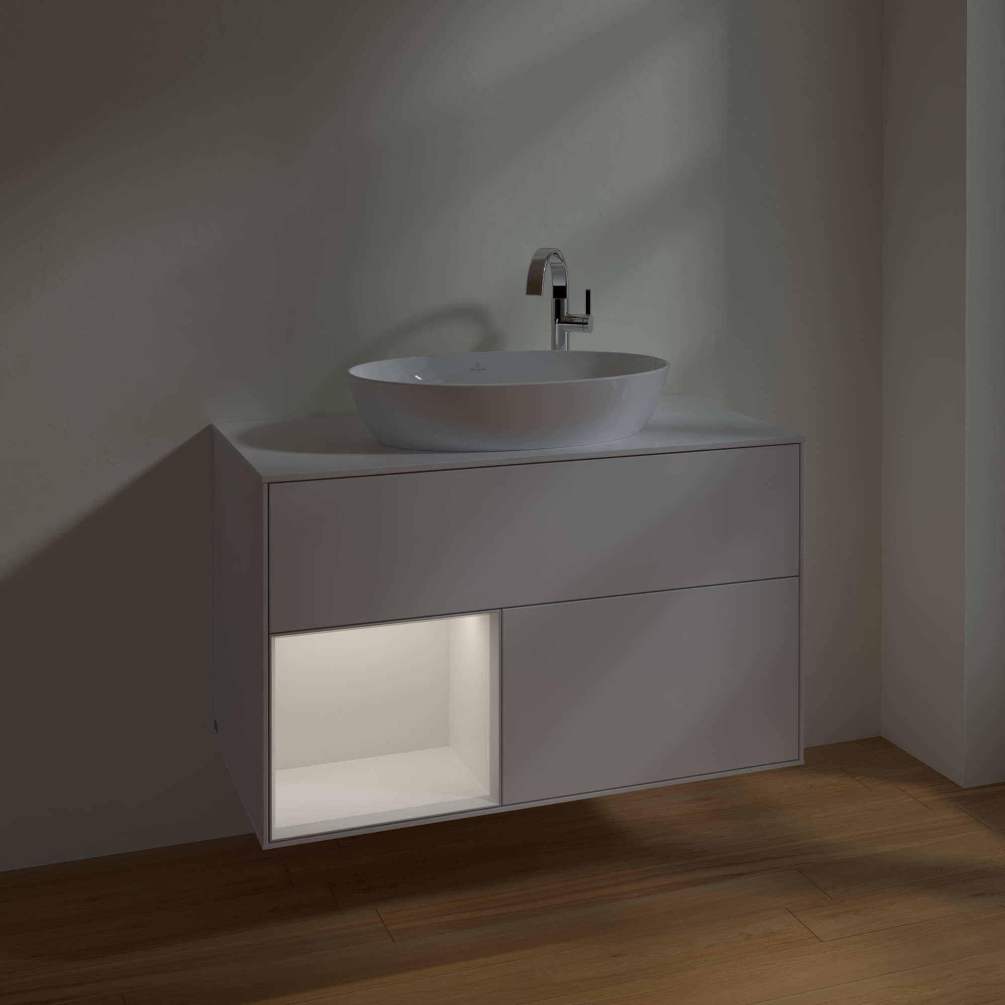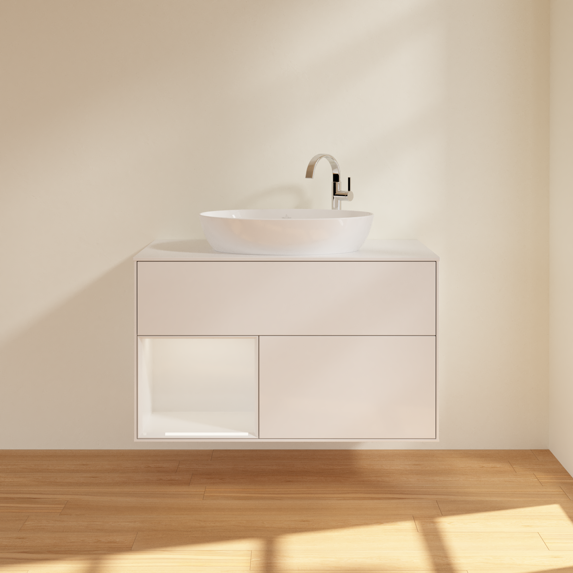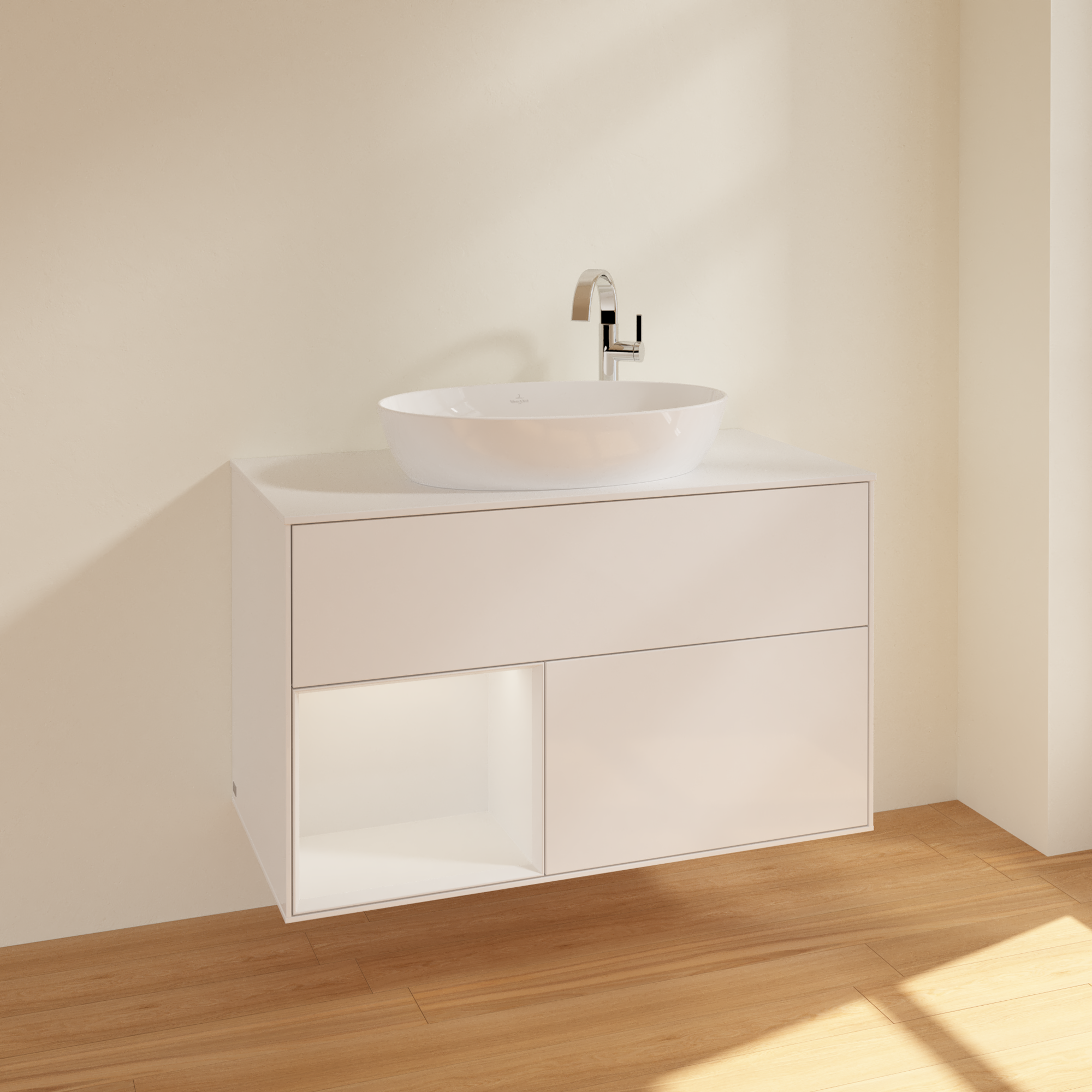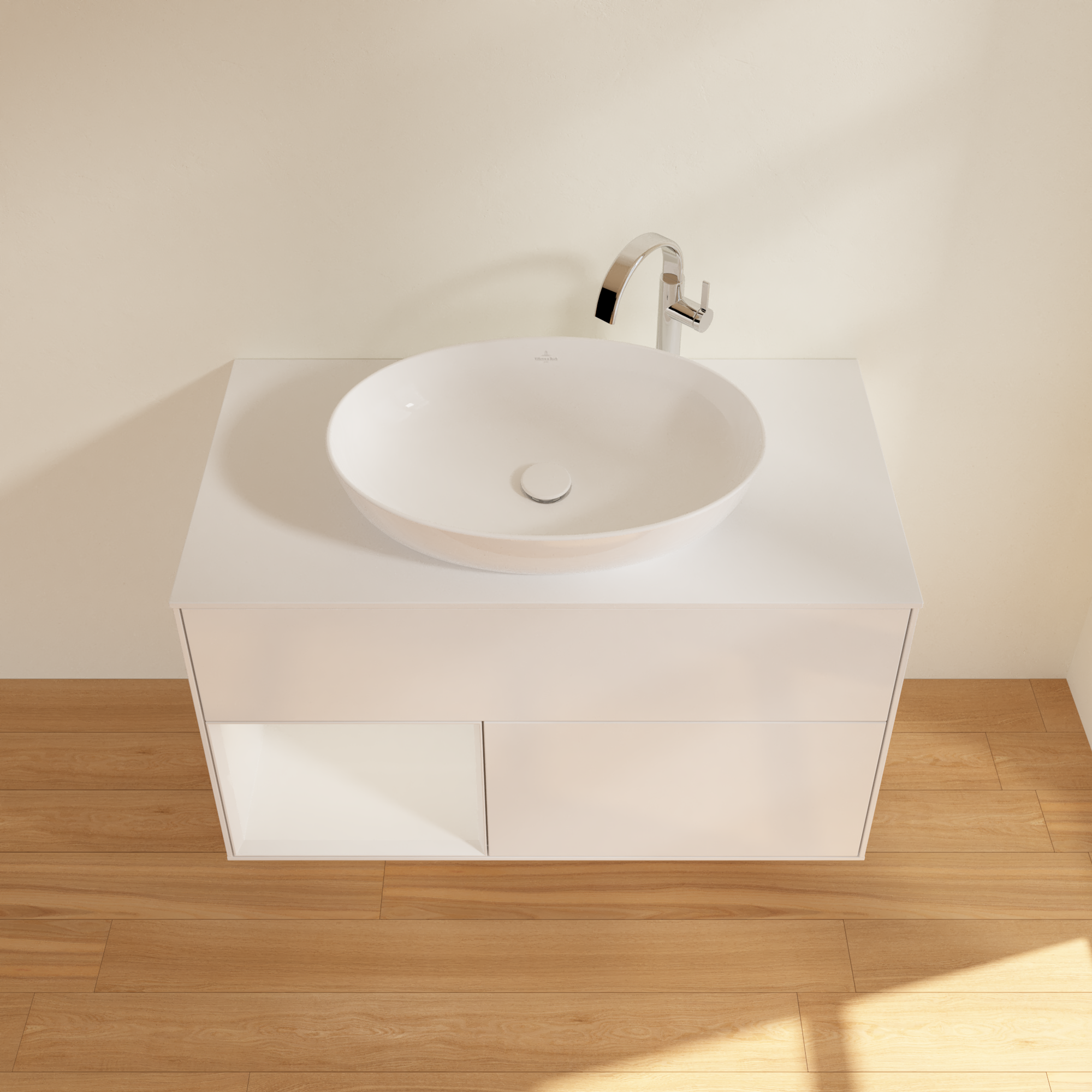Finion Mobile sottolavabo, con illuminazione, 2 vani estraibili, 1000x603x501mm, Corpo: Glossy White Lacquer, Fronte: Glossy White Lacquer, Ripiano: Glossy White Lacquer, Piastra di copertura: Glass White Matt