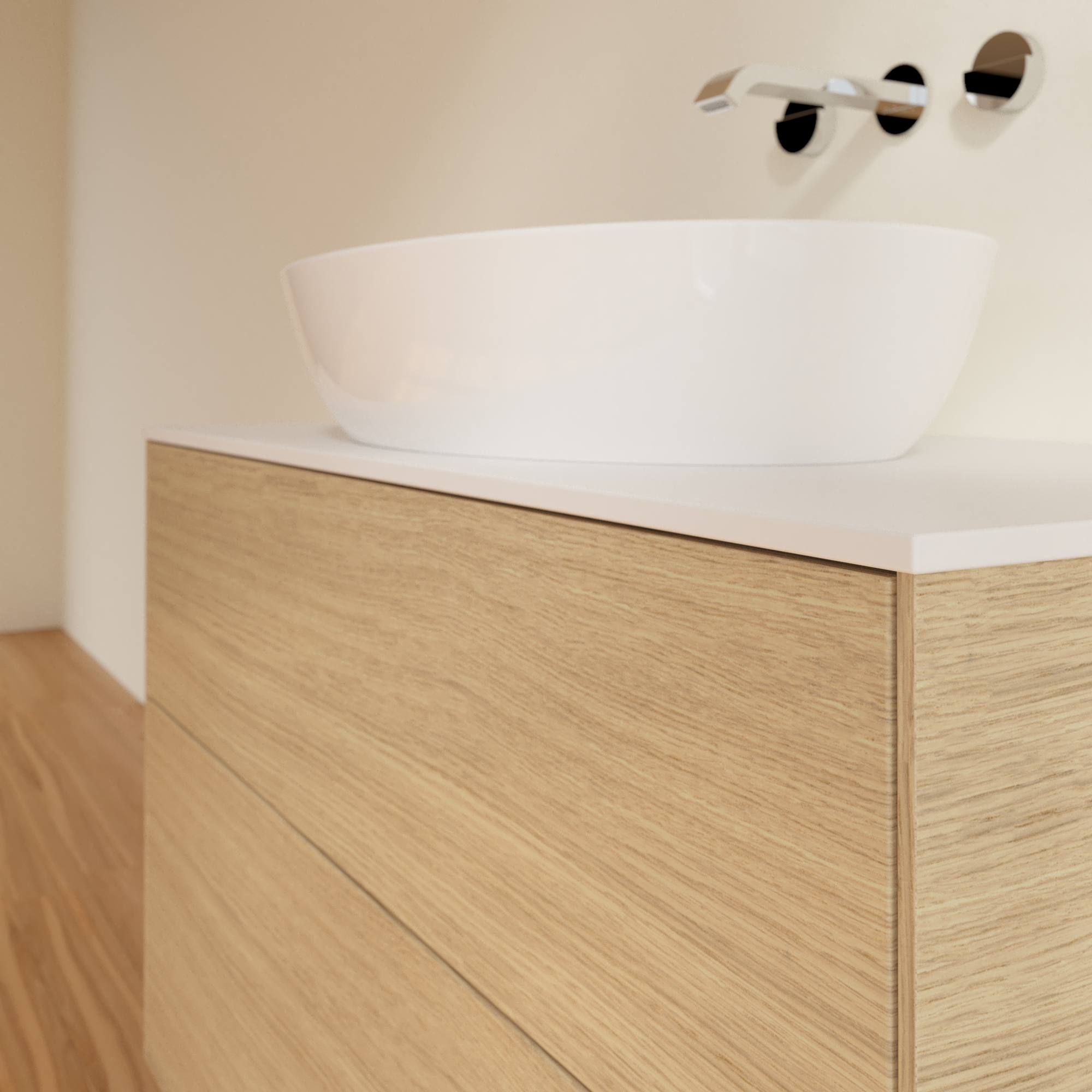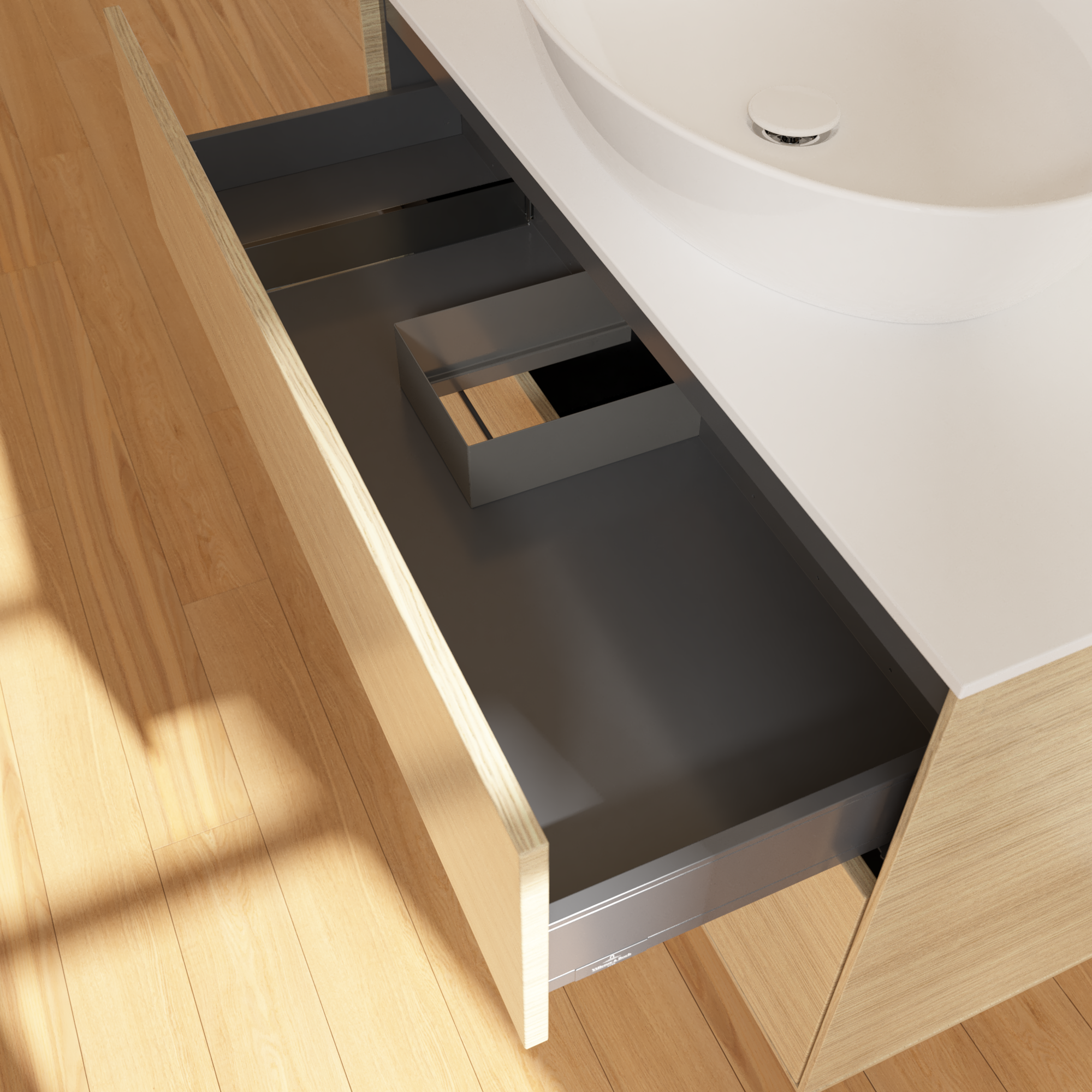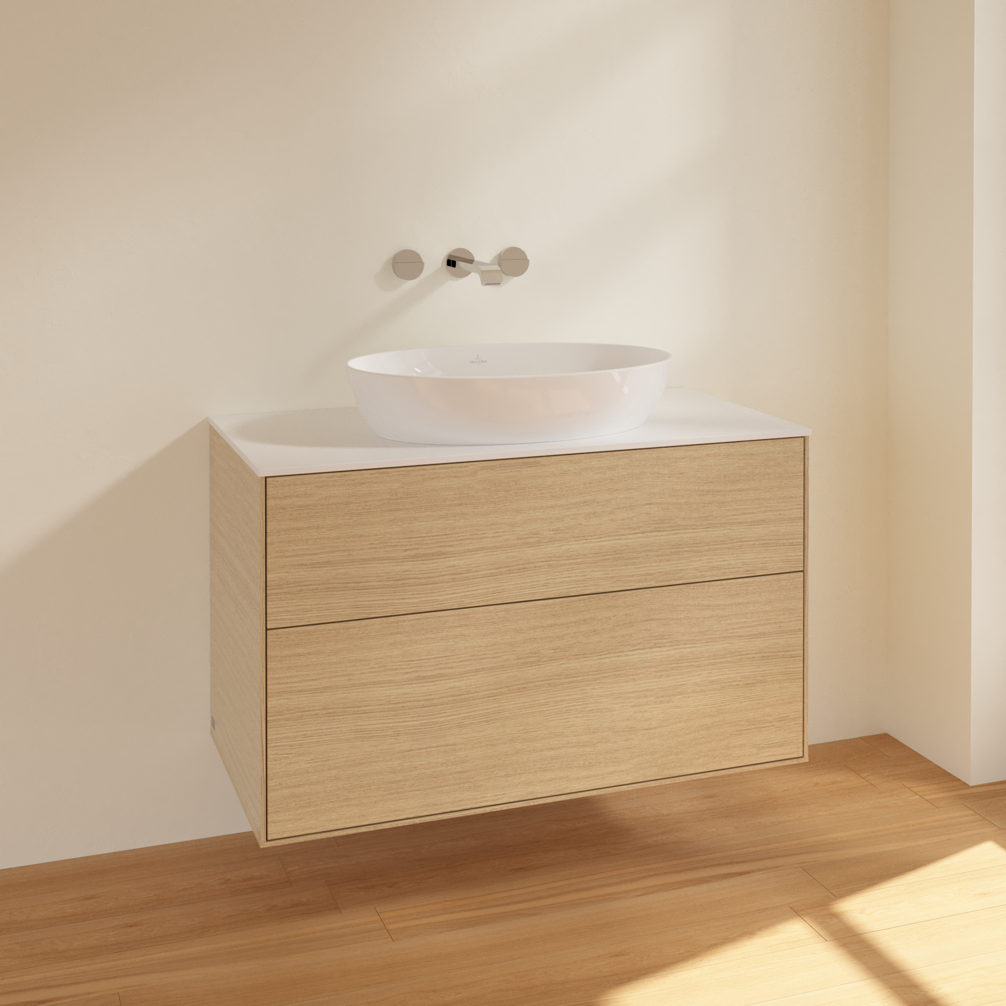 Finion Mobile sottolavabo, 2 vani estraibili, 1000x603x501mm, Corpo: Oak Veneer, Fronte: Oak Veneer, Piastra di copertura: Glass White Matt