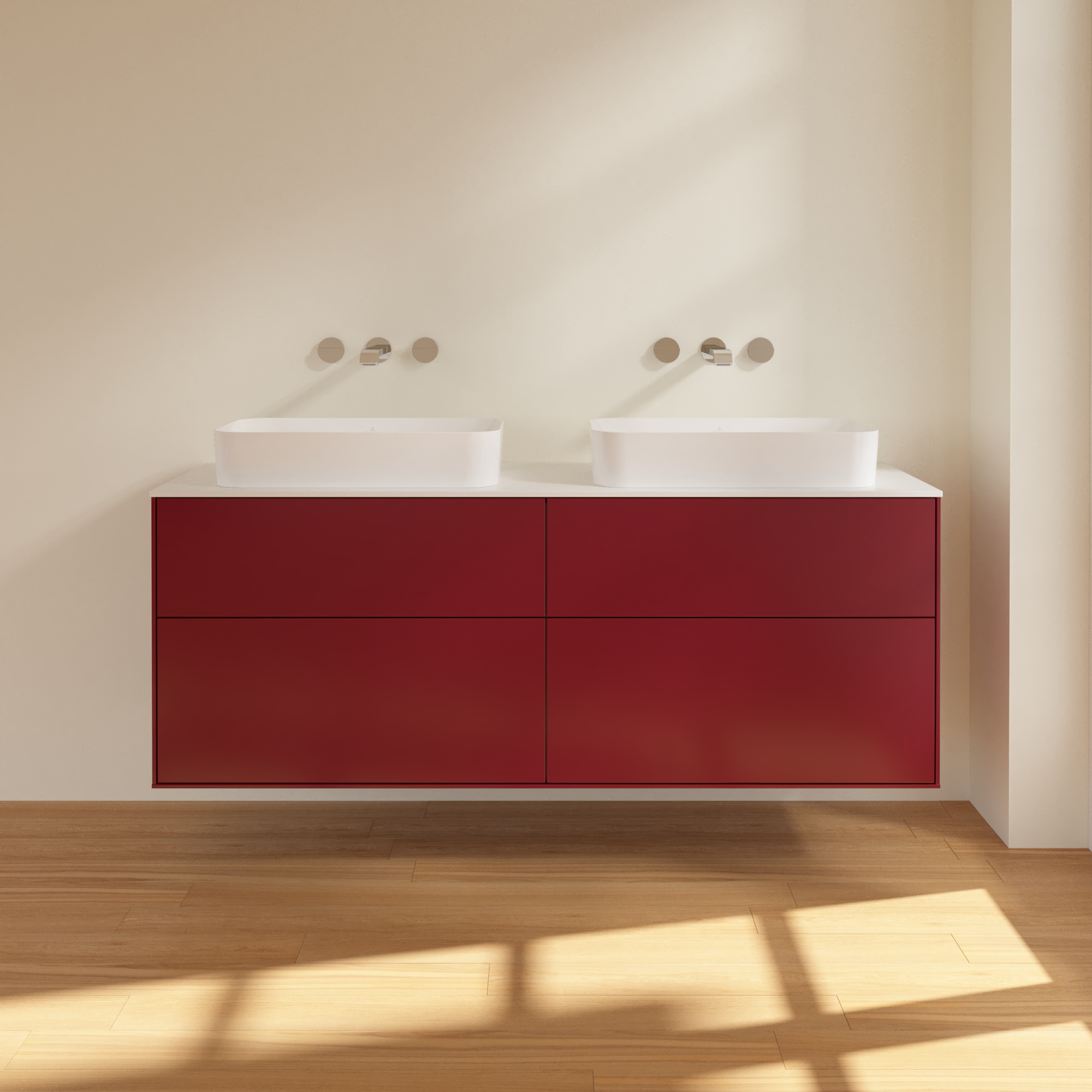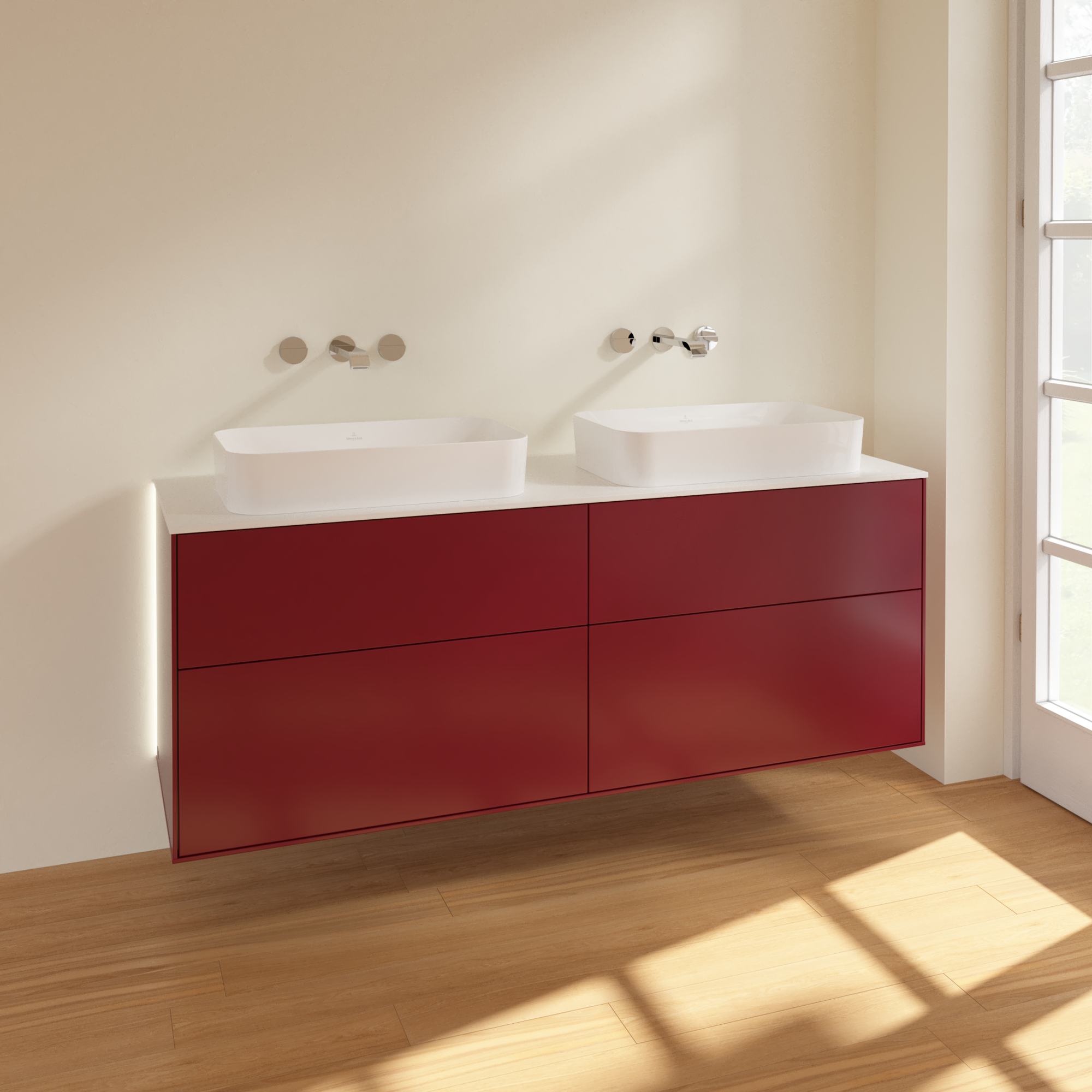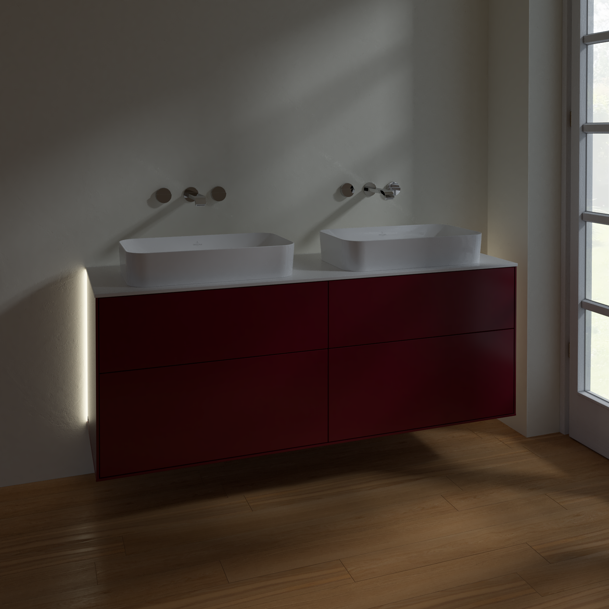 Finion Mobile sottolavabo, con illuminazione, 4 vani estraibili, 1600x603x501mm, Corpo: Peony Matt Lacquer, Fronte: Peony Matt Lacquer, Piastra di copertura: Glass White Matt