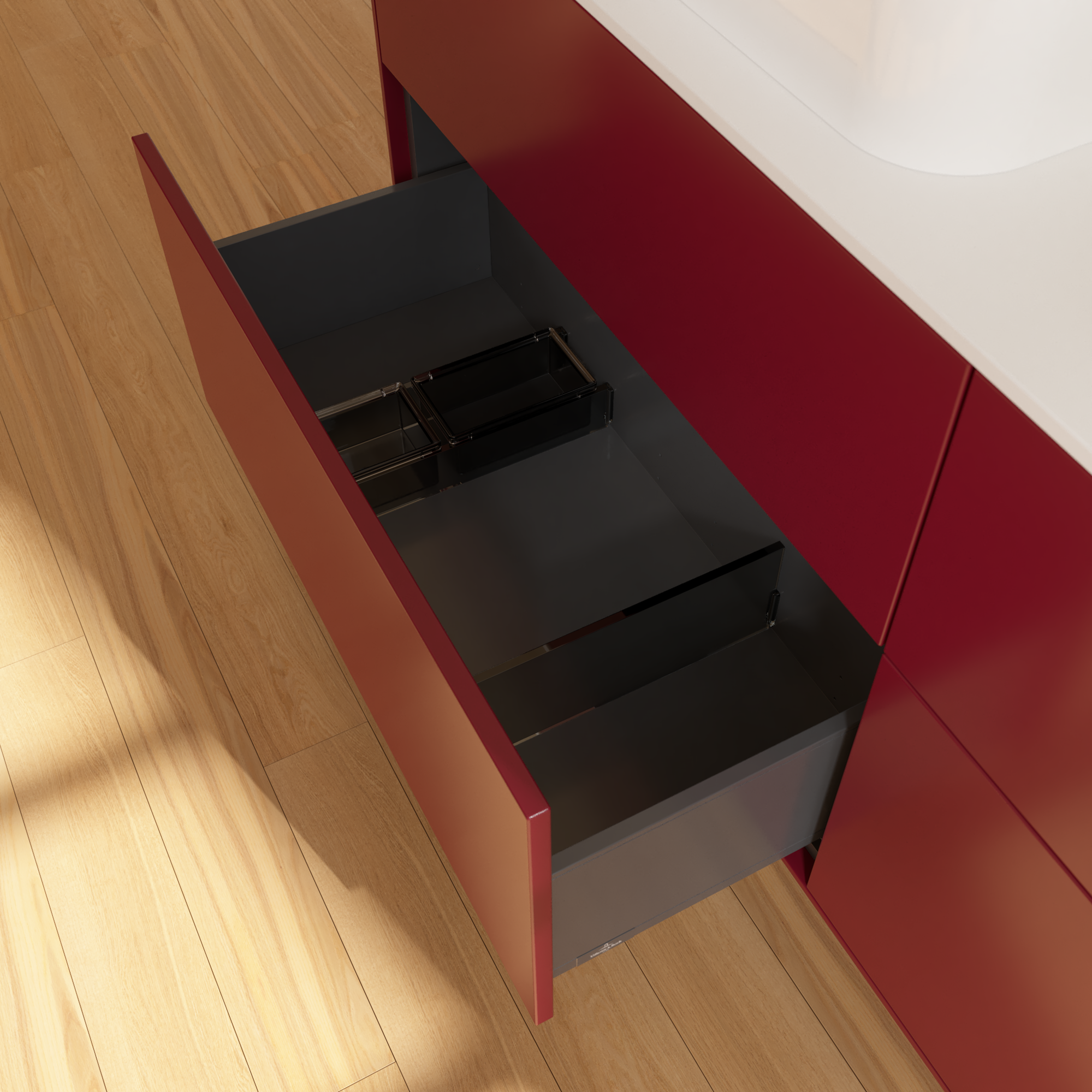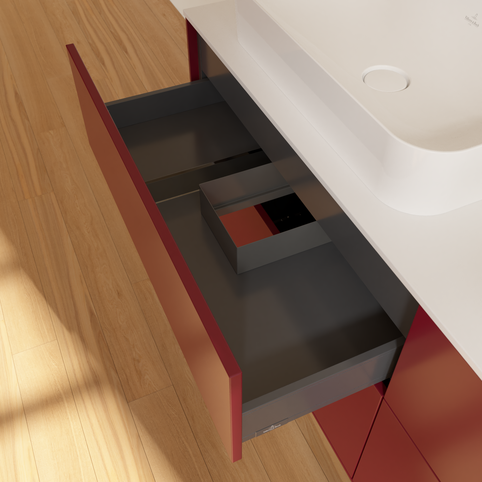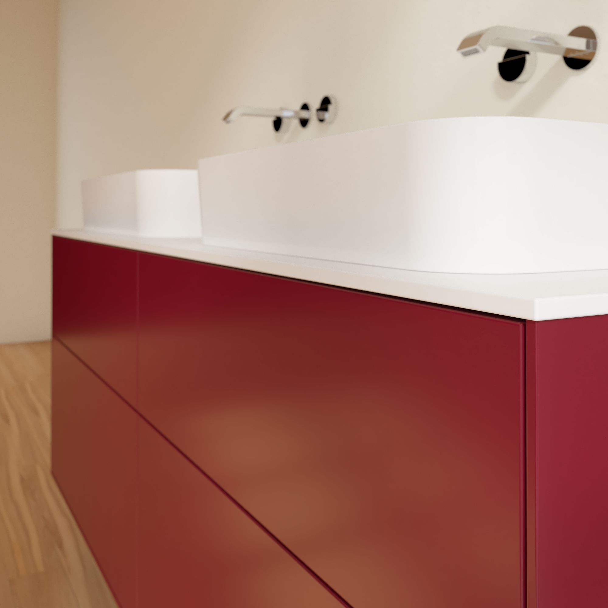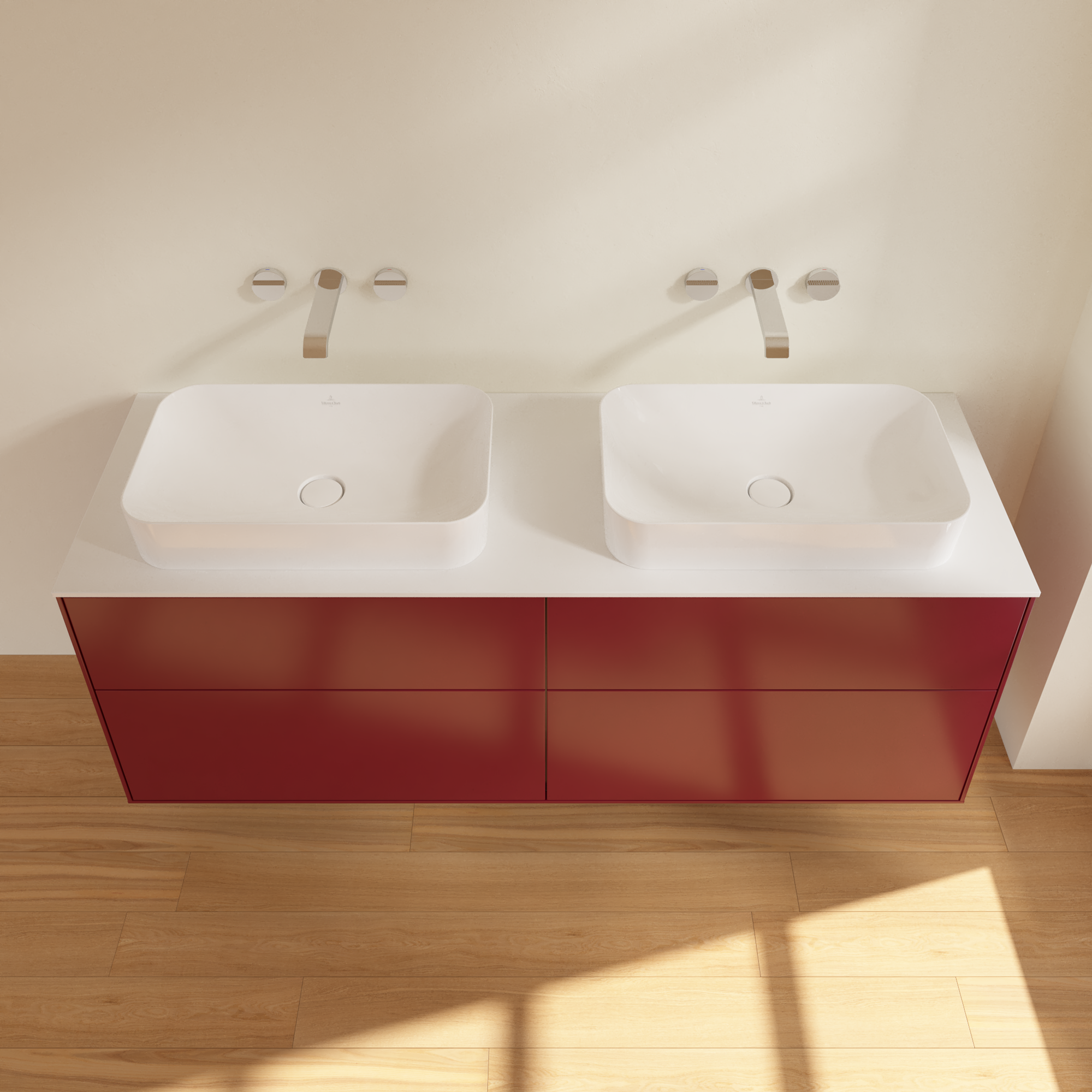 Finion Mobile sottolavabo, con illuminazione, 4 vani estraibili, 1600x603x501mm, Corpo: Peony Matt Lacquer, Fronte: Peony Matt Lacquer, Piastra di copertura: Glass White Matt