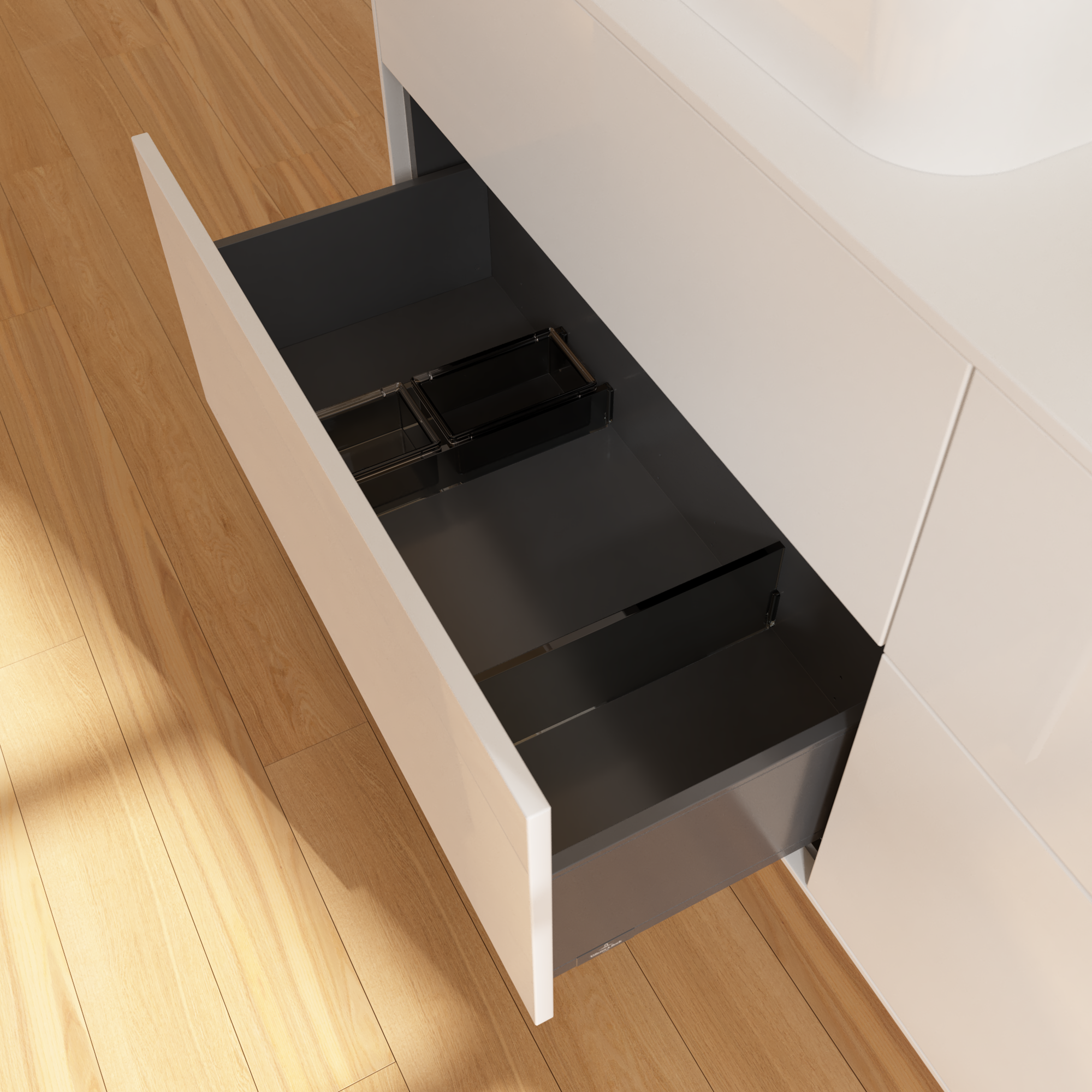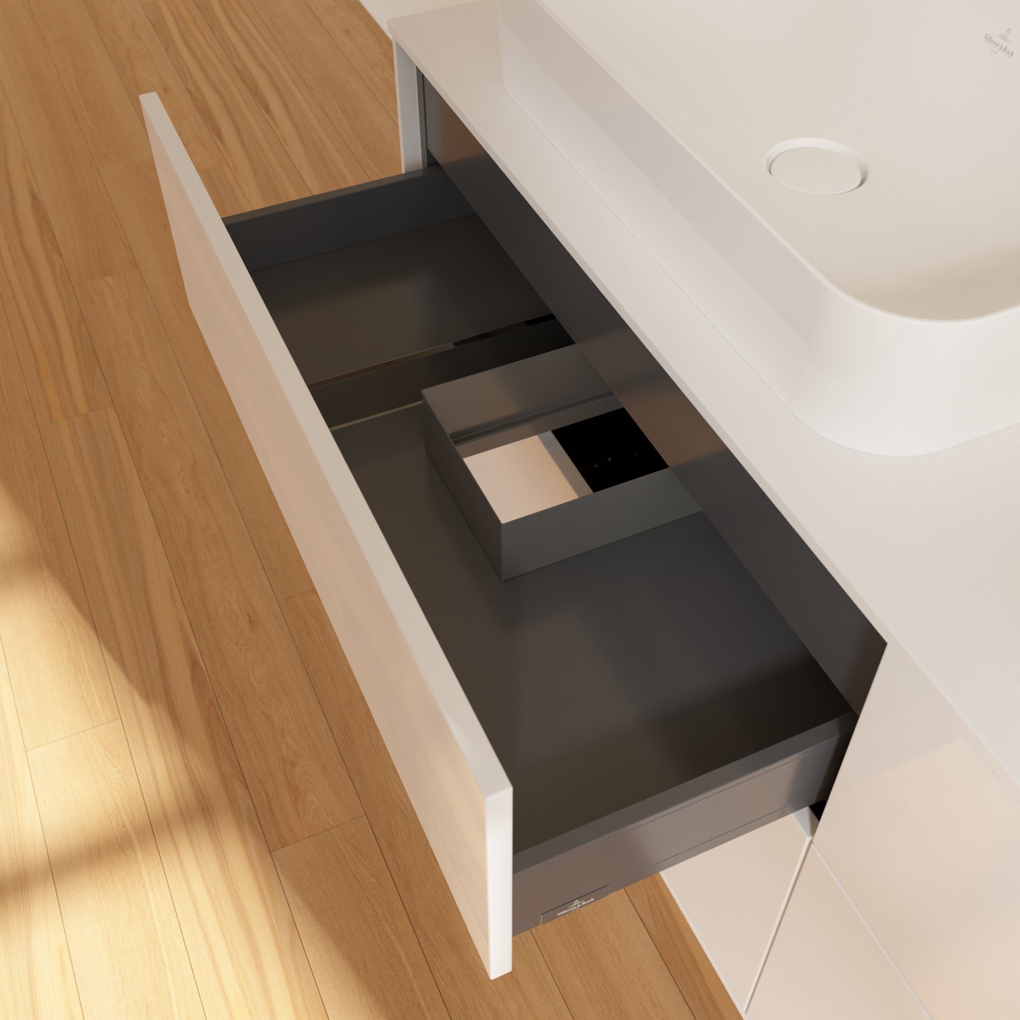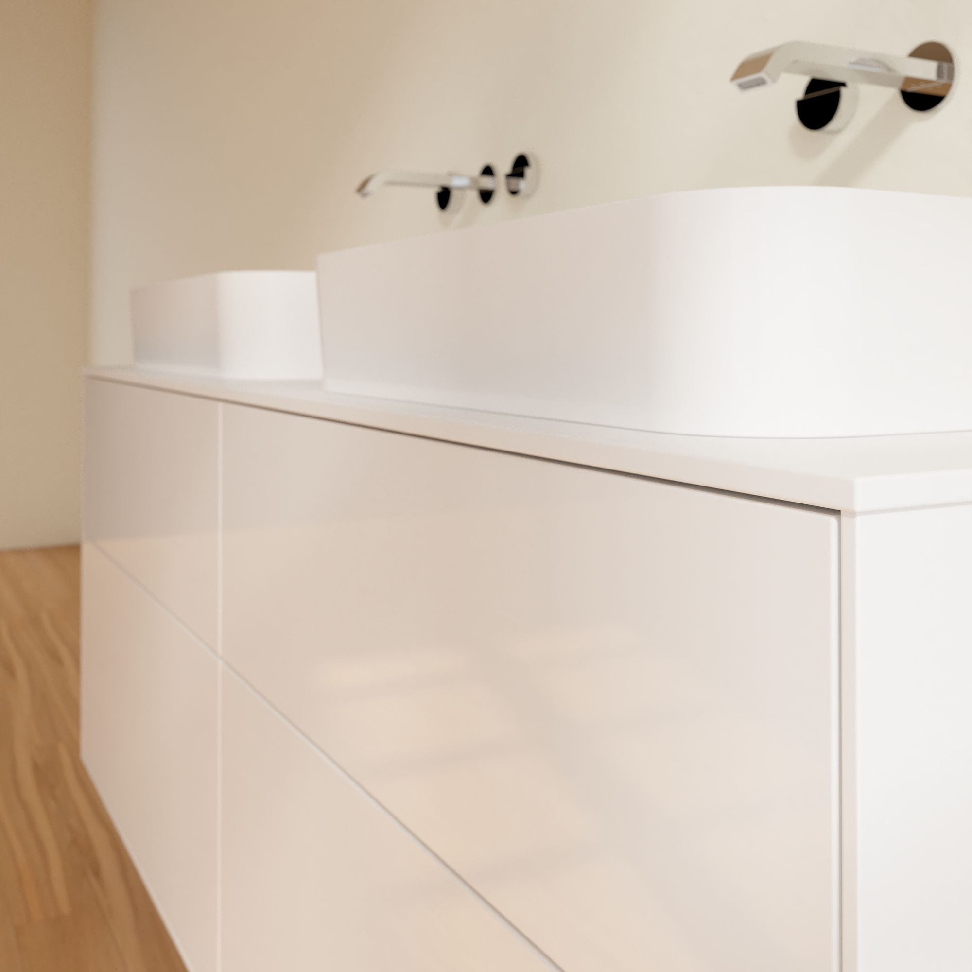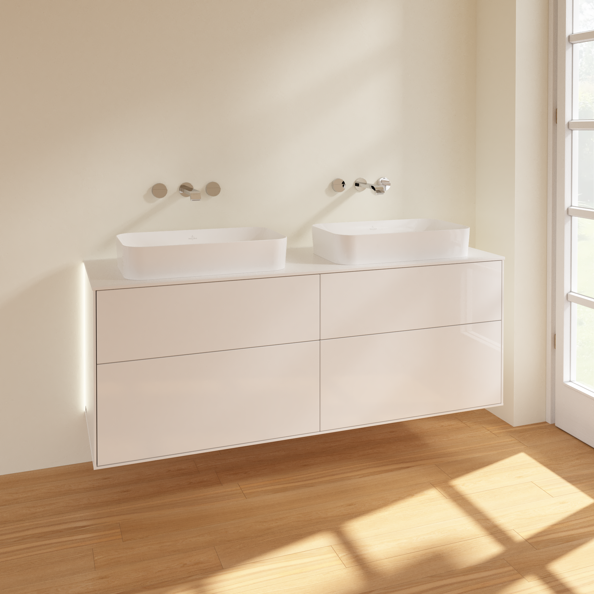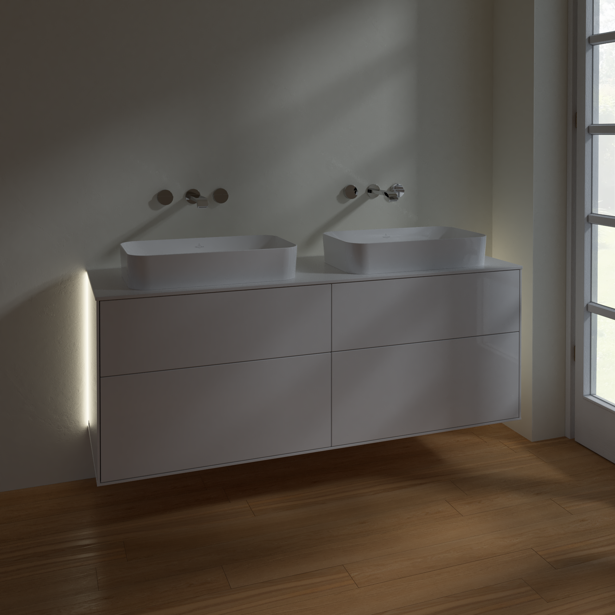 Finion Mobile sottolavabo, con illuminazione, 4 vani estraibili, 1600x603x501mm, Corpo: Glossy White Lacquer, Fronte: Glossy White Lacquer, Piastra di copertura: Glass White Matt