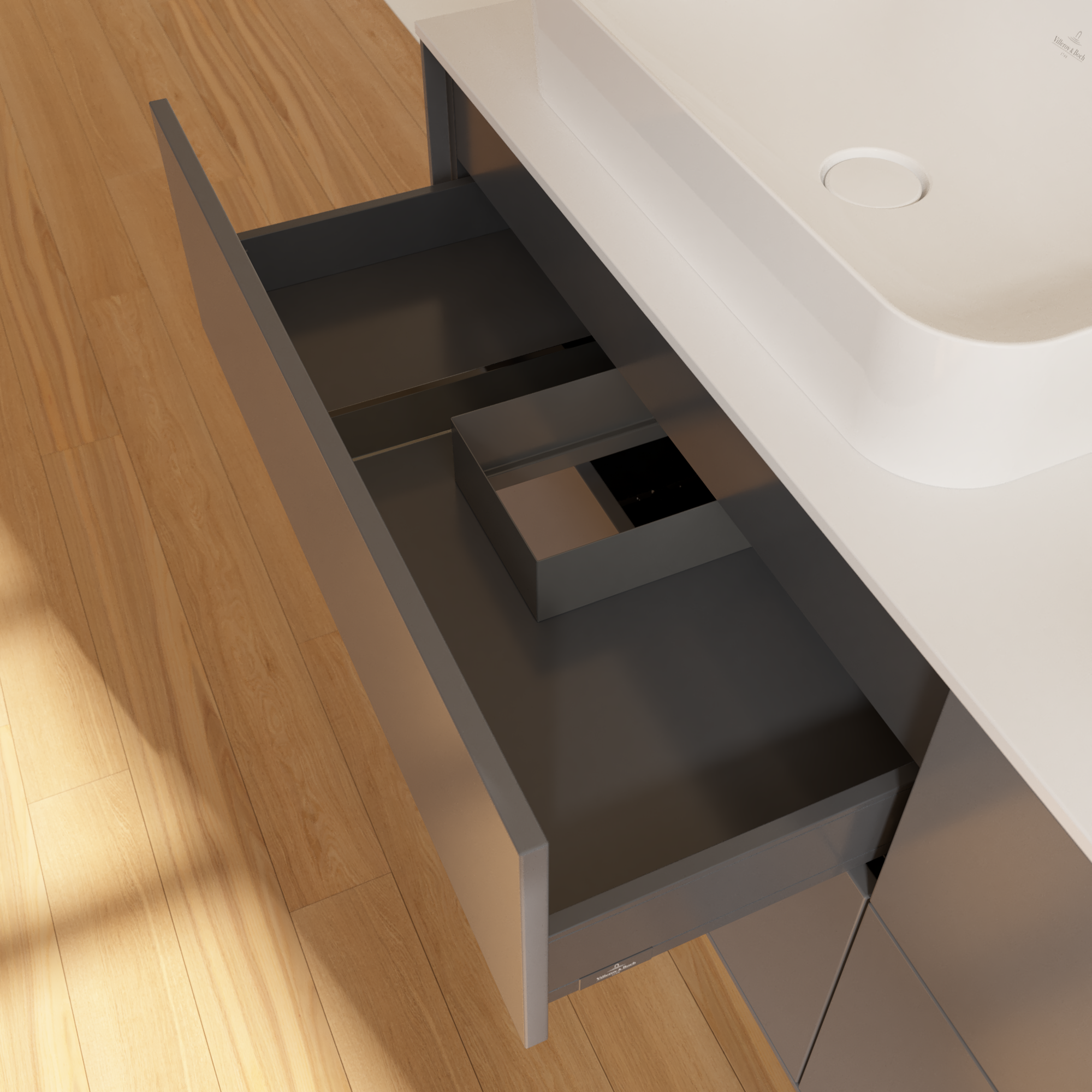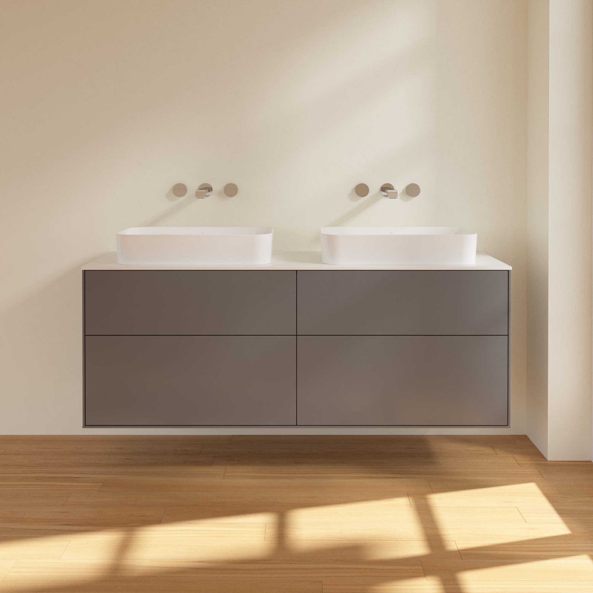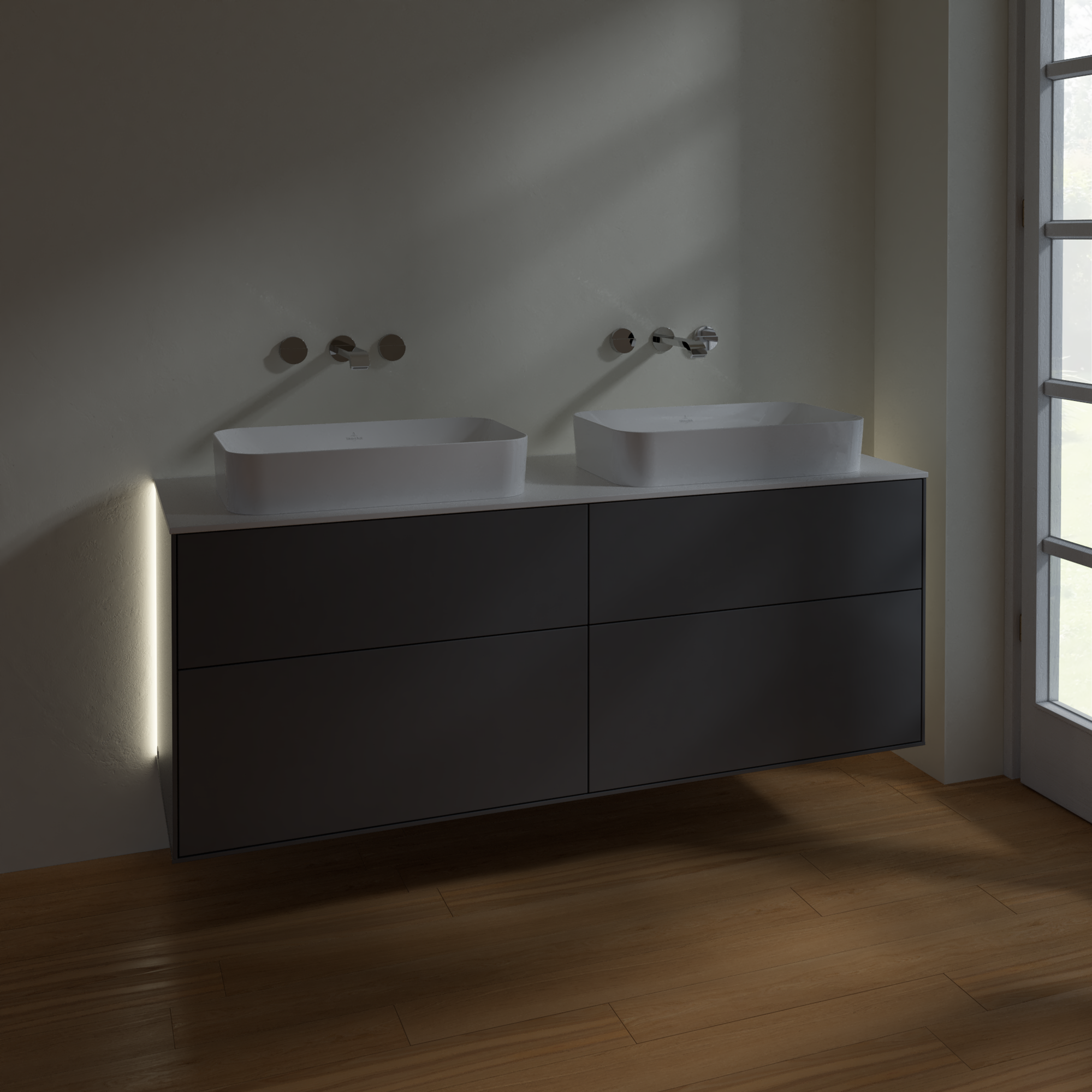 Finion Mobile sottolavabo, con illuminazione, 4 vani estraibili, 1600x603x501mm, Corpo: Anthracite Matt Lacquer, Fronte: Anthracite Matt Lacquer, Piastra di copertura: Glass White Matt