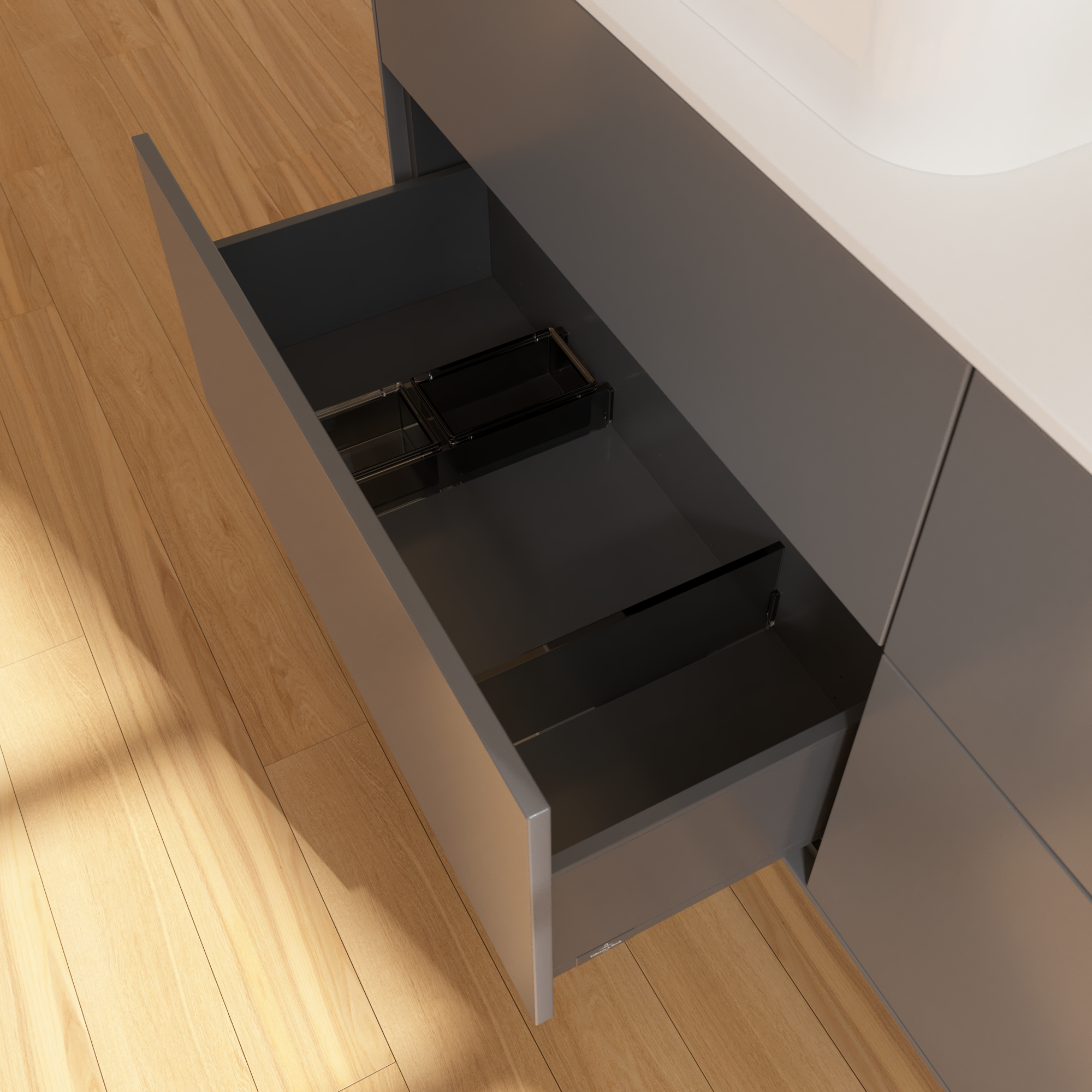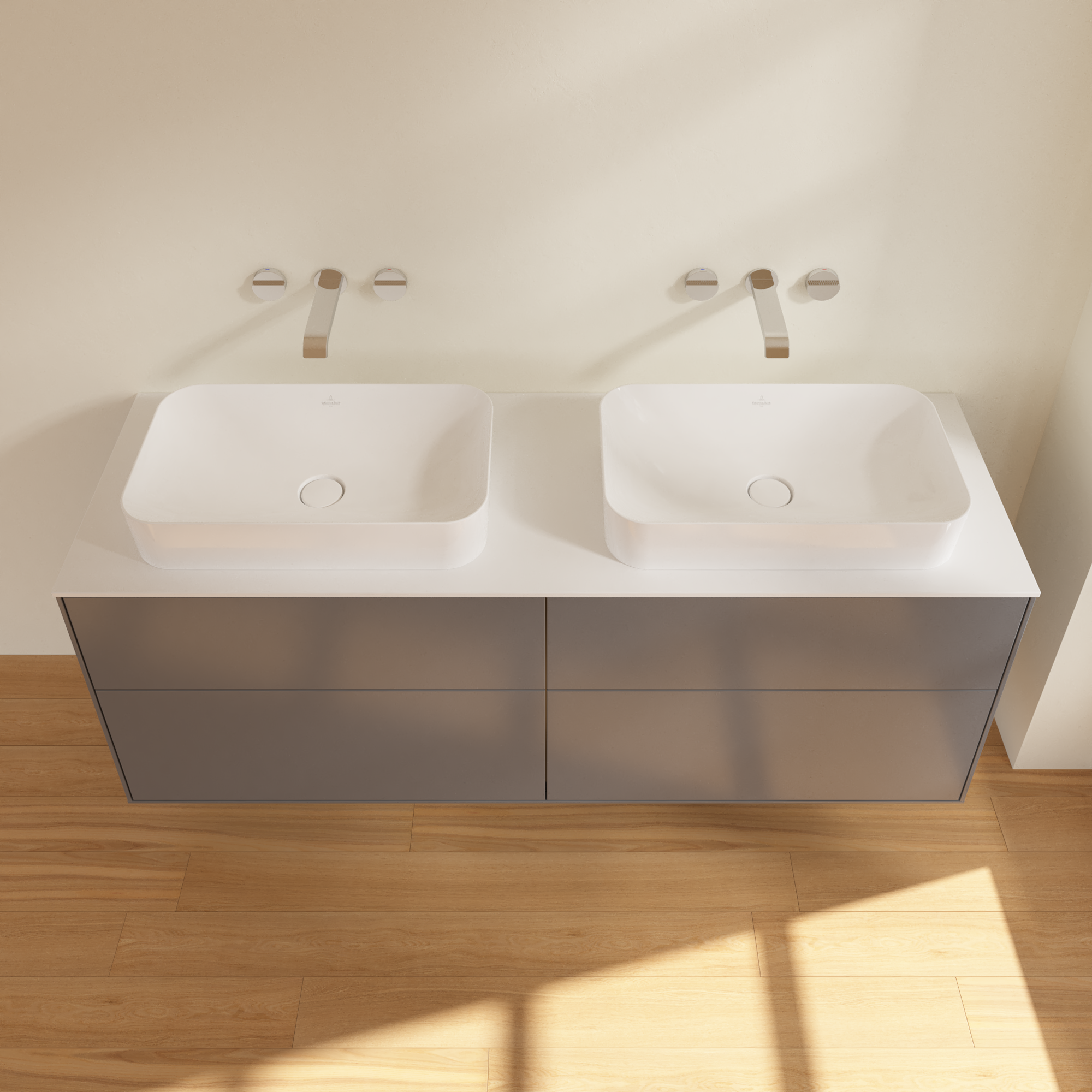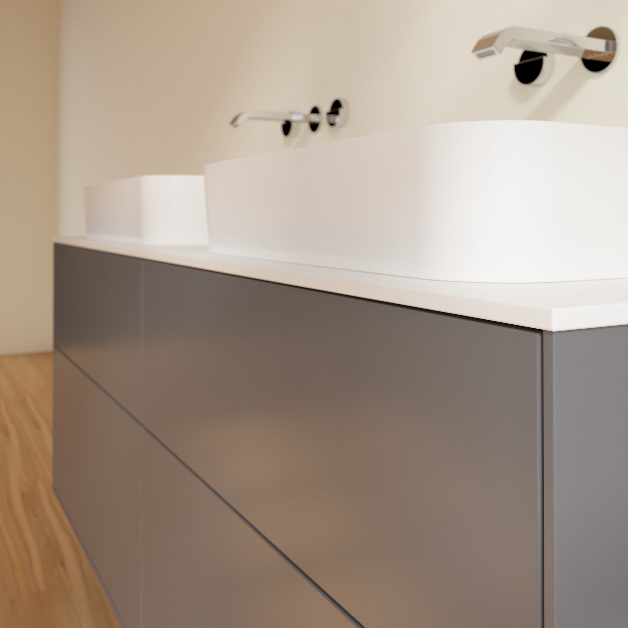 Finion Mobile sottolavabo, con illuminazione, 4 vani estraibili, 1600x603x501mm, Corpo: Anthracite Matt Lacquer, Fronte: Anthracite Matt Lacquer, Piastra di copertura: Glass White Matt