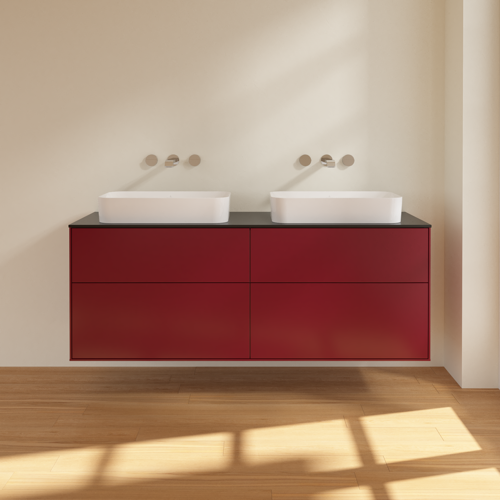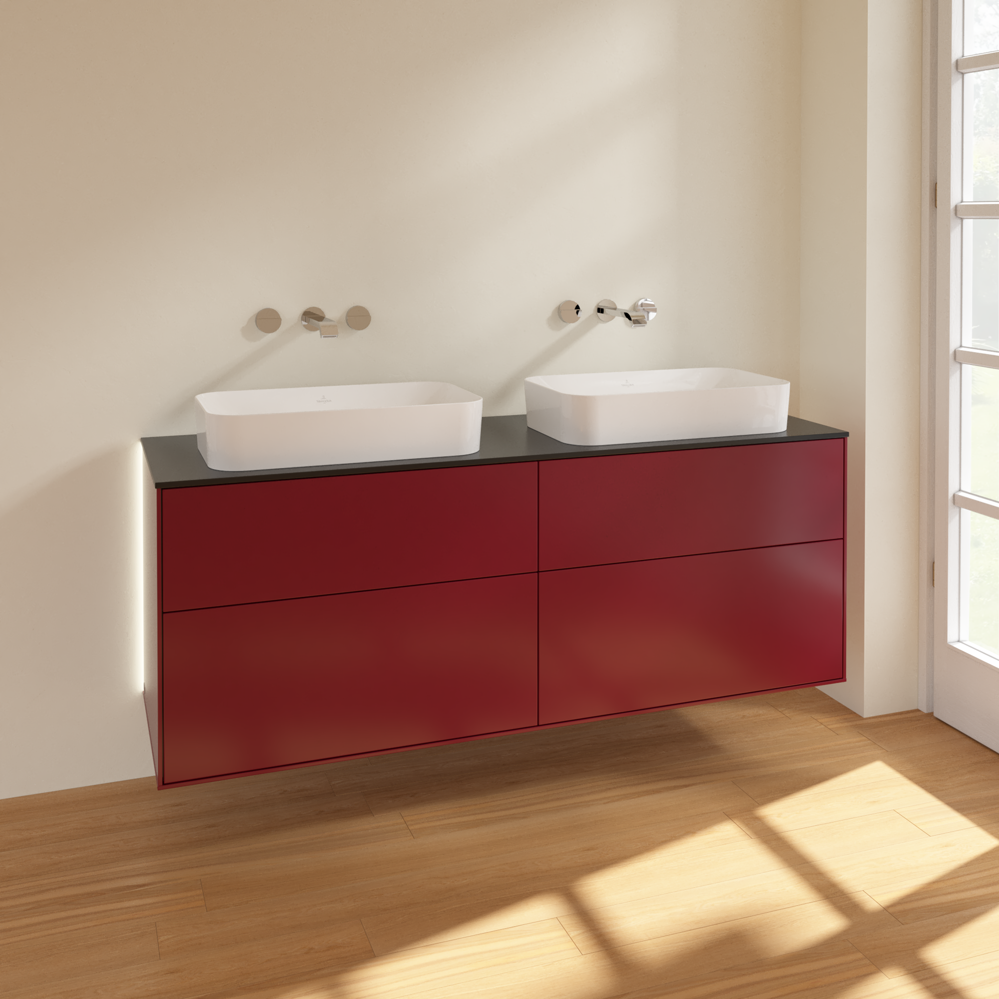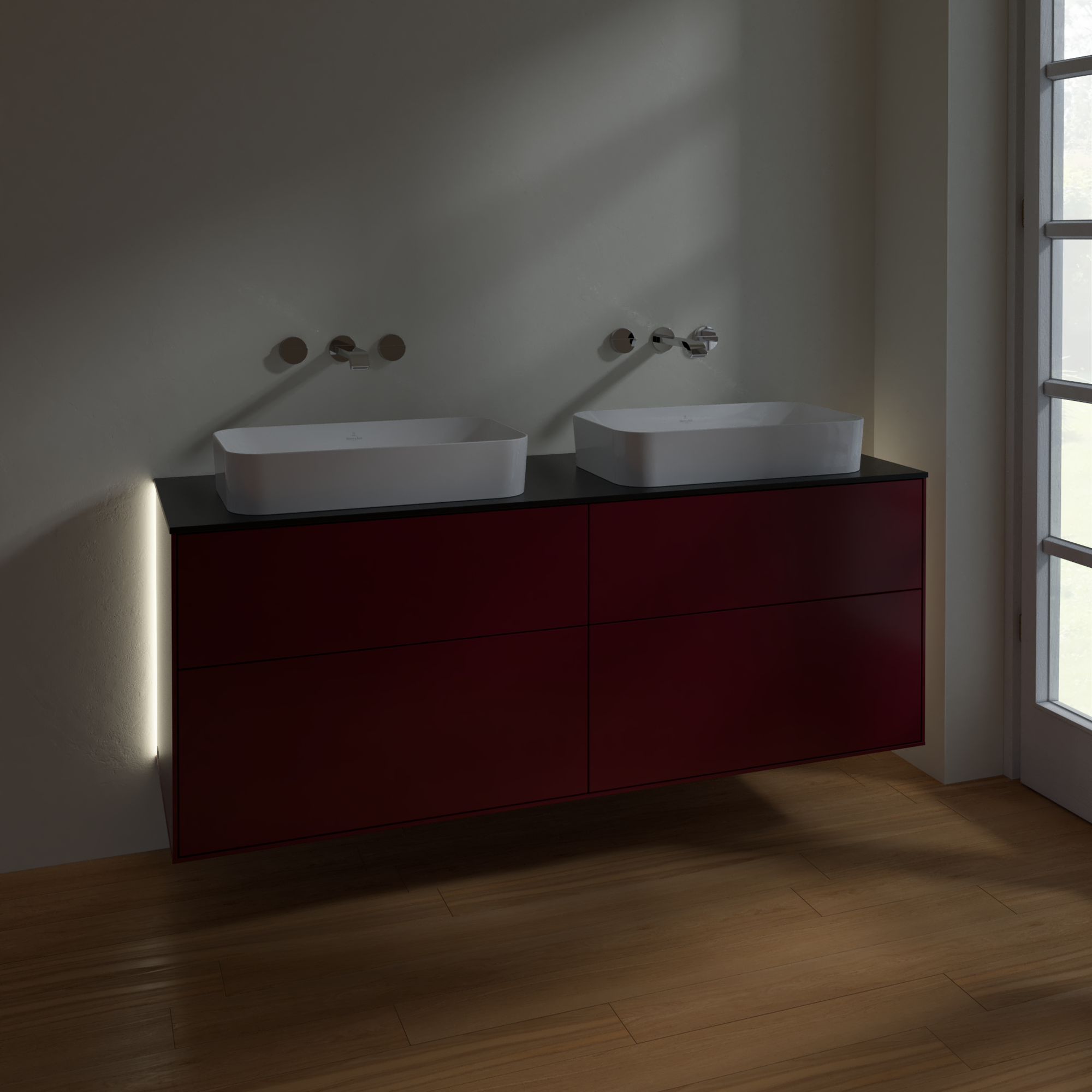 Finion Mobile sottolavabo, con illuminazione, 4 vani estraibili, 1600x603x501mm, Corpo: Peony Matt Lacquer, Fronte: Peony Matt Lacquer, Piastra di copertura: Glass Black Matt