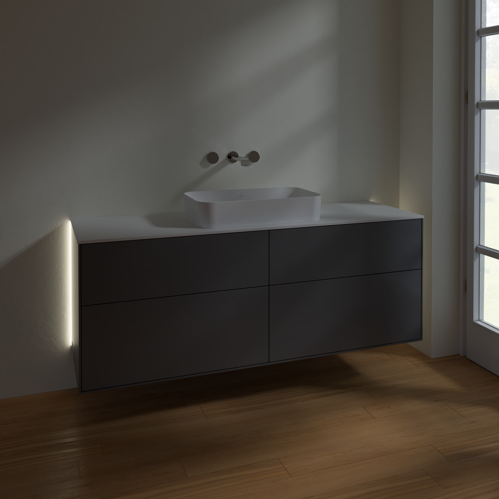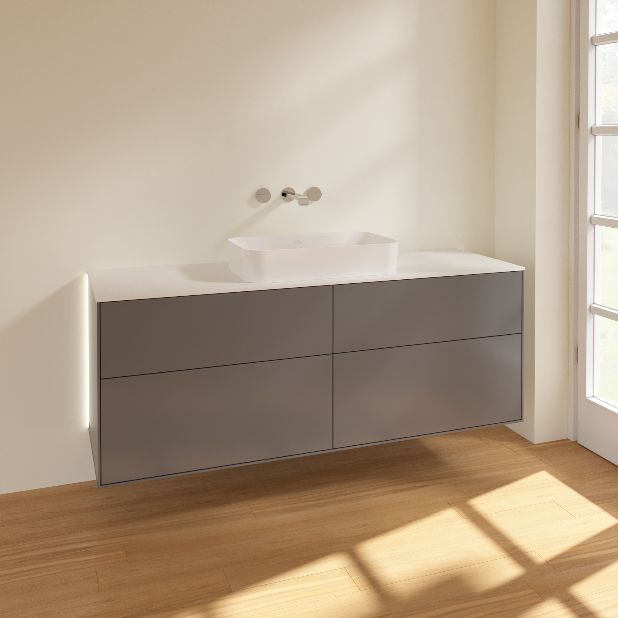 Finion Mobile sottolavabo, con illuminazione, 4 vani estraibili, 1600x603x501mm, Corpo: Anthracite Matt Lacquer, Fronte: Anthracite Matt Lacquer, Piastra di copertura: Glass White Matt