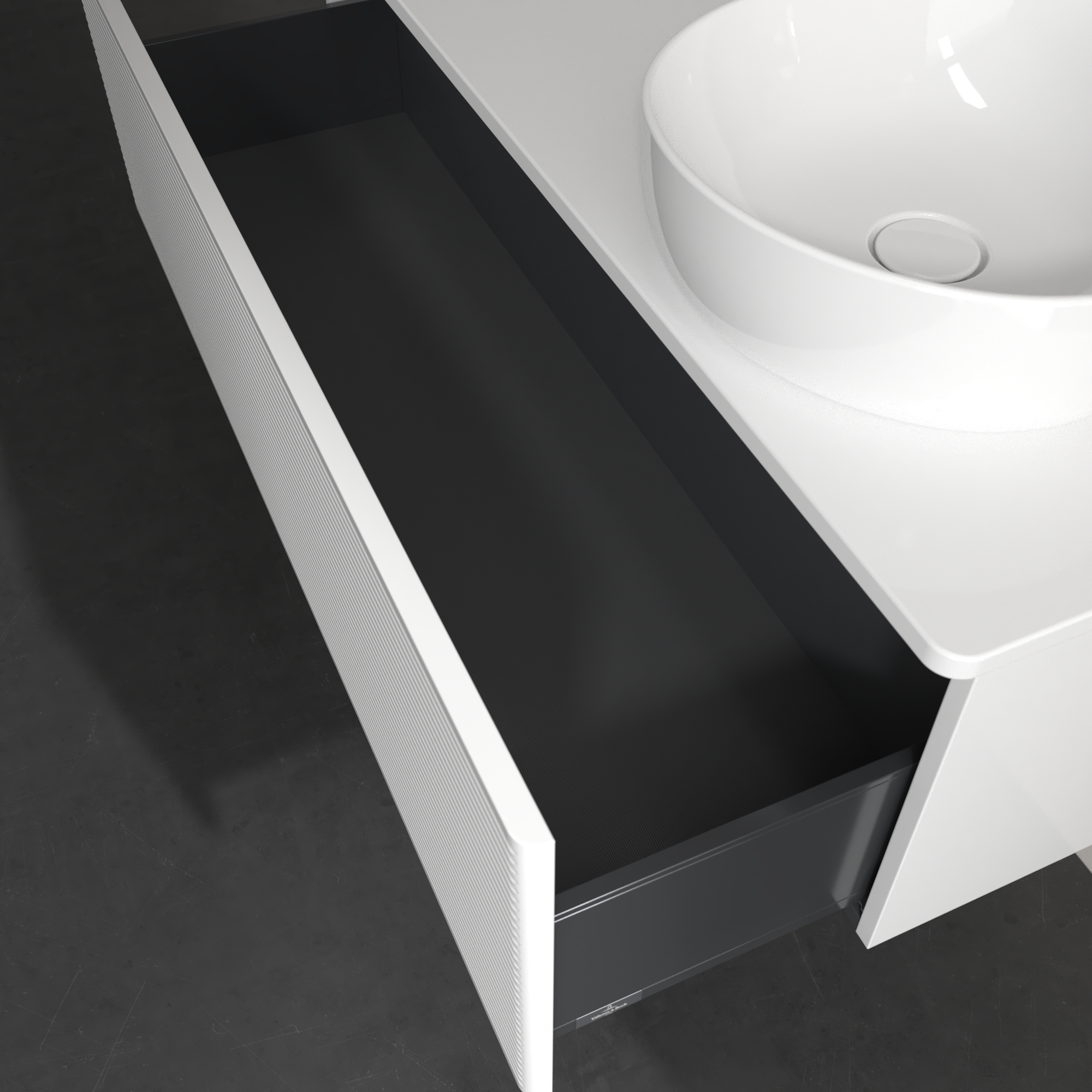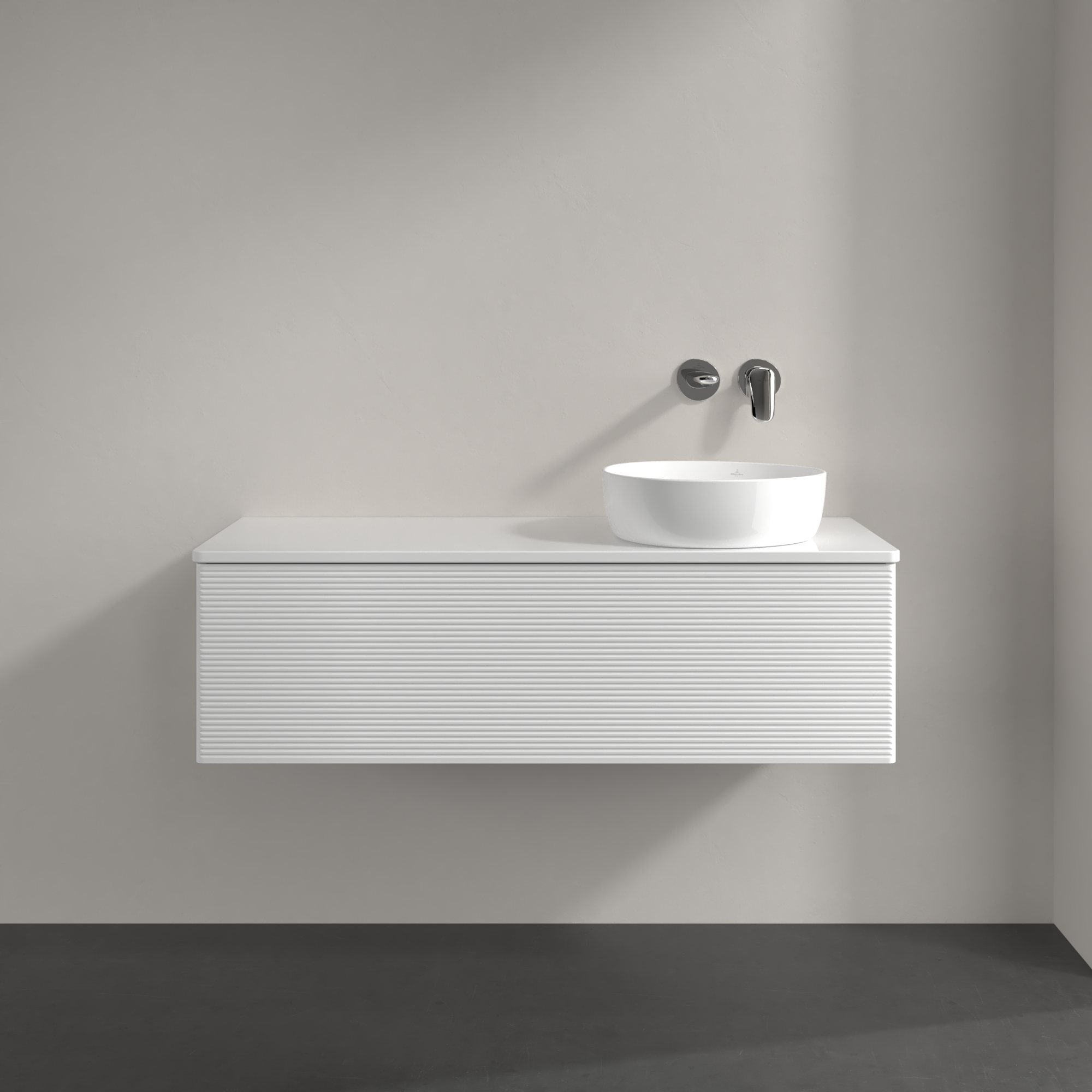 Antao Mobile sottolavabo, 1 vano estraibile, 1200x360x500mm, Frontale con texture, Corpo: Glossy White Lacquer, Fronte: Glossy White Lacquer, Piastra di copertura: Glossy White Lacquer