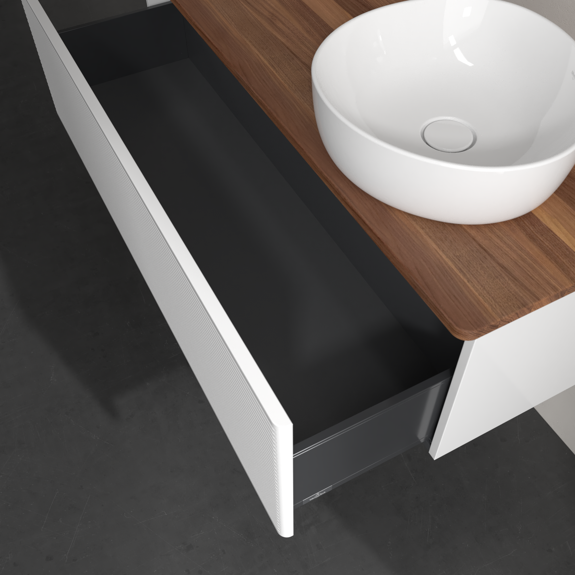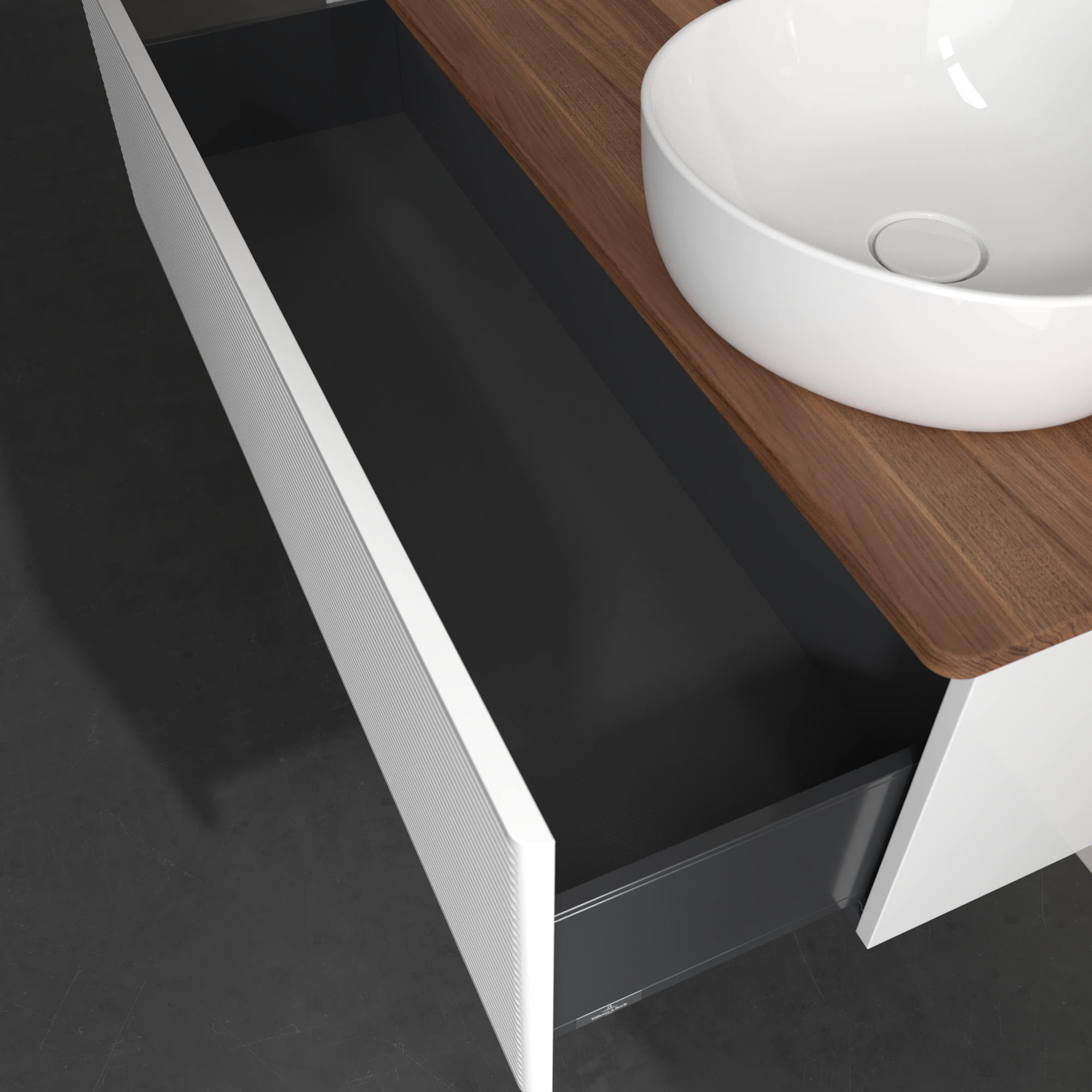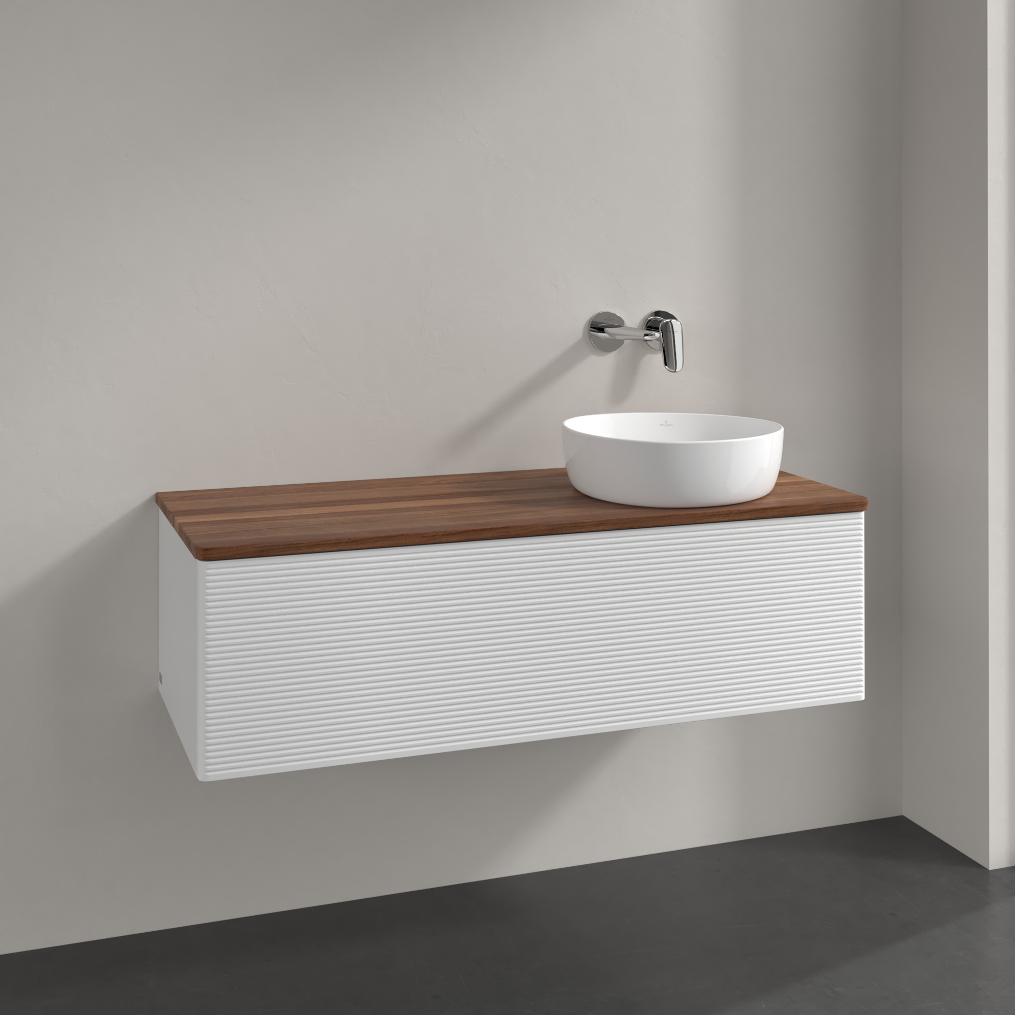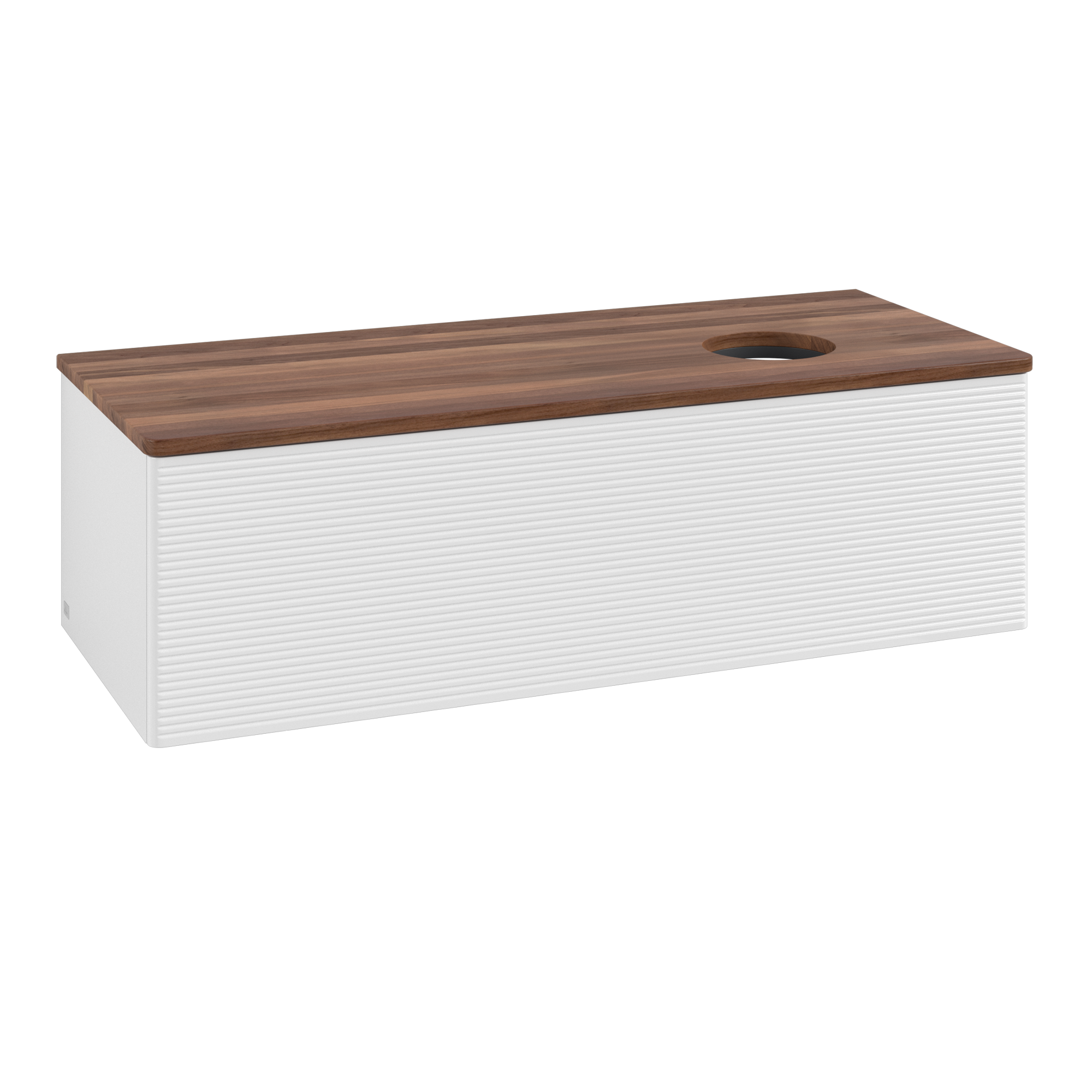 Antao Mobile sottolavabo, 1 vano estraibile, 1200x360x500mm, Frontale con texture, Corpo: Glossy White Lacquer, Fronte: Glossy White Lacquer, Piastra di copertura: Warm Walnut