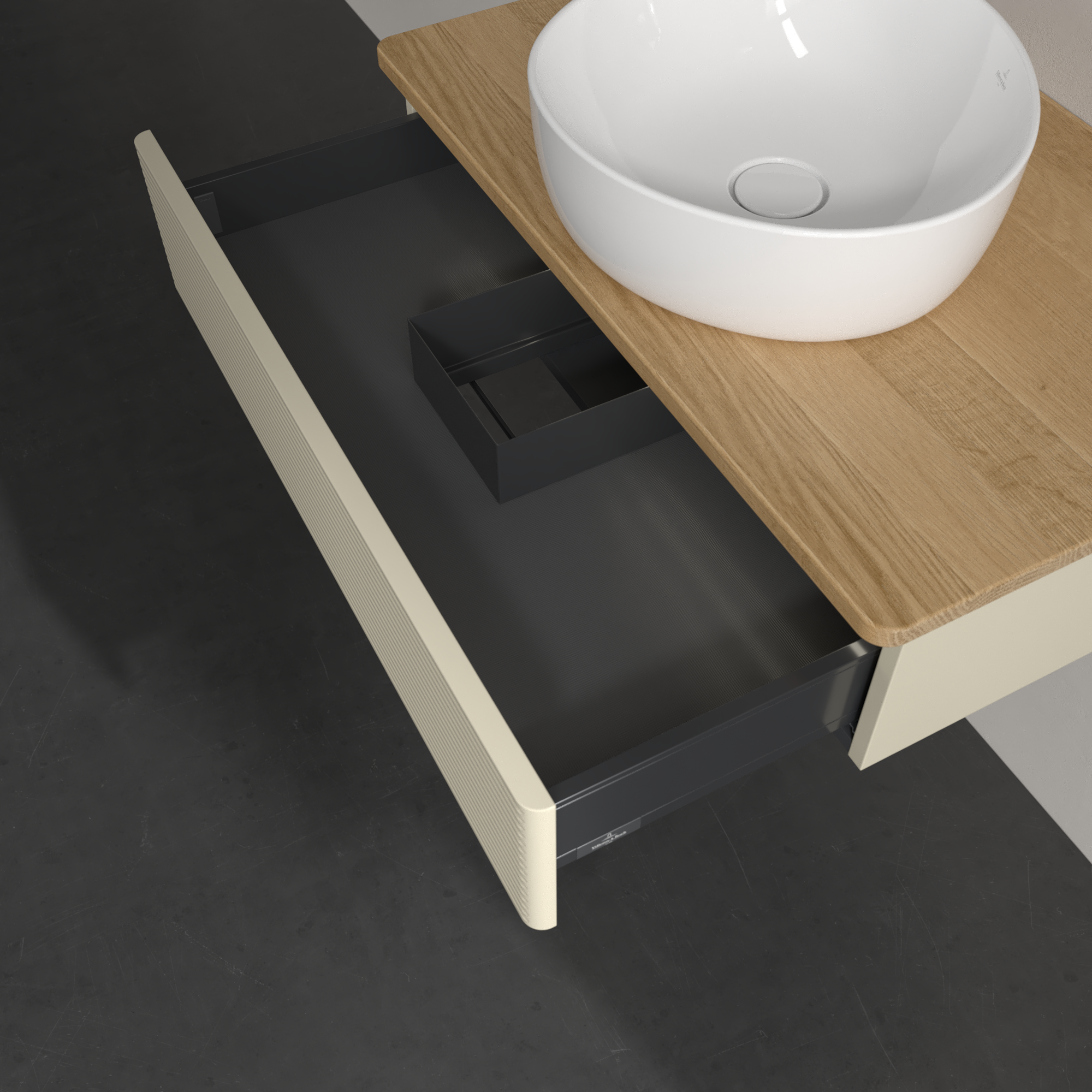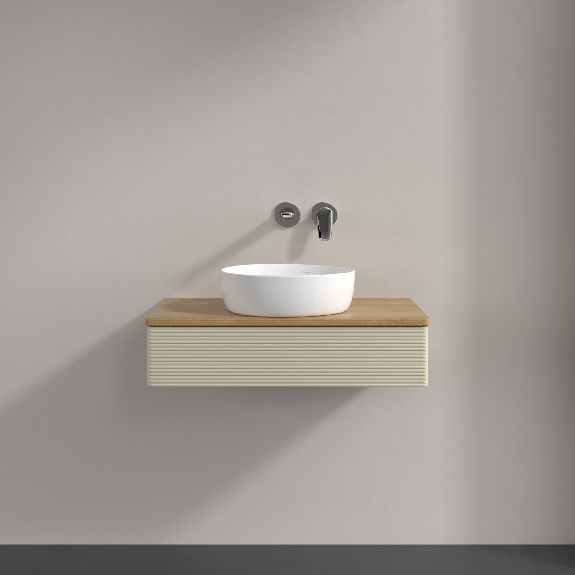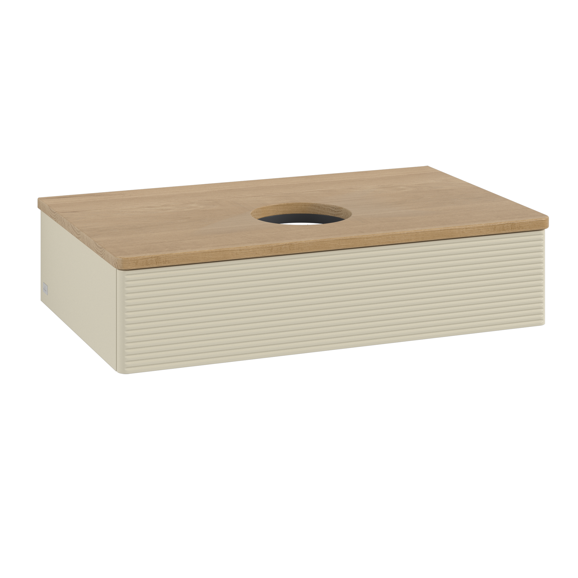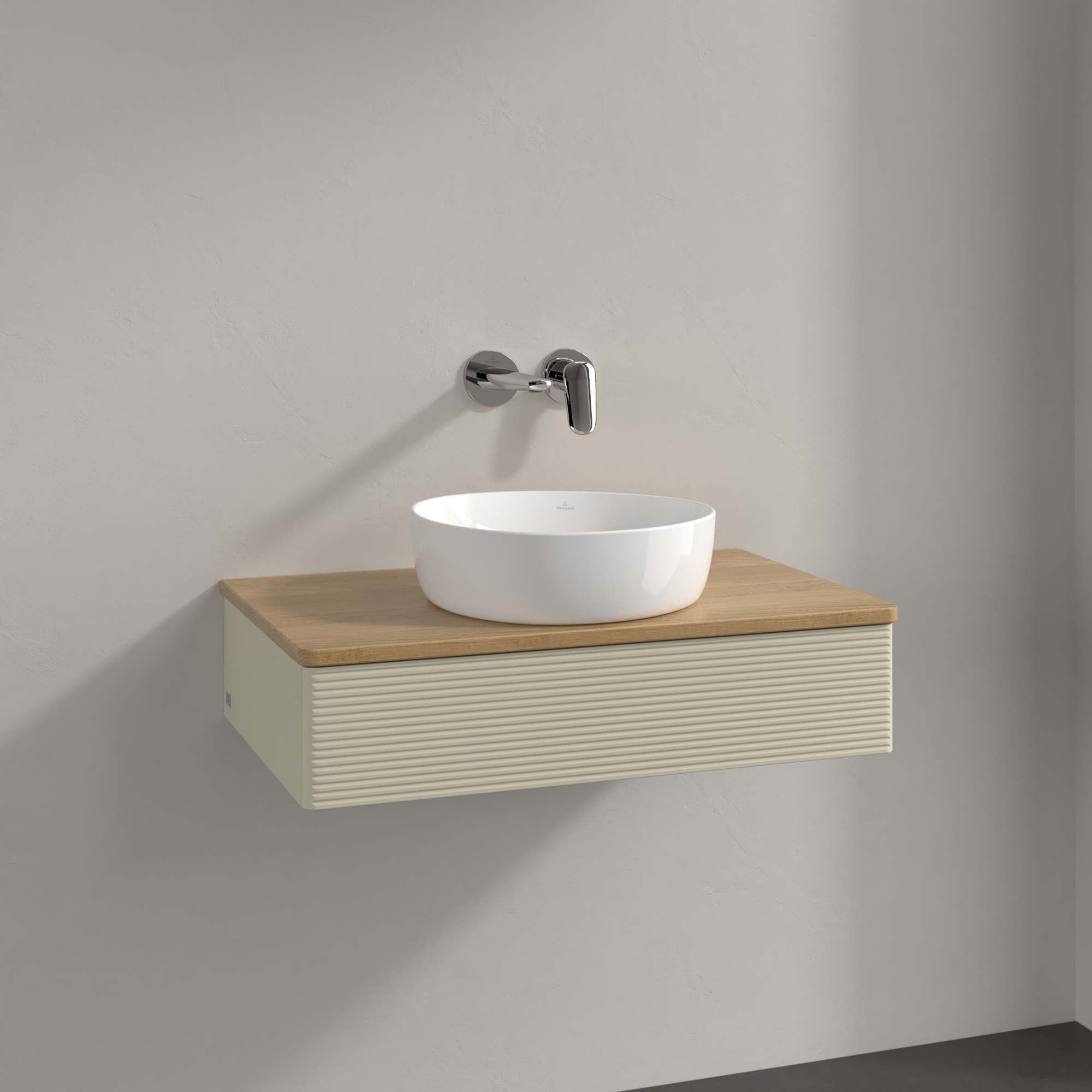 Antao Mobile sottolavabo, con illuminazione, 1 vano estraibile, 800x190x500mm, Frontale con texture, Corpo: Silk Grey Matt Lacquer, Fronte: Silk Grey Matt Lacquer, Piastra di copertura: Honey Oak