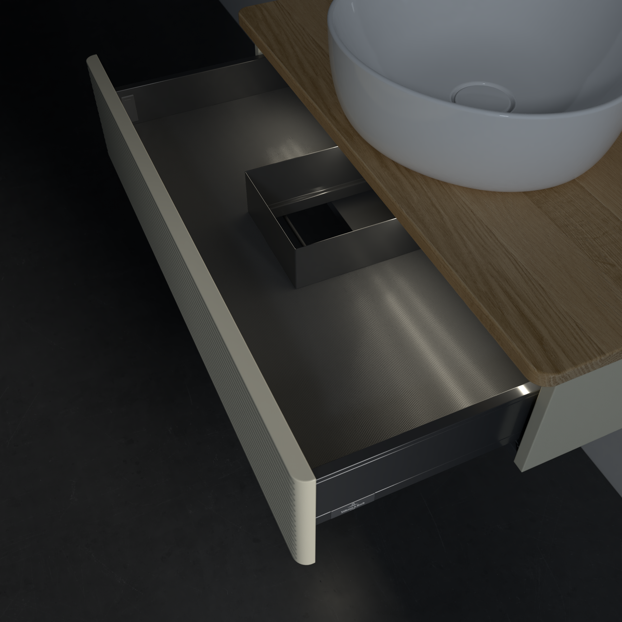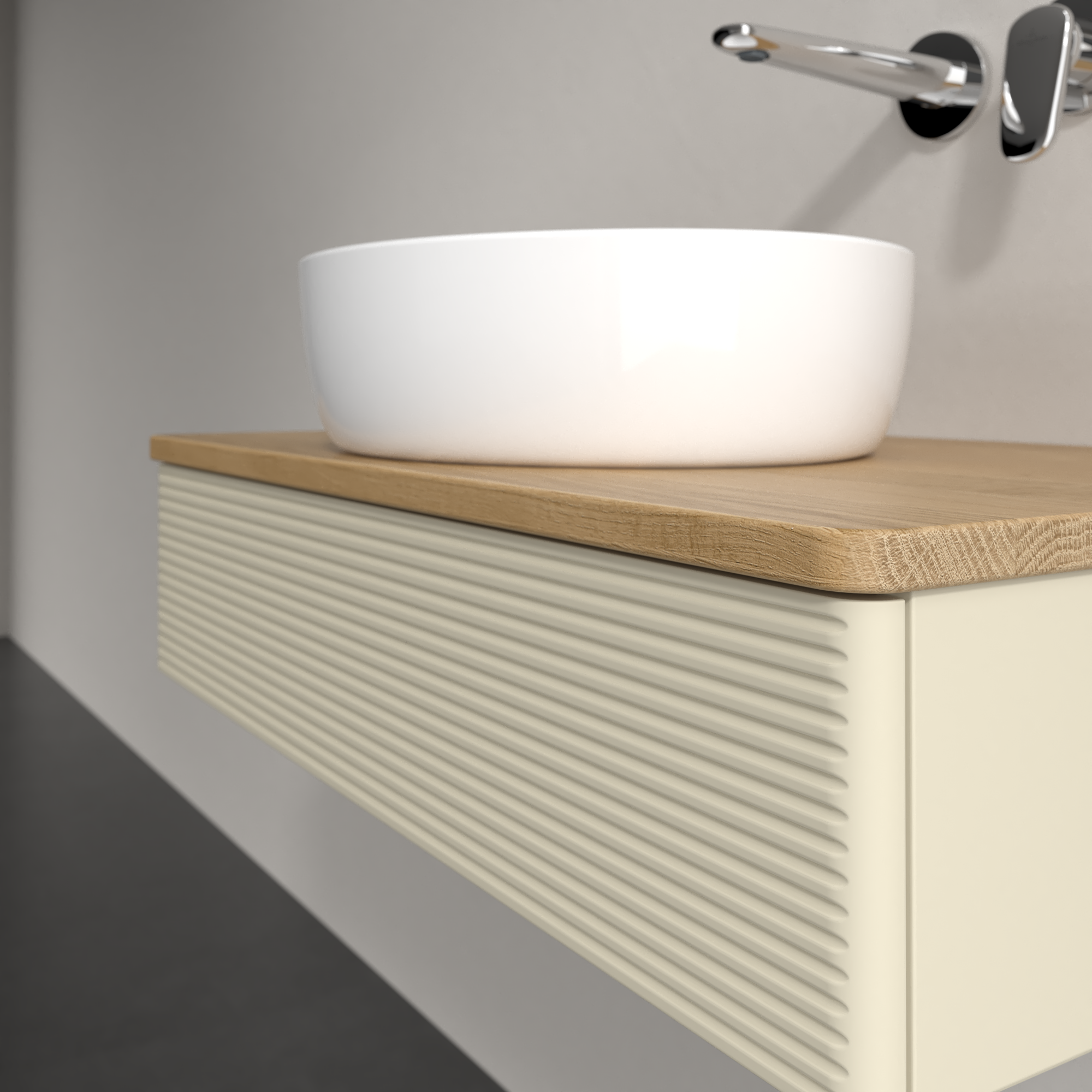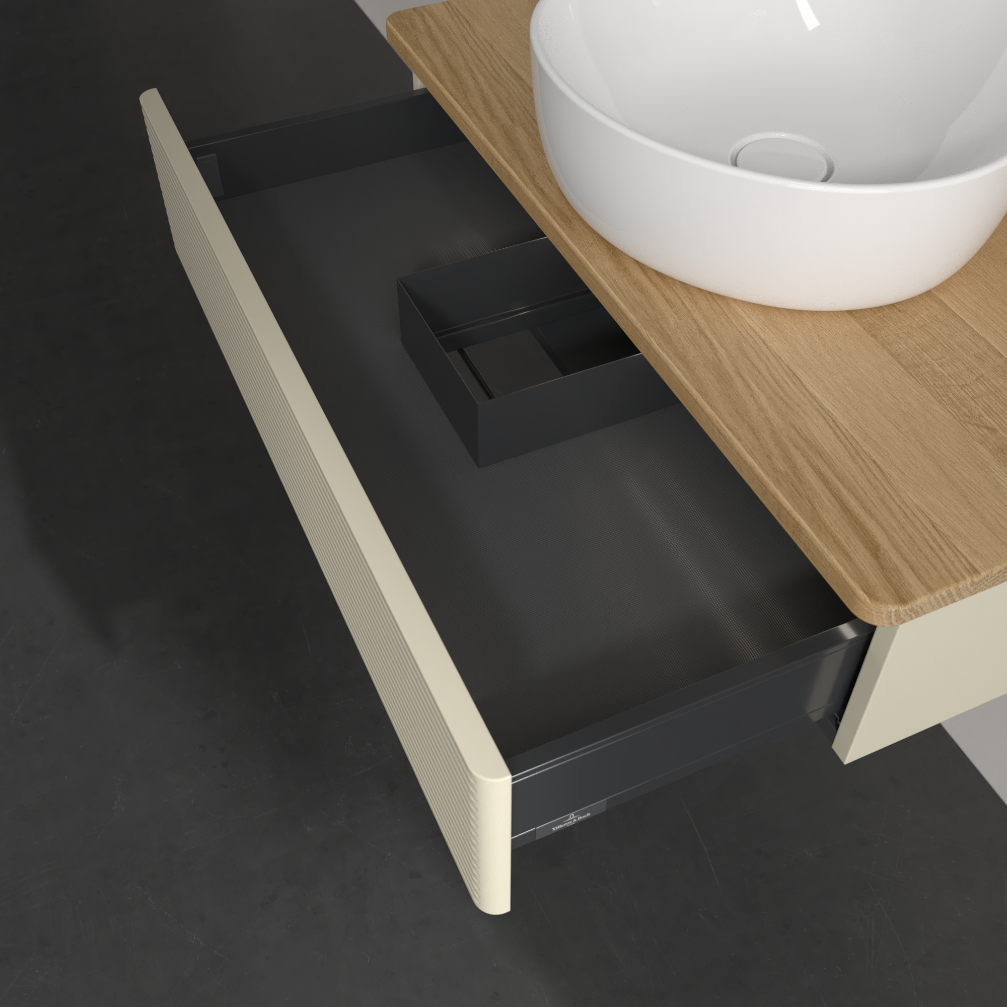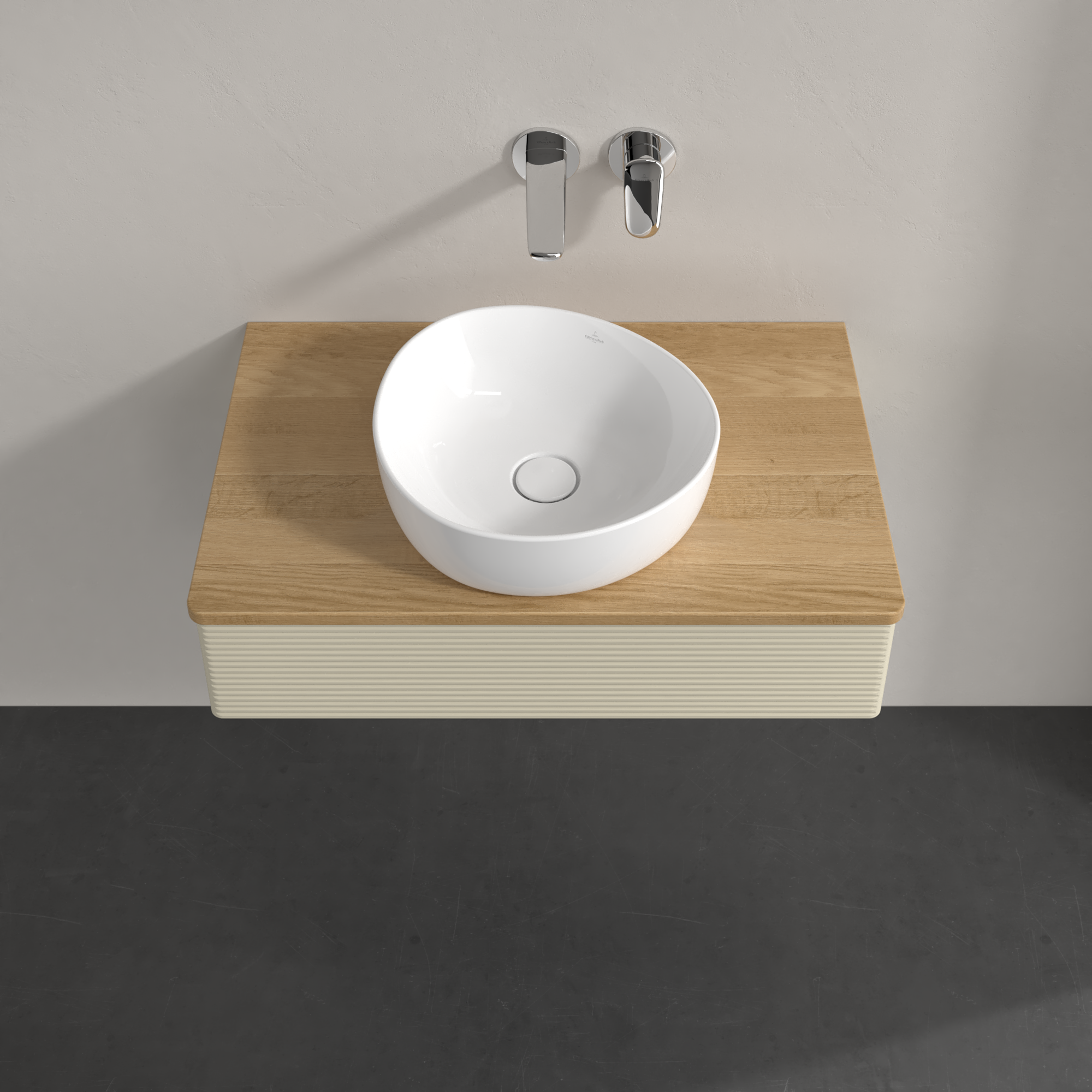 Antao Mobile sottolavabo, con illuminazione, 1 vano estraibile, 800x190x500mm, Frontale con texture, Corpo: Silk Grey Matt Lacquer, Fronte: Silk Grey Matt Lacquer, Piastra di copertura: Honey Oak