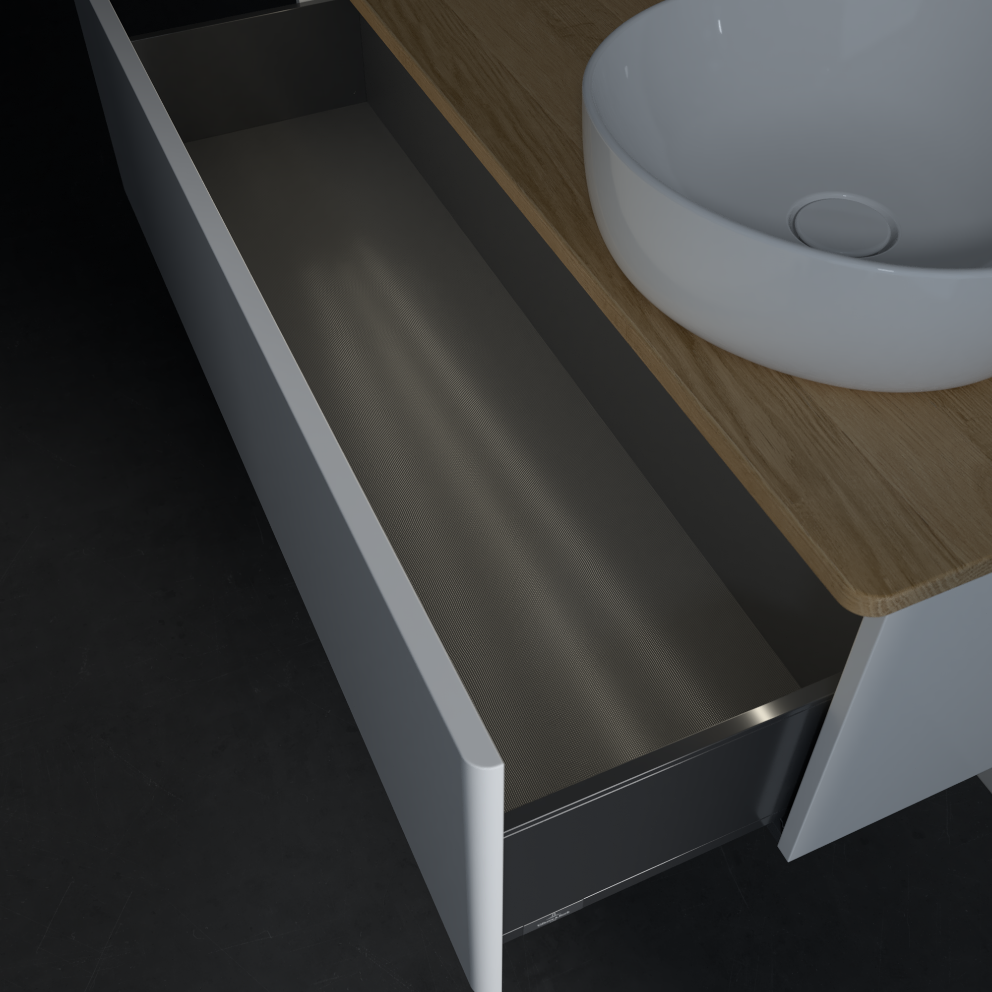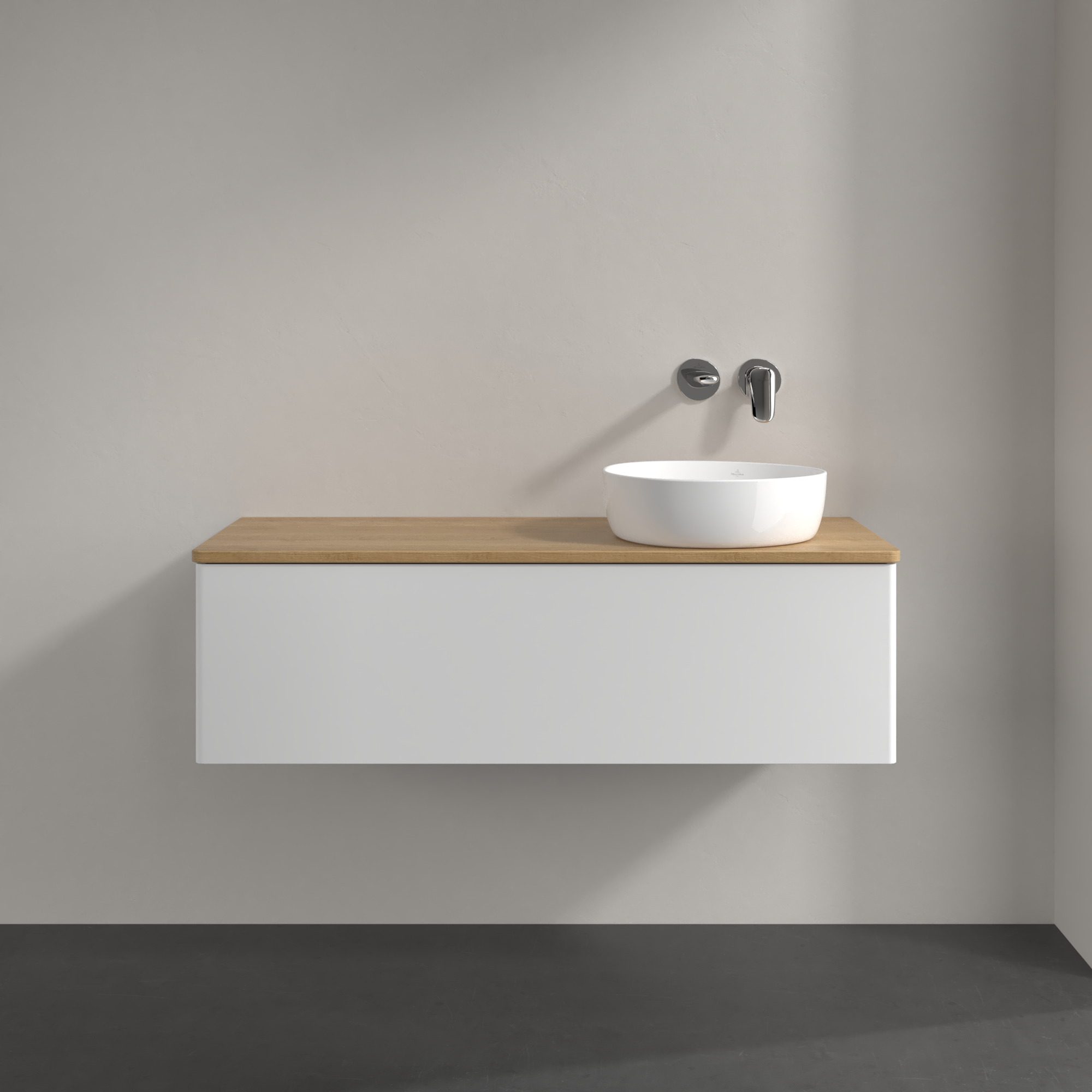 Antao Mobile sottolavabo, con illuminazione, 1 vano estraibile, 1200x360x500mm, Frontale senza texture, Corpo: Glossy White Lacquer, Fronte: Glossy White Lacquer, Piastra di copertura: Honey Oak