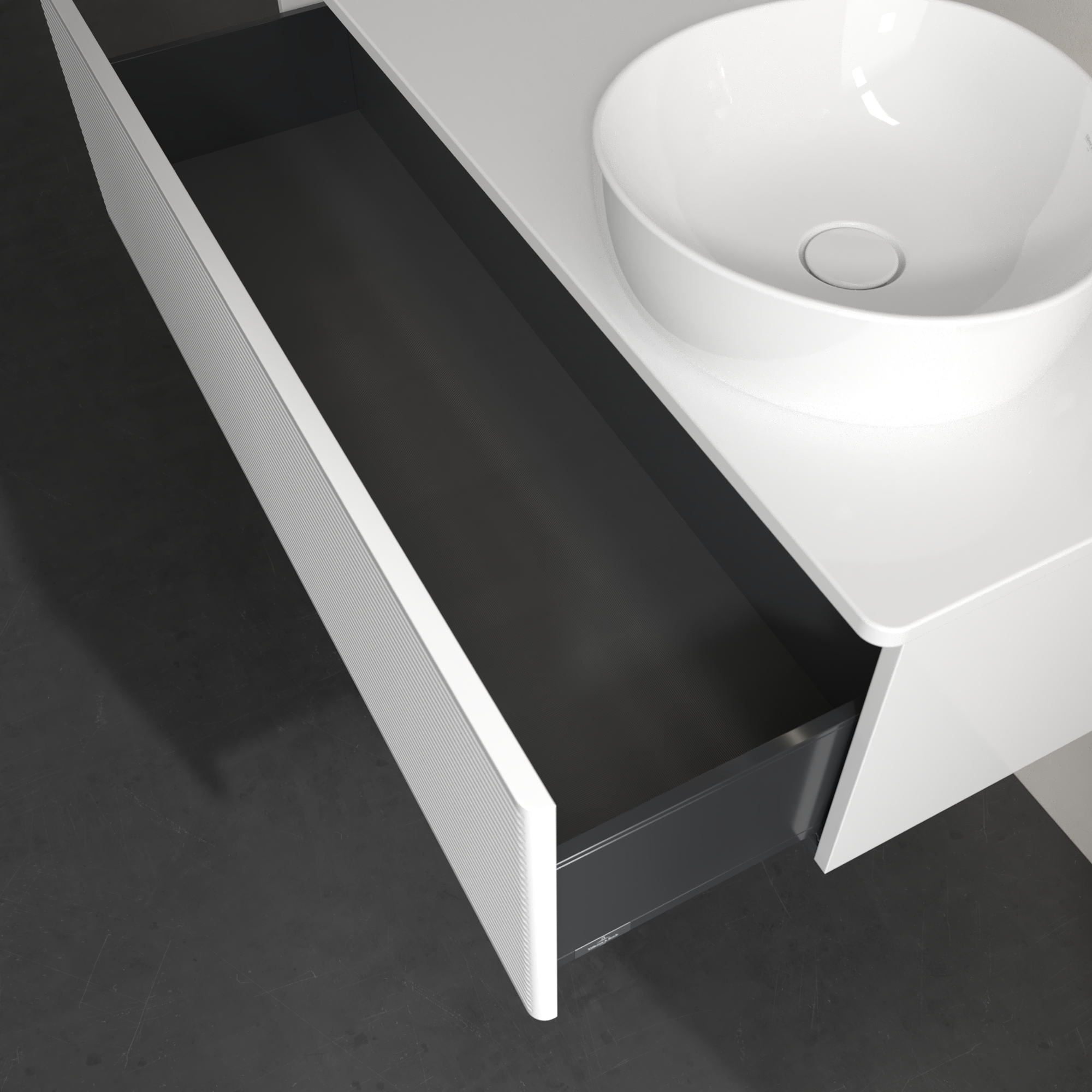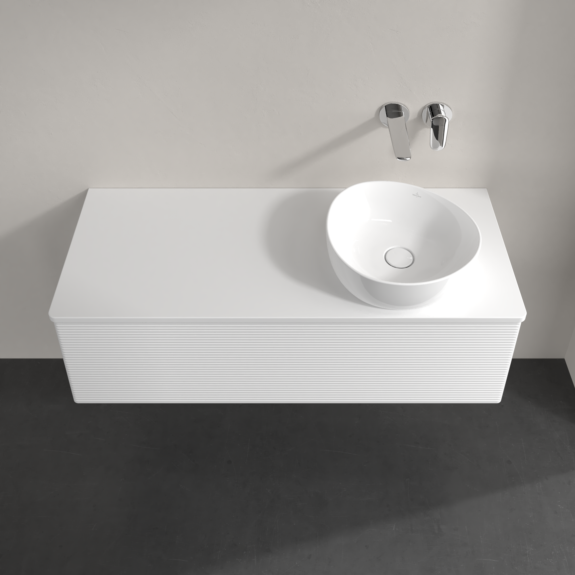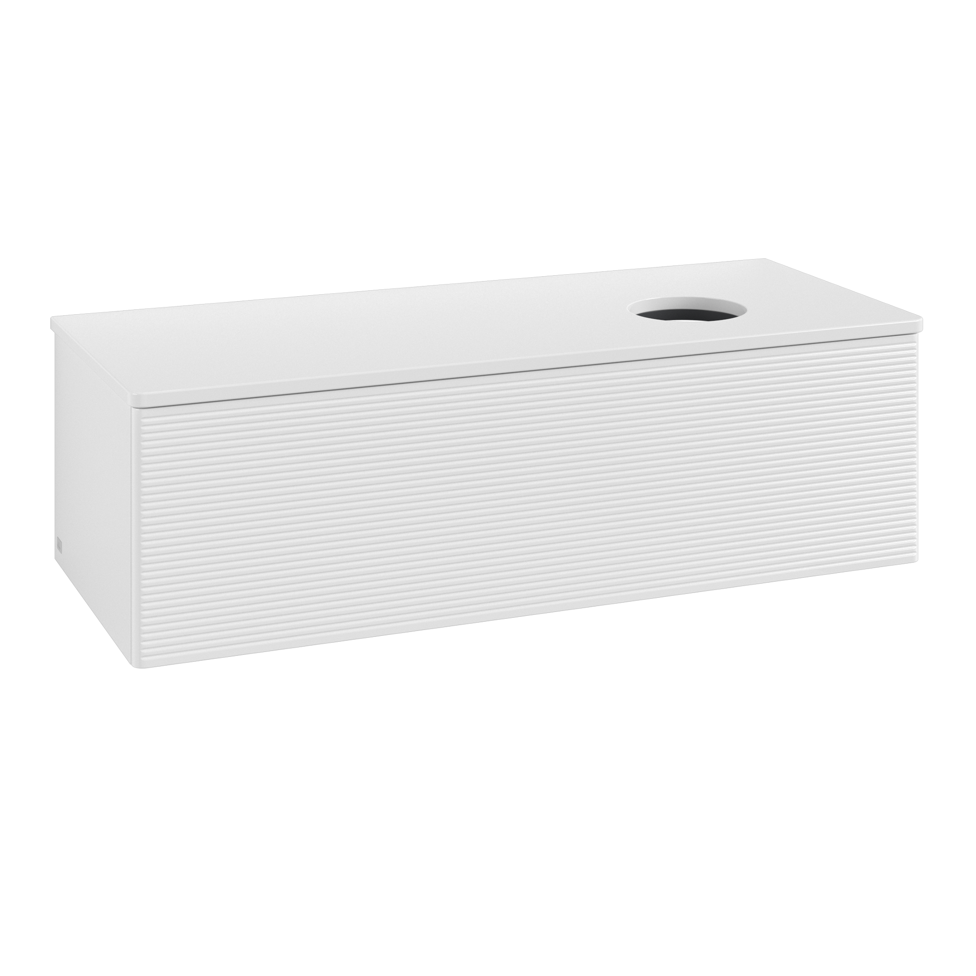 Antao Mobile sottolavabo, con illuminazione, 1 vano estraibile, 1200x360x500mm, Frontale con texture, Corpo: Glossy White Lacquer, Fronte: Glossy White Lacquer, Piastra di copertura: Glossy White Lacquer
