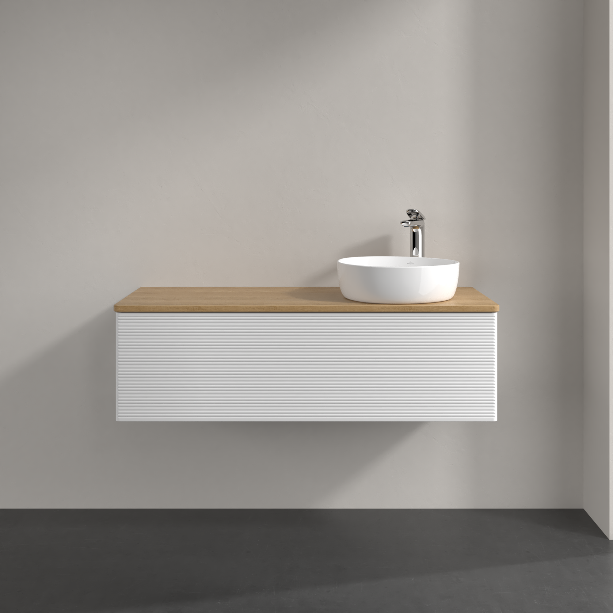 Antao Mobile sottolavabo, con illuminazione, 1 vano estraibile, 1200x360x500mm, Frontale con texture, Corpo: Glossy White Lacquer, Fronte: Glossy White Lacquer, Piastra di copertura: Honey Oak