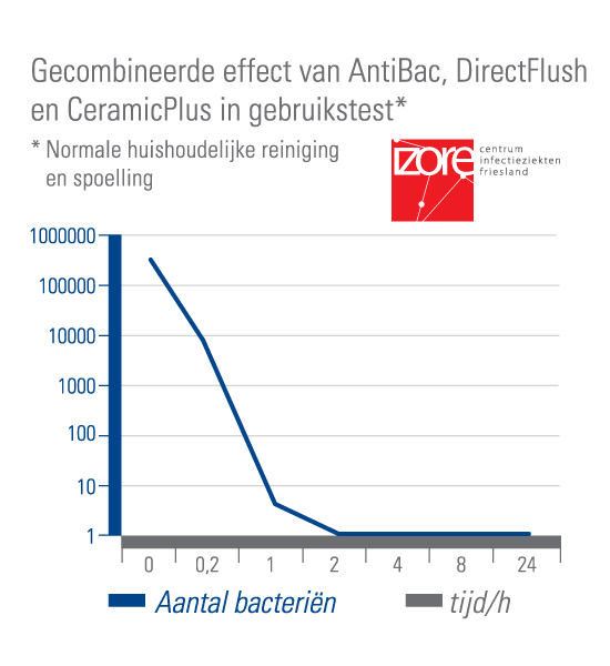 Deze oppervlakken konden de hoeveelheid organismen in ziekenhuis- of medische gebouwen verminderen en ertoe bijdragen om een veilige omgeving te scheppen. Deze effecten zijn echter in reële omstandigheden moeilijk aan te tonen; hier doen zich te veel andere factoren gevoelen. Het resultaat wordt bv. ook beïnvloed door de sterke afname van de organismen door spoelen en regelmatige reiniging. Met name het design speelt bij toiletten een grote rol. Het is van belang hoe het water door het toilet wegloopt, hoe het spoelproces plaatsheeft en of er zeer fijne spraydruppels ontstaan. Het glazuur en de kwaliteit van het oppervlak blijven belangrijk. Bij de DirectFlush modellen met CeramicPlus oppervlakken zien wij een echt effect. Het veredelingsproces zorgt ervoor dat druppels op het oppervlak onmiddellijk worden gebundeld tot waterparels en weglopen. Naast de antibacteriële coating spelen dus het glazuur en de kwaliteit van het oppervlak, het spoel- en afloopgedrag en natuurlijk de eenvoud van reiniging een rol.