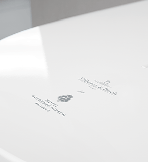 Het luxe hotel Goldener Hirsch in het hart van de historische binnenstad van Salzburg is altijd al een populaire ontmoetingsplaats geweest voor liefhebbers van culinaire geneugten en beroemdheden uit de hele wereld: Grote sterren van de Salzburger Festspiele en internationale persoonlijkheden zoals Elizabeth Taylor, Herbert von Karajan, Luciano Pavarotti, de Rothschilds, de Getty's en de Prince of Wales zijn er al geweest. Tradities in ere houden en toch met de tijd meegaan, dit motief verbindt de Goldener Hirsch en Villeroy & Boch. Na de renovatie van dit traditierijke hotel werd dit tot in het kleinste detail zichtbaar. Om de Villeroy & Boch producten een individueel accent van het hotel te geven, werden deze verfijnd met speciaal ontwikkelde partnerlogo's en designelementen van de Golderner Hirsch. |