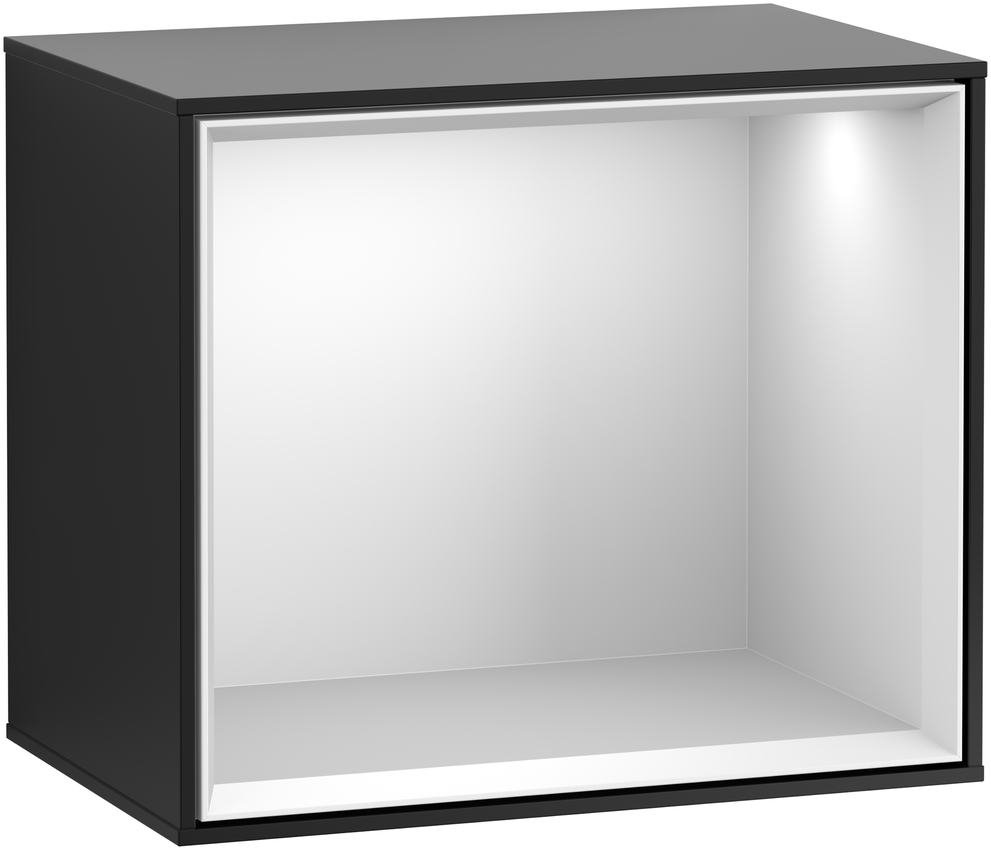 - Indirecte verlichting van de schappen en achterwandverlichting van de onderkasten en lichtspiegel