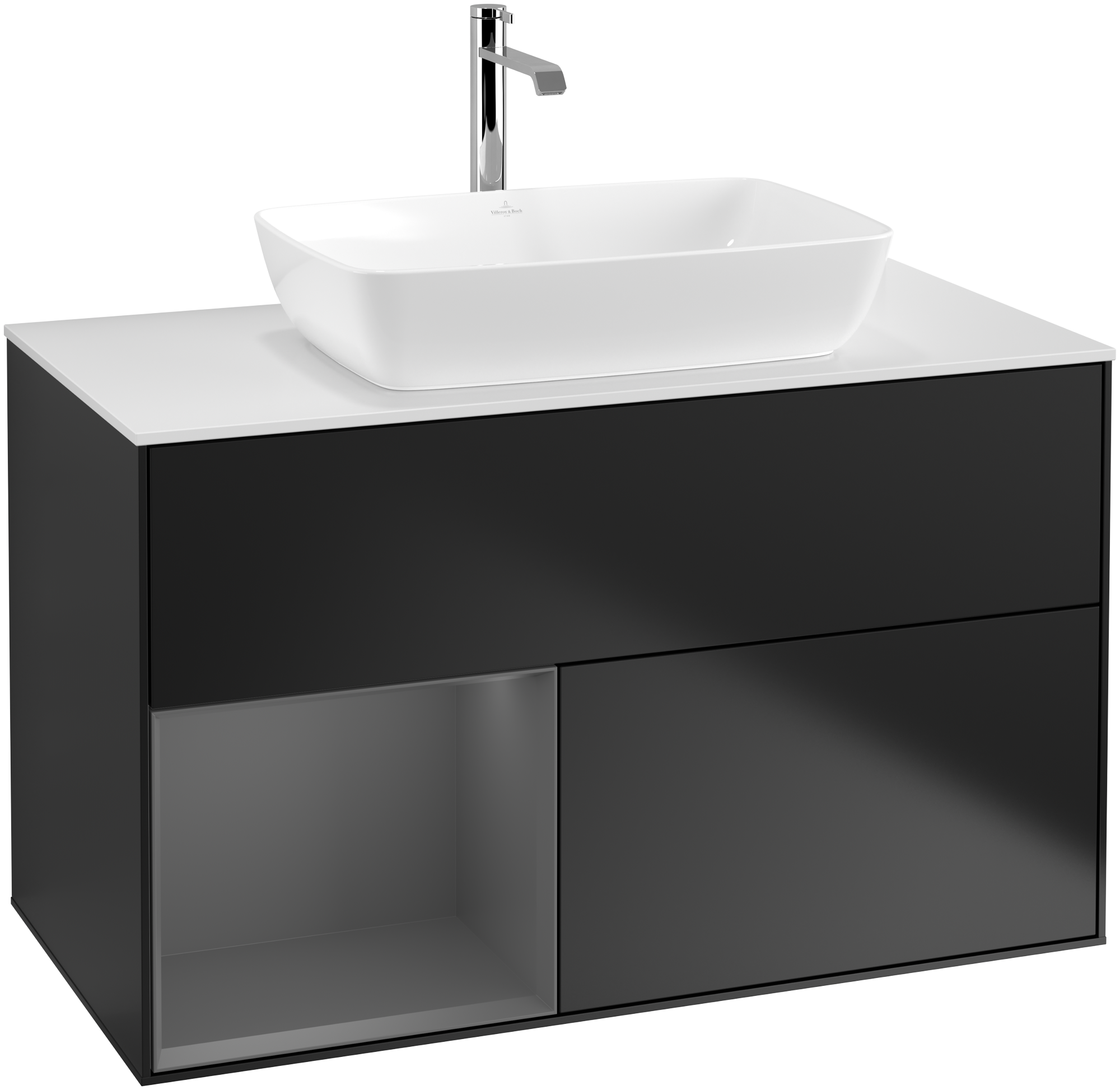 - Hoogwaardige oppervlakken in 10 lakkleuren en 1 houtfineer en 2 fraaie glasplaten voor opzetwastafels