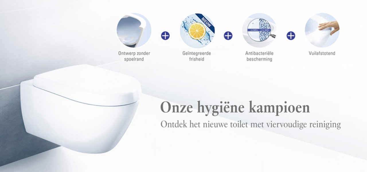 Hygiënisch, fris en eenvoudig te reinigen – met onze hygiëne-kampioen beschikken uw klanten over een optimale bescherming. Want het spoelrandloze DirectFlush-toilet met innovatieve ViFresh-technologie en CeramicPlus- en AntiBac-oppervlakken is de perfecte hygiëneoplossing van Villeroy&Boch.