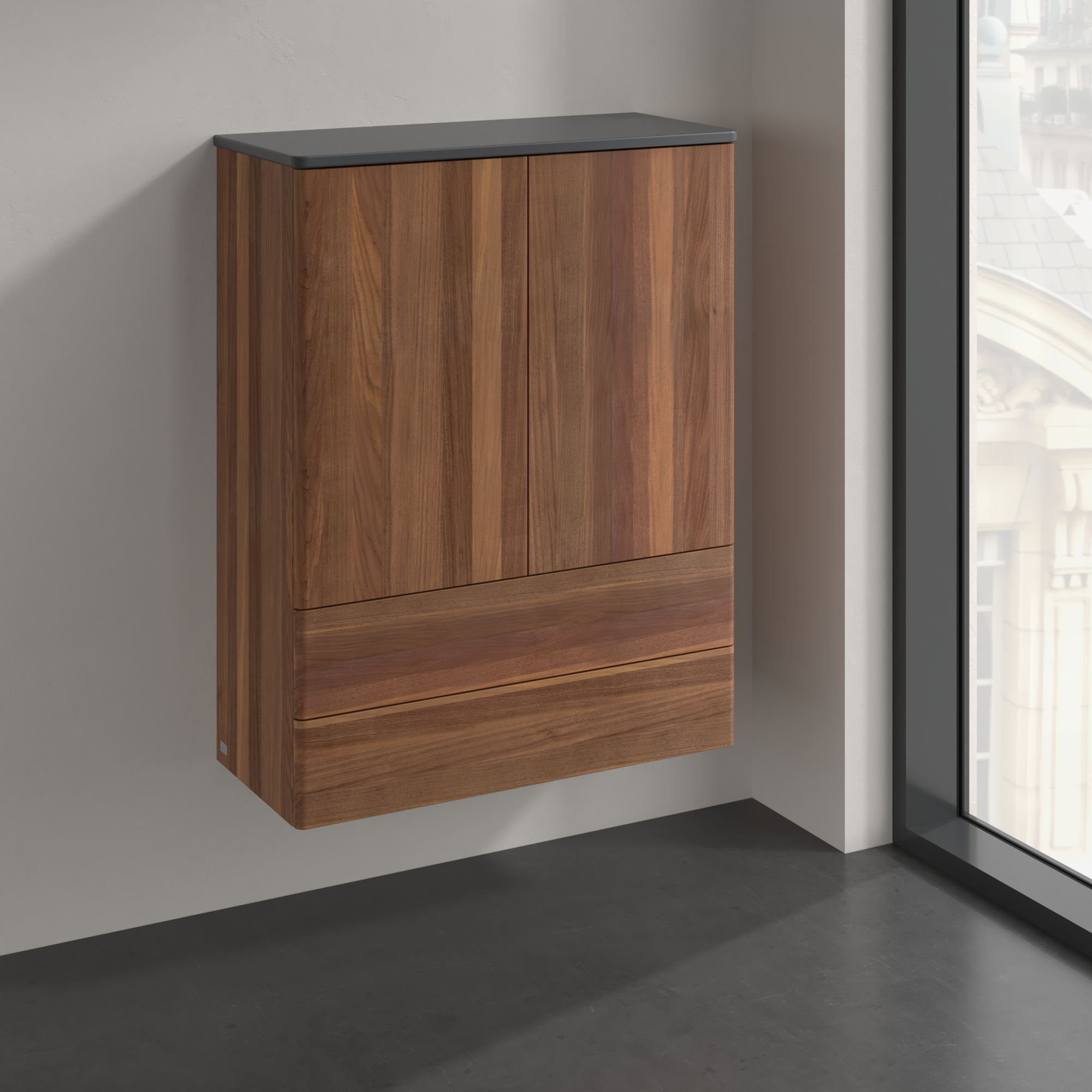 Antao Highboard, 2 deuren, 814x1039x356mm, front zonder structuur, Corpus: Warm Walnut, Front: Warm Walnut, Afdekplaat: Warm Walnut