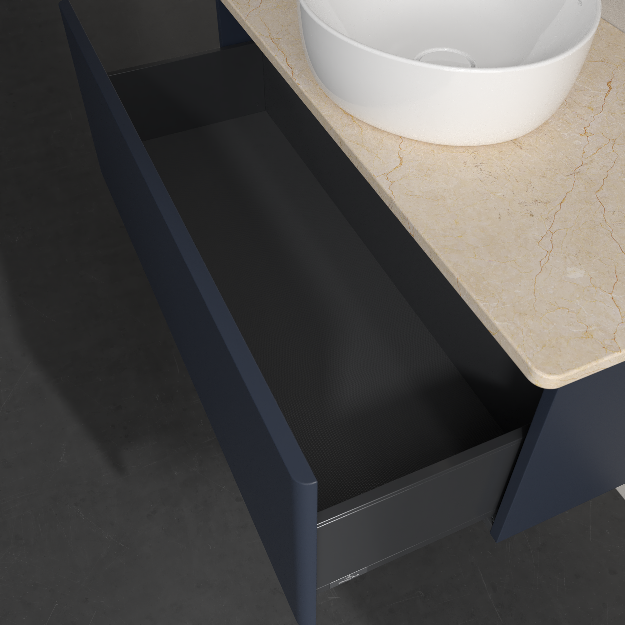 Antao Wastafelonderkast, 1 uittreklade, 1000x360x500mm, front zonder structuur, Corpus: Midnight Blue Matt Lacquer, Front: Midnight Blue Matt Lacquer, Afdekplaat: Botticino