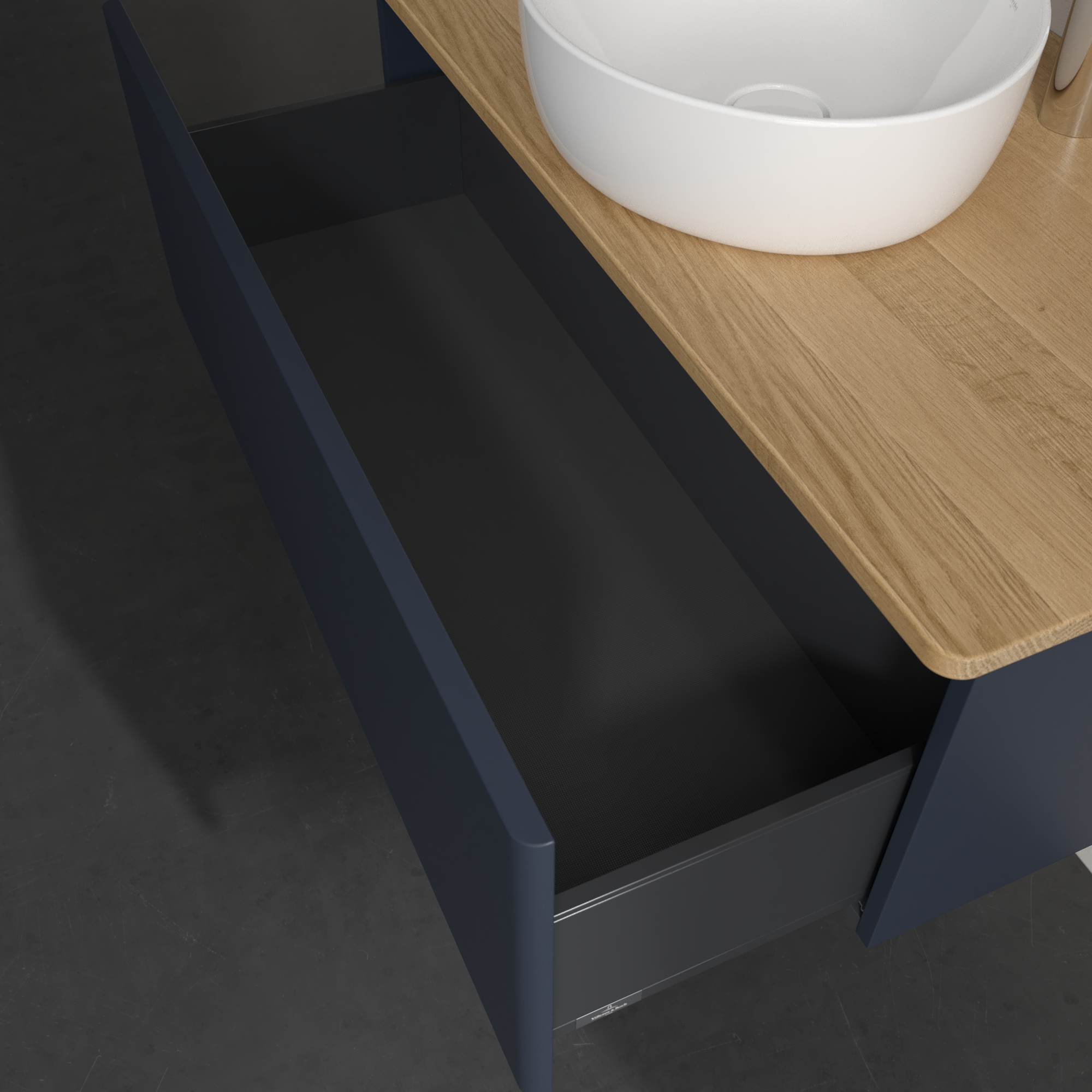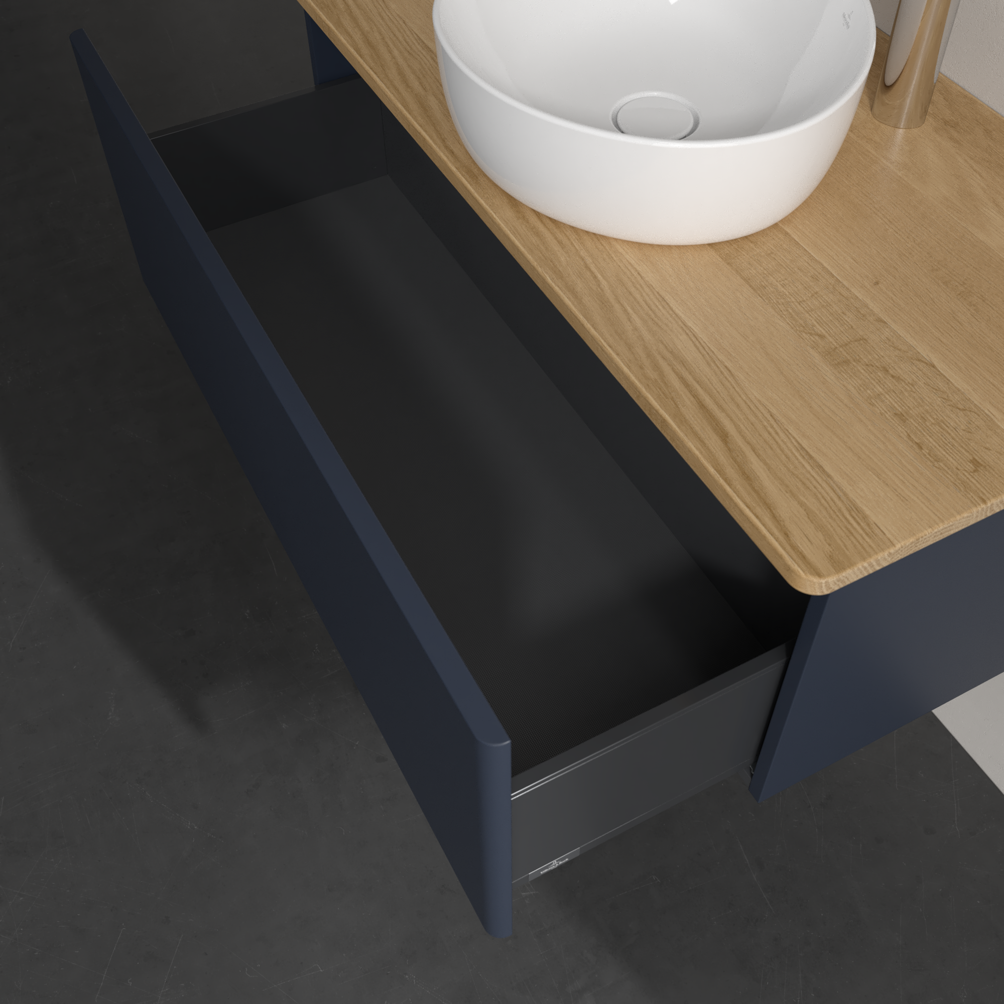 Antao Wastafelonderkast, 1 uittreklade, 1000x360x500mm, front zonder structuur, Corpus: Midnight Blue Matt Lacquer, Front: Midnight Blue Matt Lacquer, Afdekplaat: Honey Oak