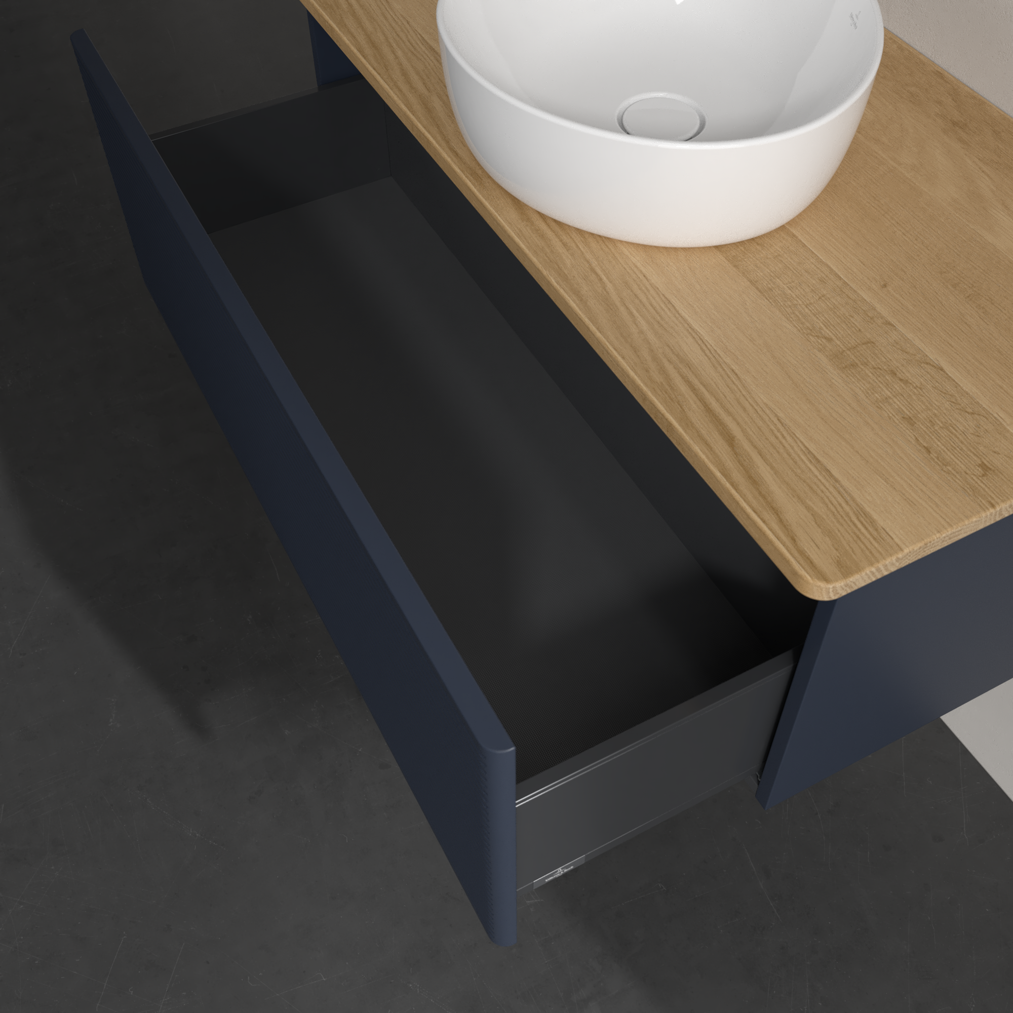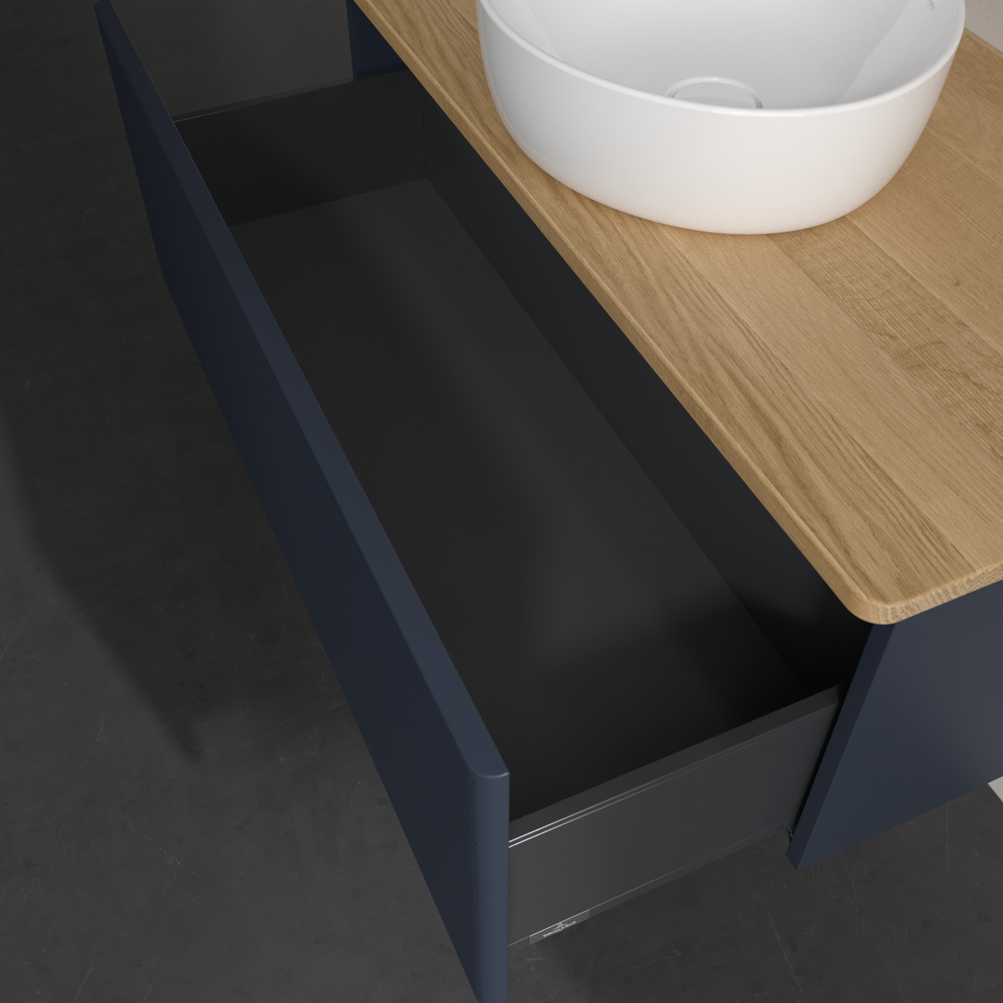 Antao Wastafelonderkast, 1 uittreklade, 1000x360x500mm, front met structuur, Corpus: Midnight Blue Matt Lacquer, Front: Midnight Blue Matt Lacquer, Afdekplaat: Honey Oak