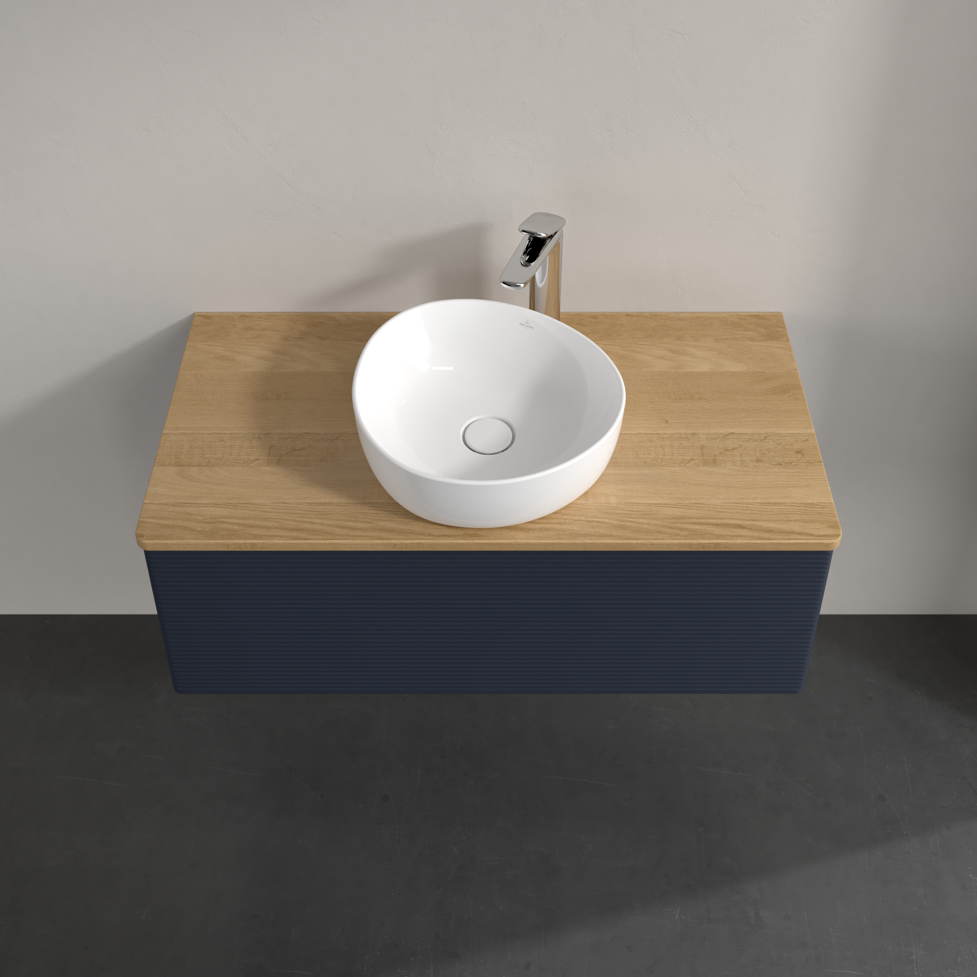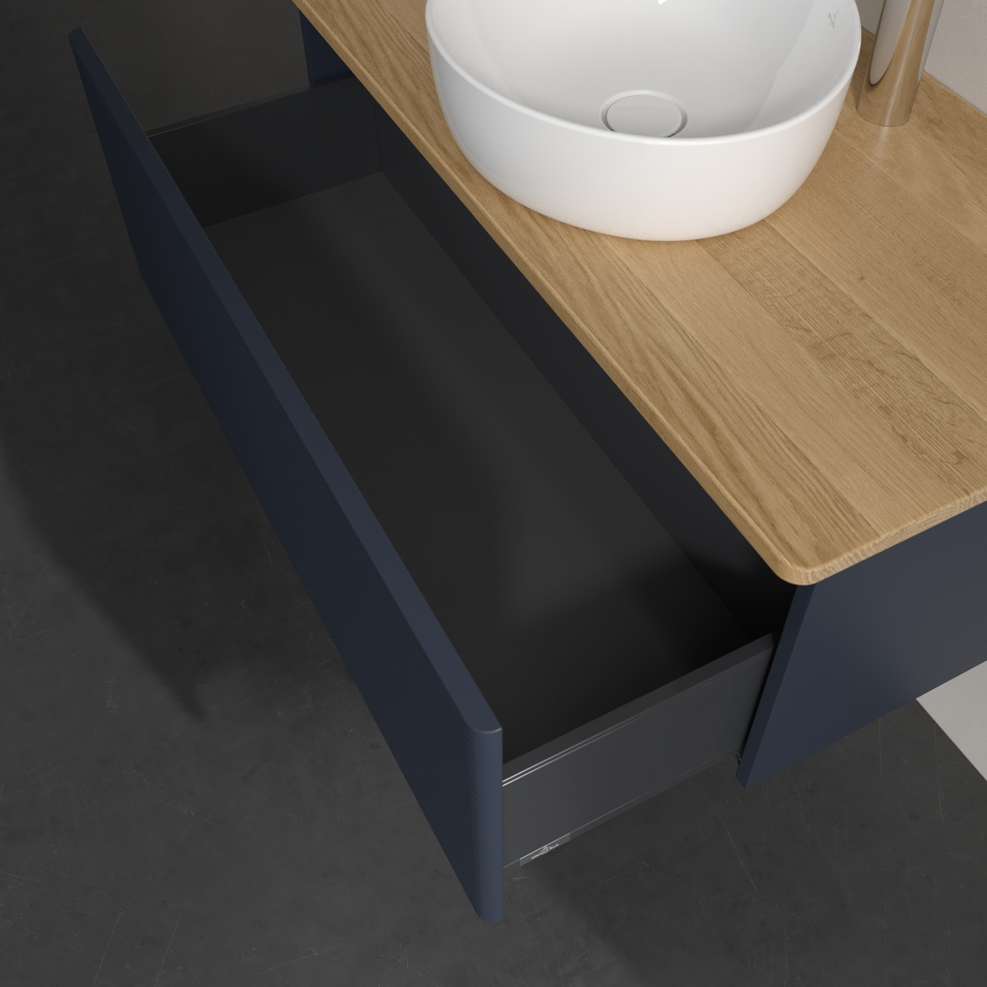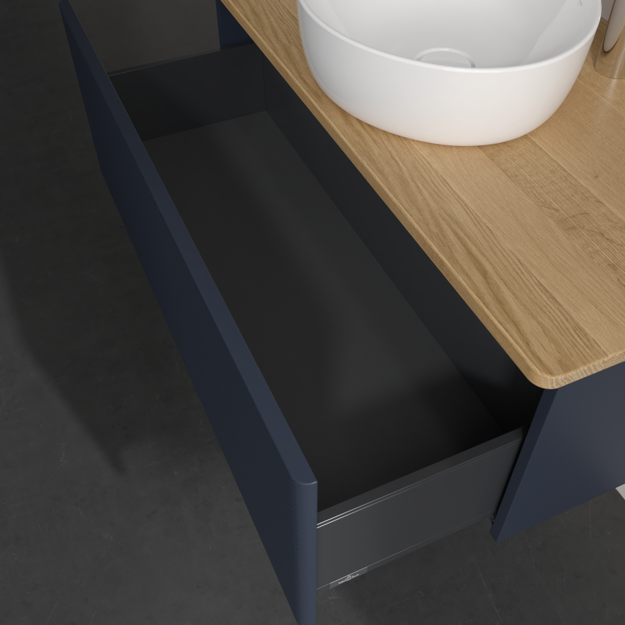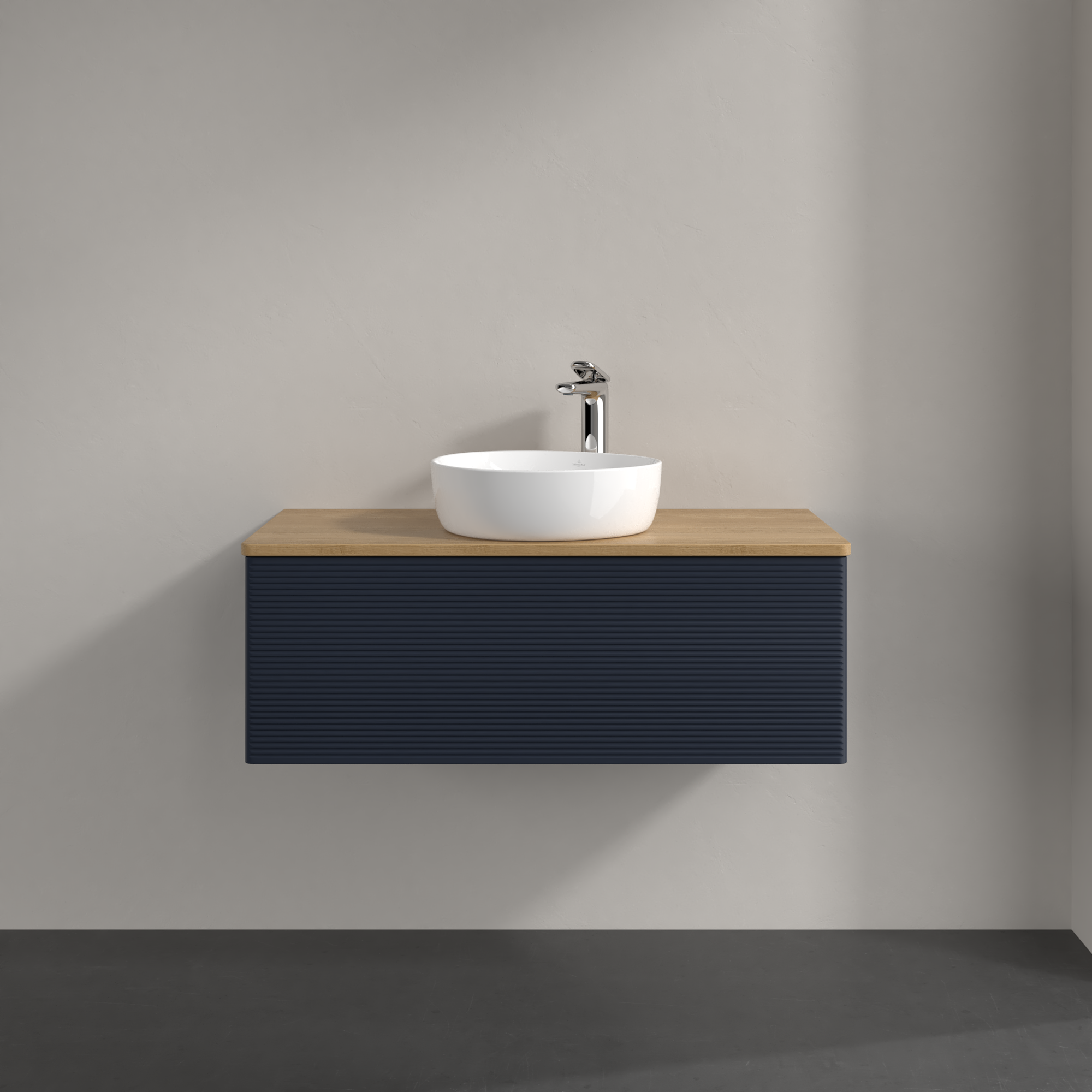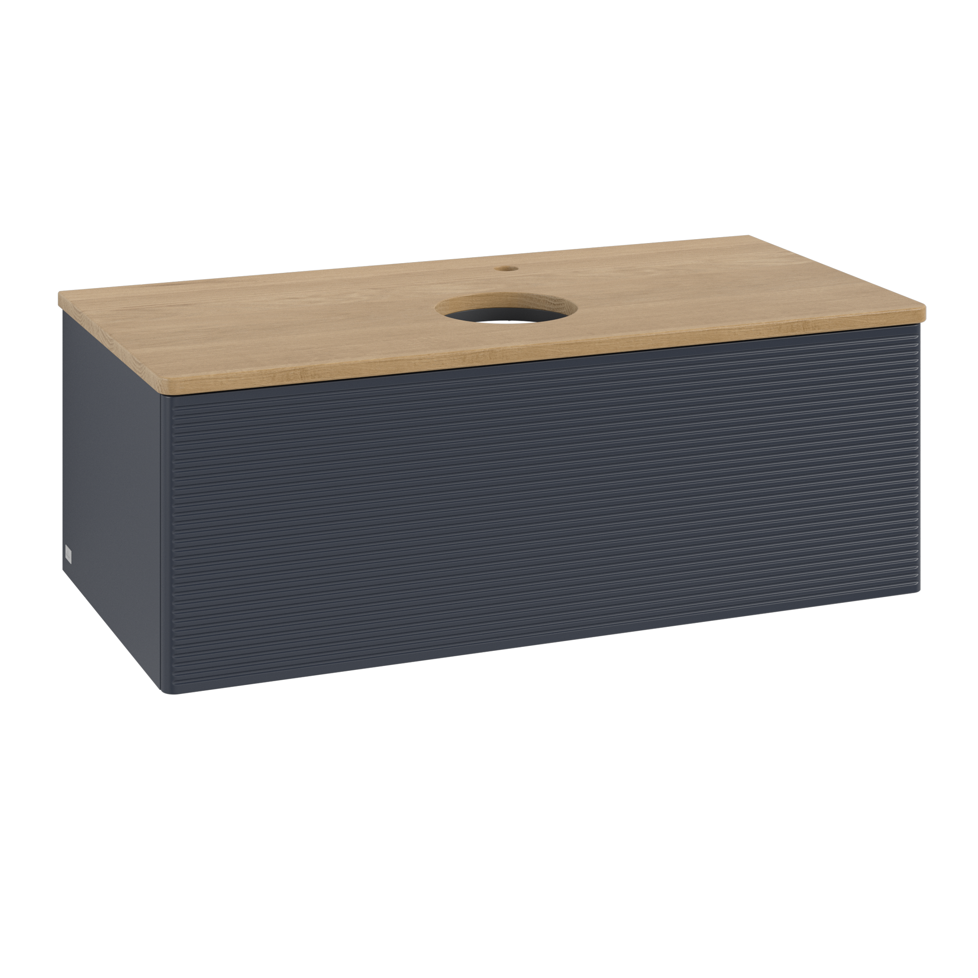 Antao Wastafelonderkast, 1 uittreklade, 1000x360x500mm, front met structuur, Corpus: Midnight Blue Matt Lacquer, Front: Midnight Blue Matt Lacquer, Afdekplaat: Honey Oak