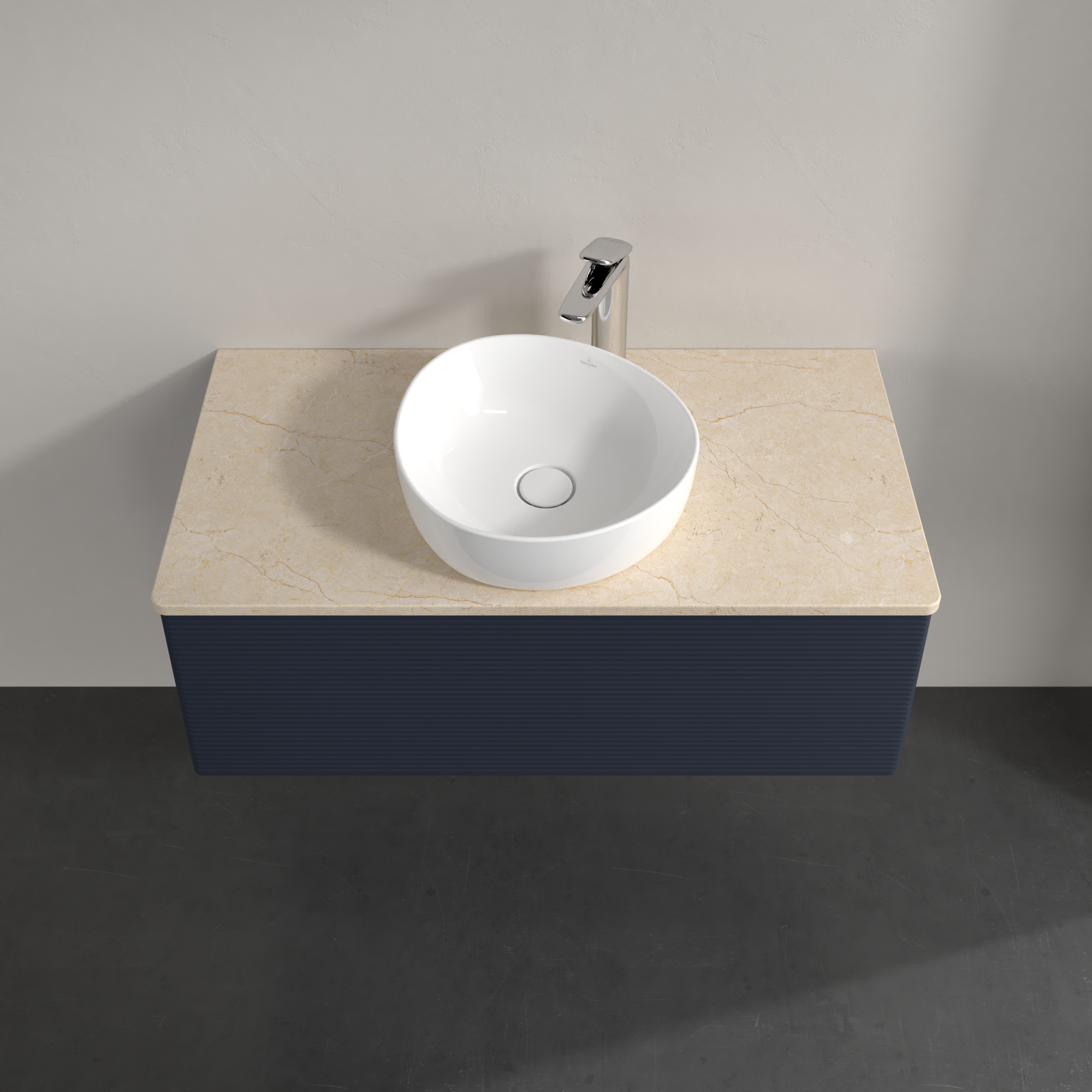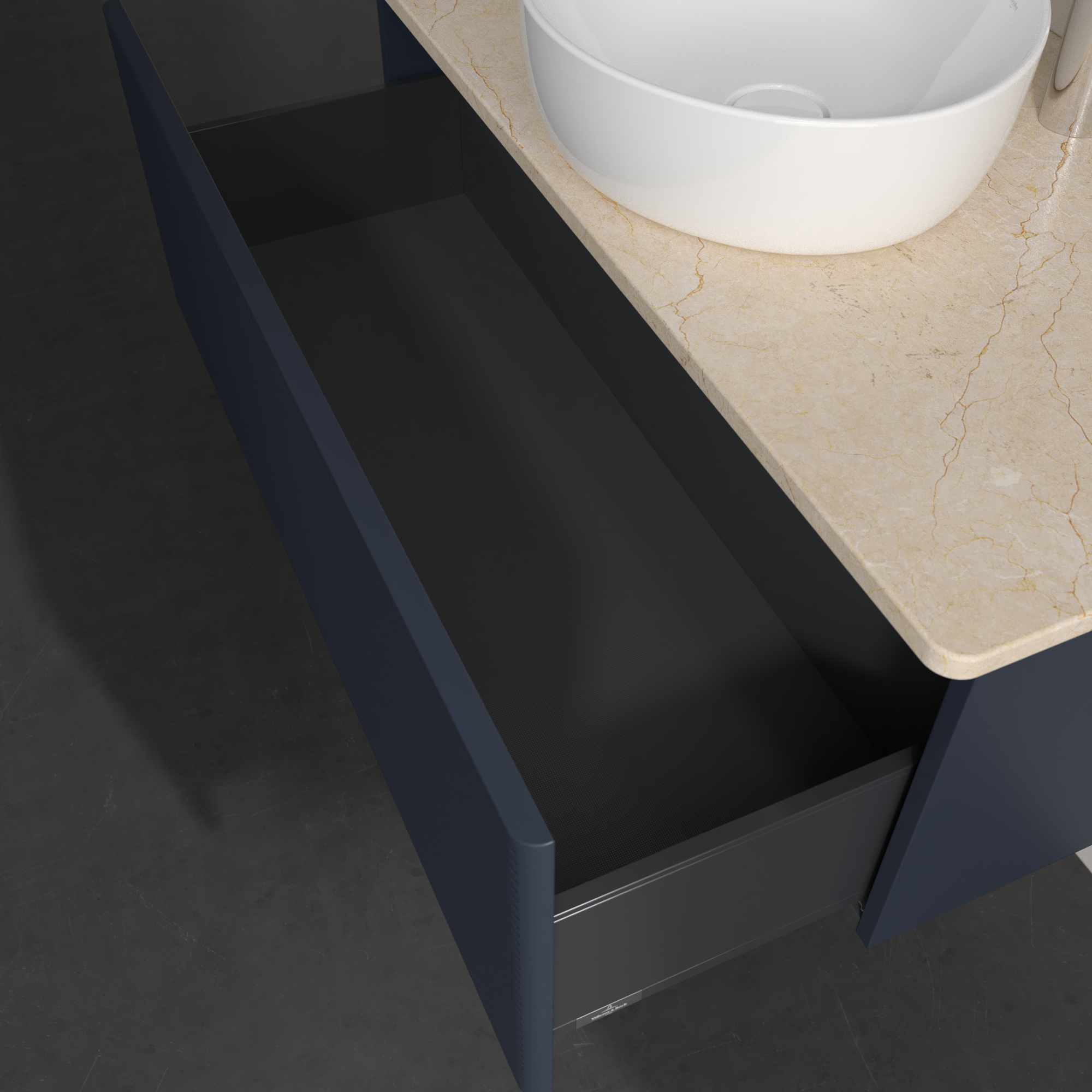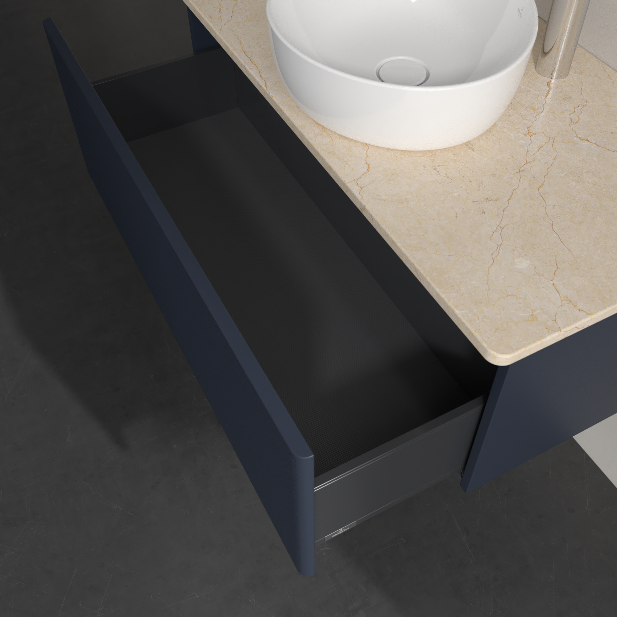Antao Wastafelonderkast, 1 uittreklade, 1000x360x500mm, front met structuur, Corpus: Midnight Blue Matt Lacquer, Front: Midnight Blue Matt Lacquer, Afdekplaat: Botticino