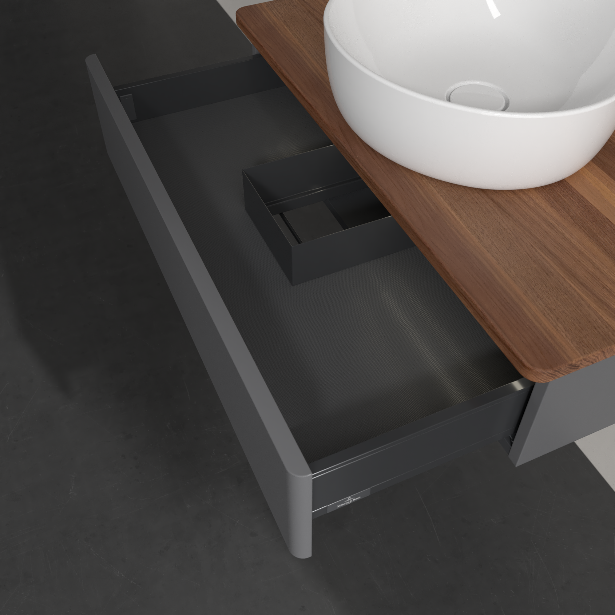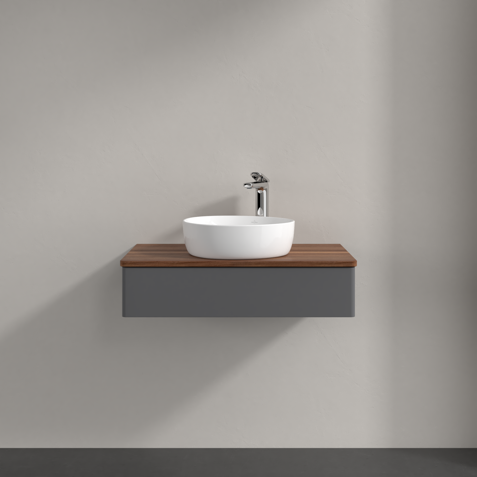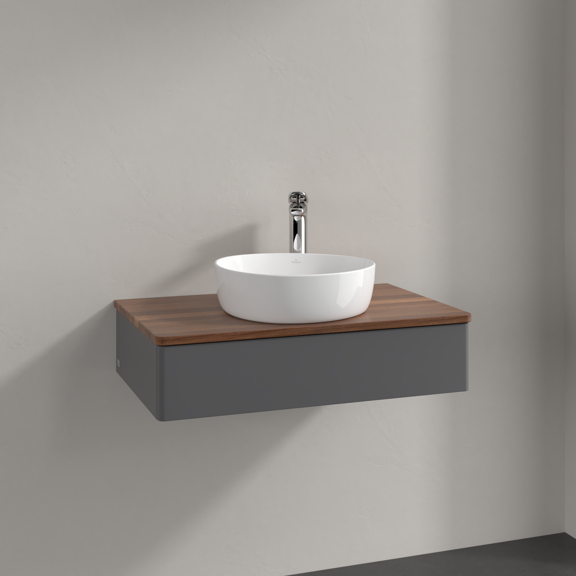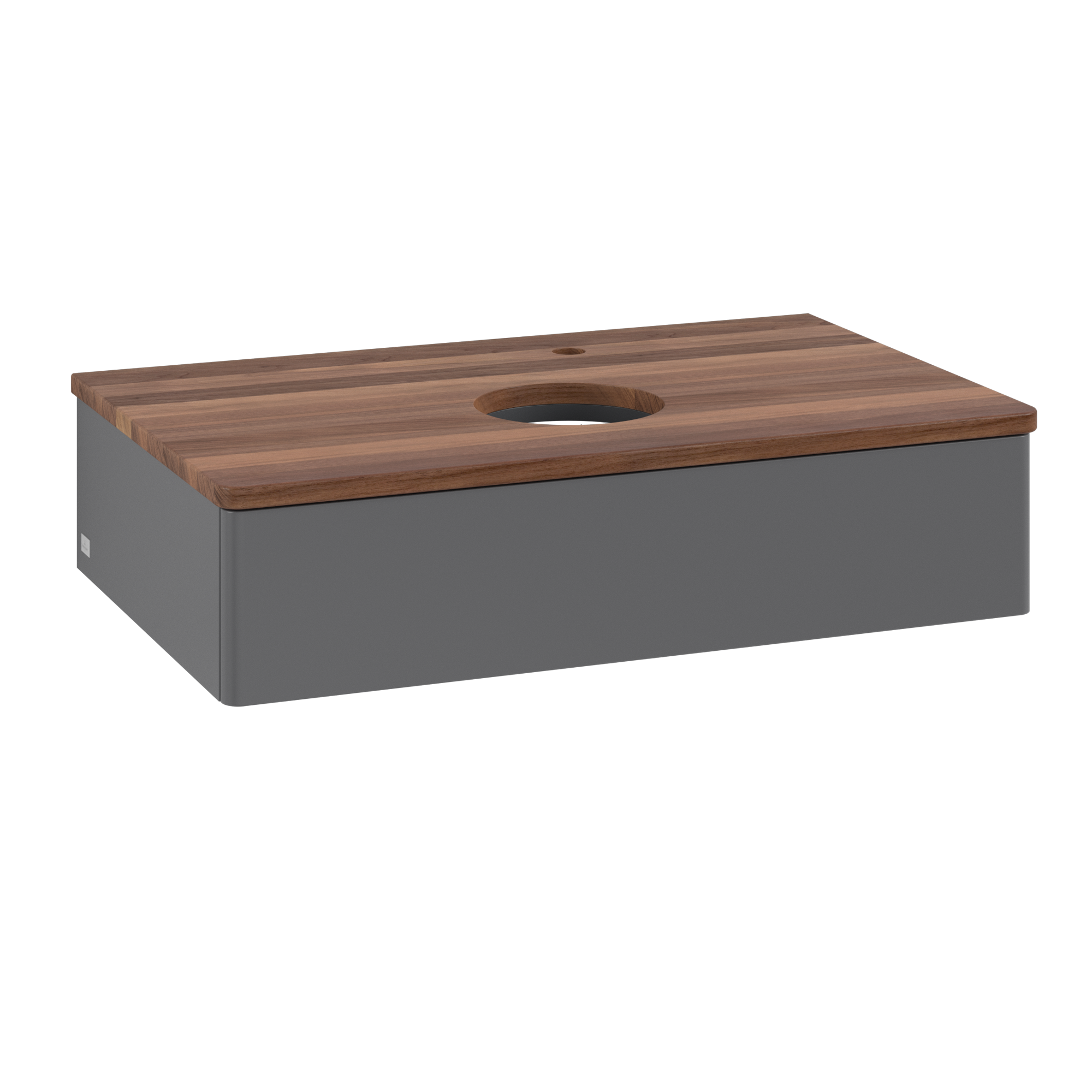 Antao Wastafelonderkast, met verlichting, 1 uittreklade, 800x190x500mm, front zonder structuur, Corpus: Anthracite Matt Lacquer, Front: Anthracite Matt Lacquer, Afdekplaat: Warm Walnut