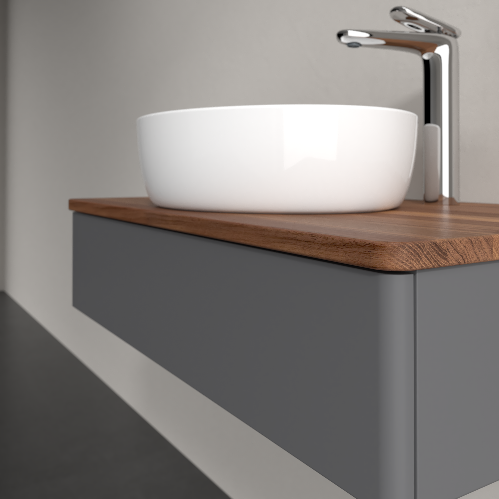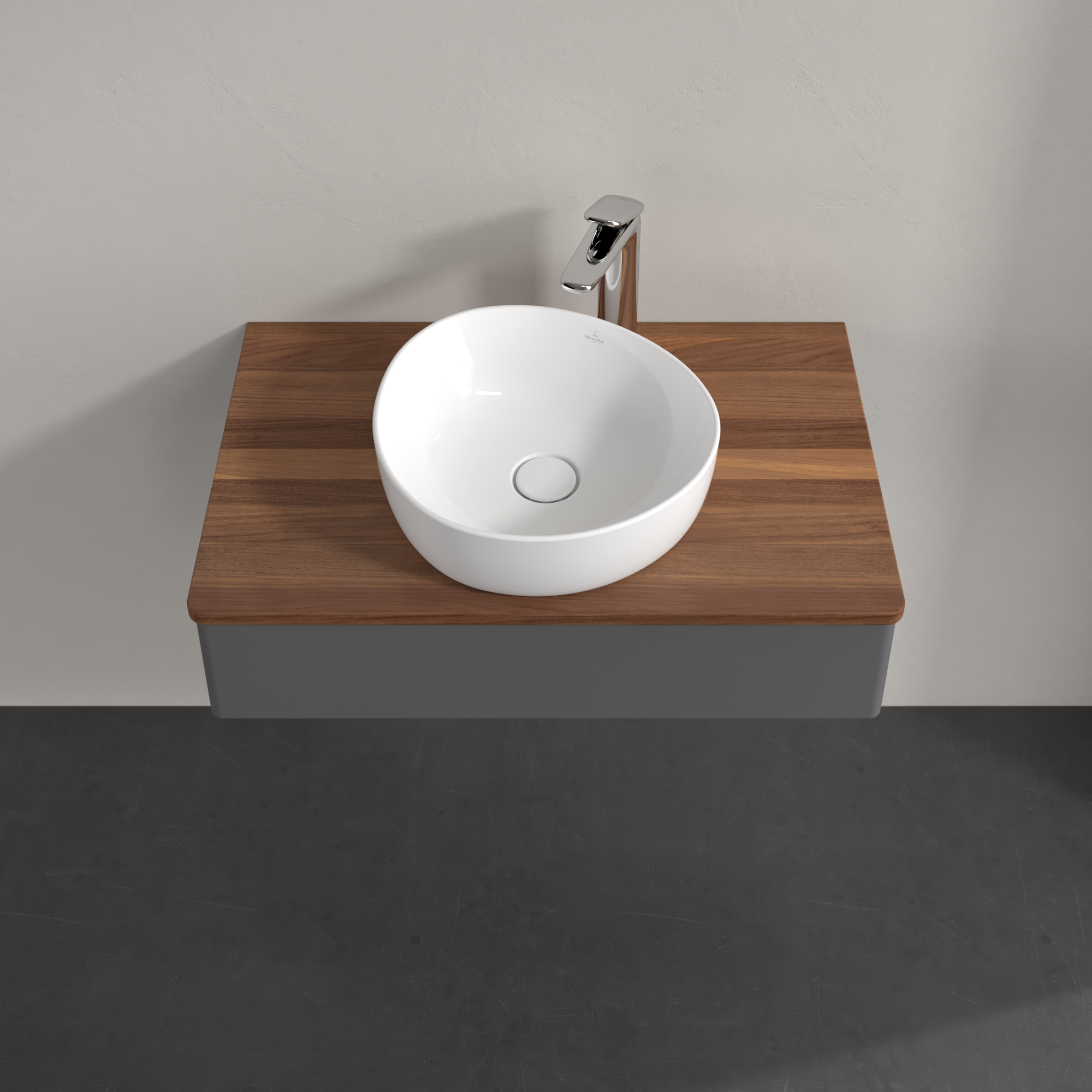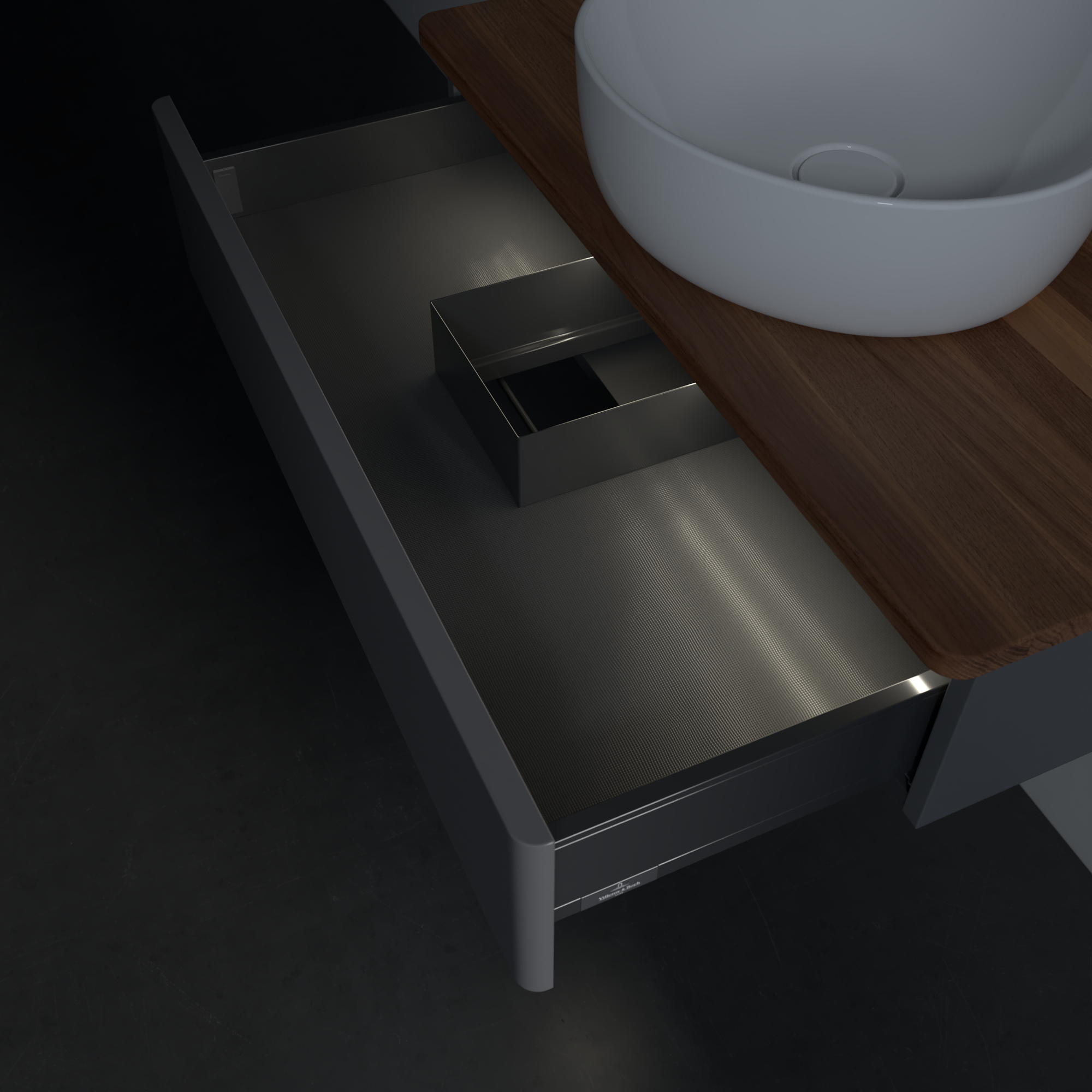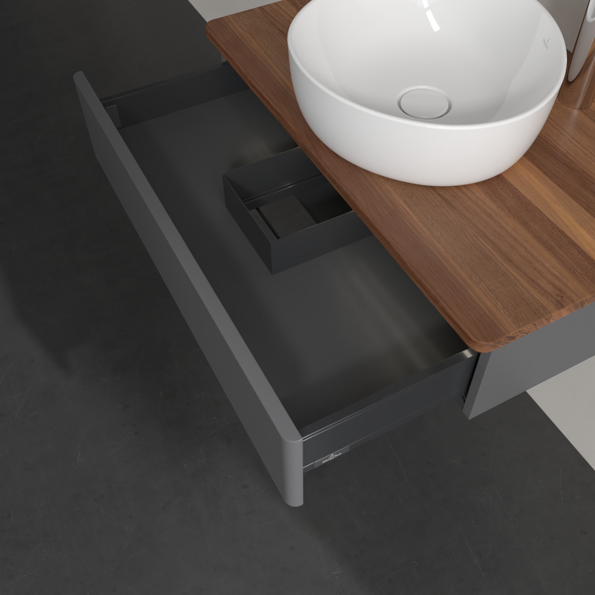 Antao Wastafelonderkast, met verlichting, 1 uittreklade, 800x190x500mm, front zonder structuur, Corpus: Anthracite Matt Lacquer, Front: Anthracite Matt Lacquer, Afdekplaat: Warm Walnut