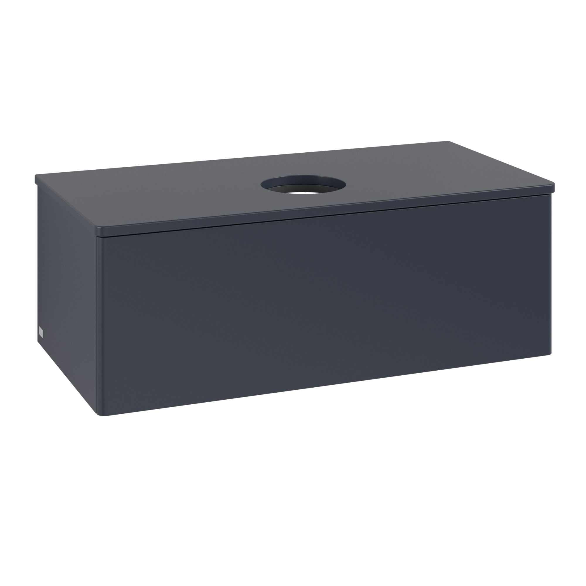 Antao Wastafelonderkast, met verlichting, 1 uittreklade, 1000x360x500mm, front zonder structuur, Corpus: Midnight Blue Matt Lacquer, Front: Midnight Blue Matt Lacquer, Afdekplaat: Midnight Blue Matt Lacquer