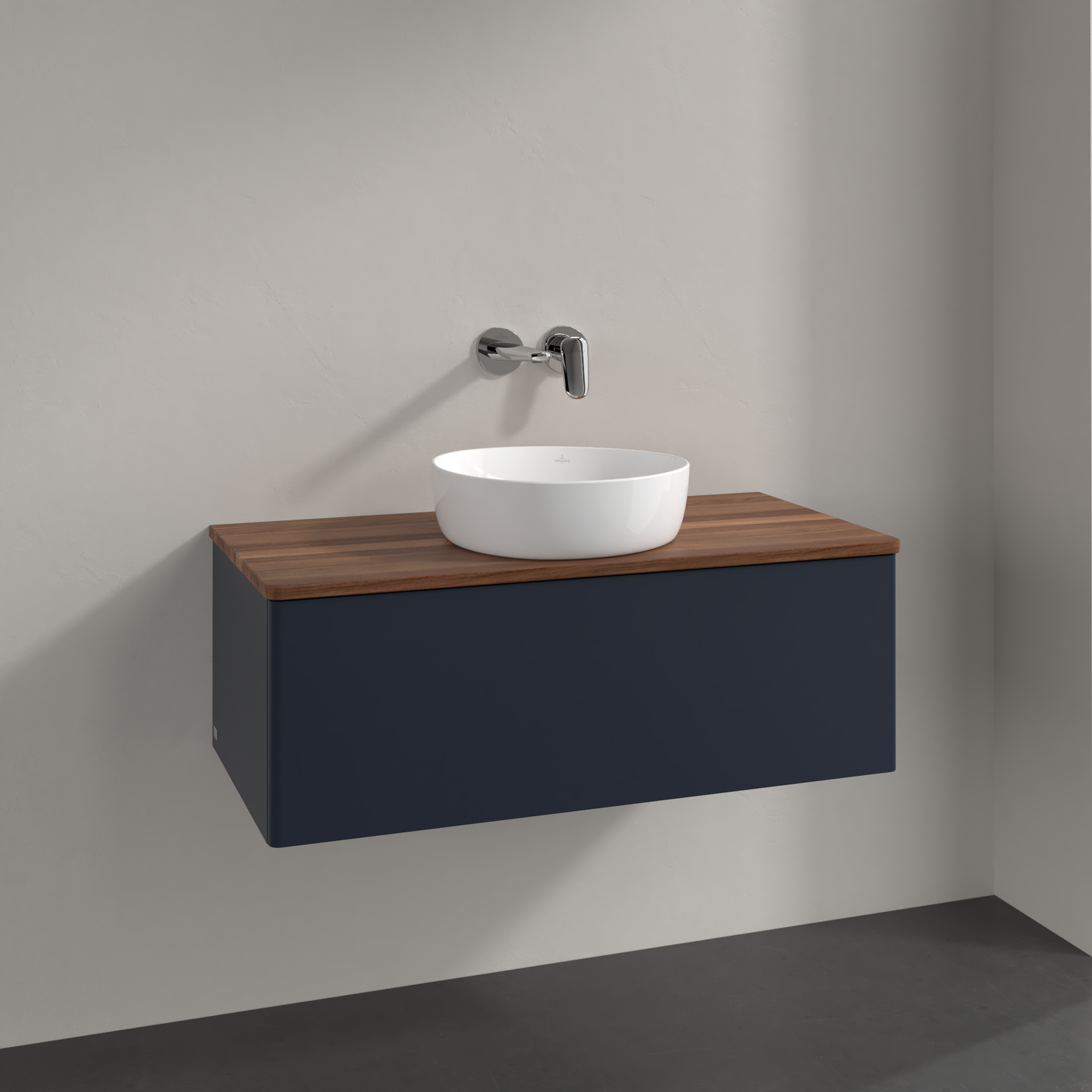Antao Wastafelonderkast, met verlichting, 1 uittreklade, 1000x360x500mm, front zonder structuur, Corpus: Midnight Blue Matt Lacquer, Front: Midnight Blue Matt Lacquer, Afdekplaat: Warm Walnut