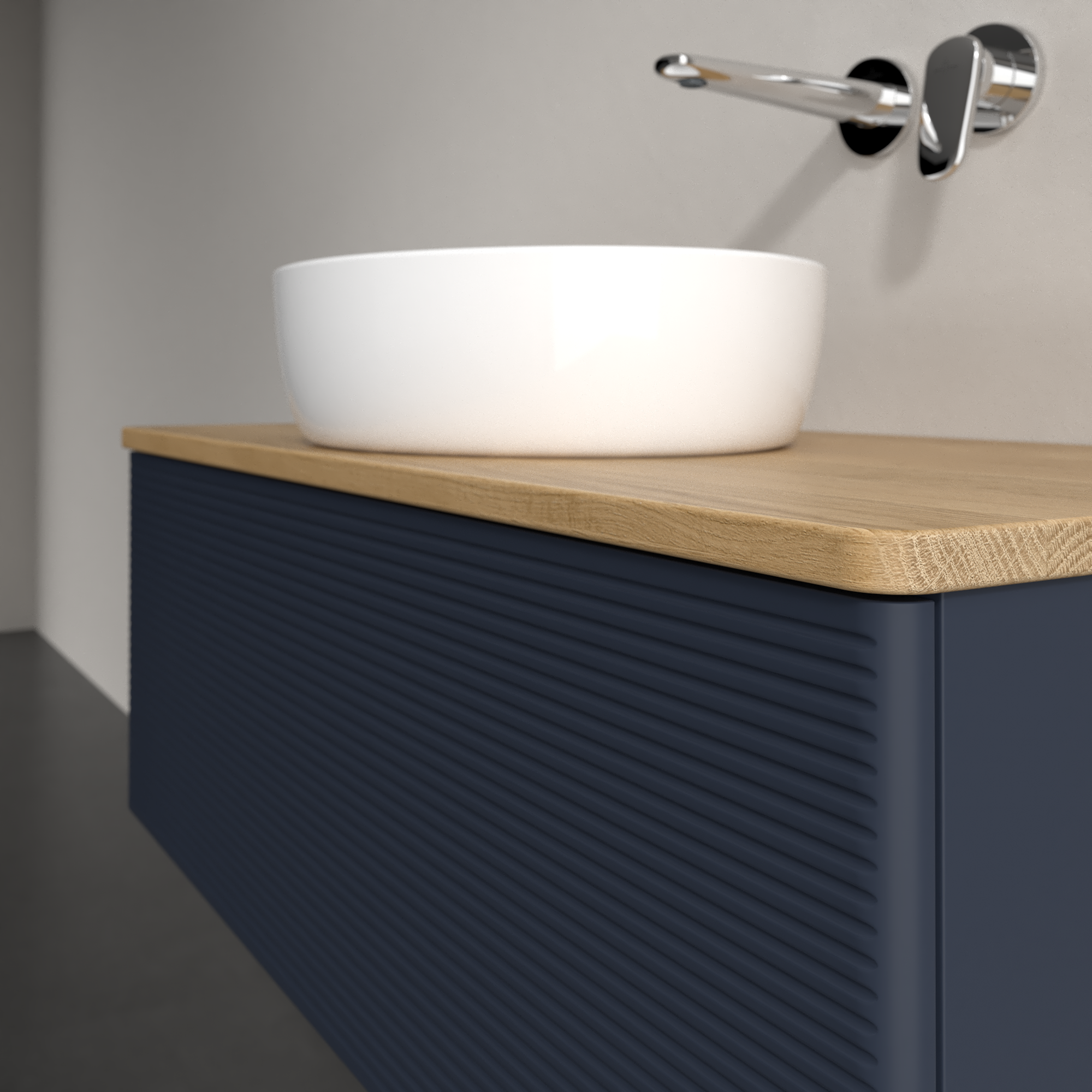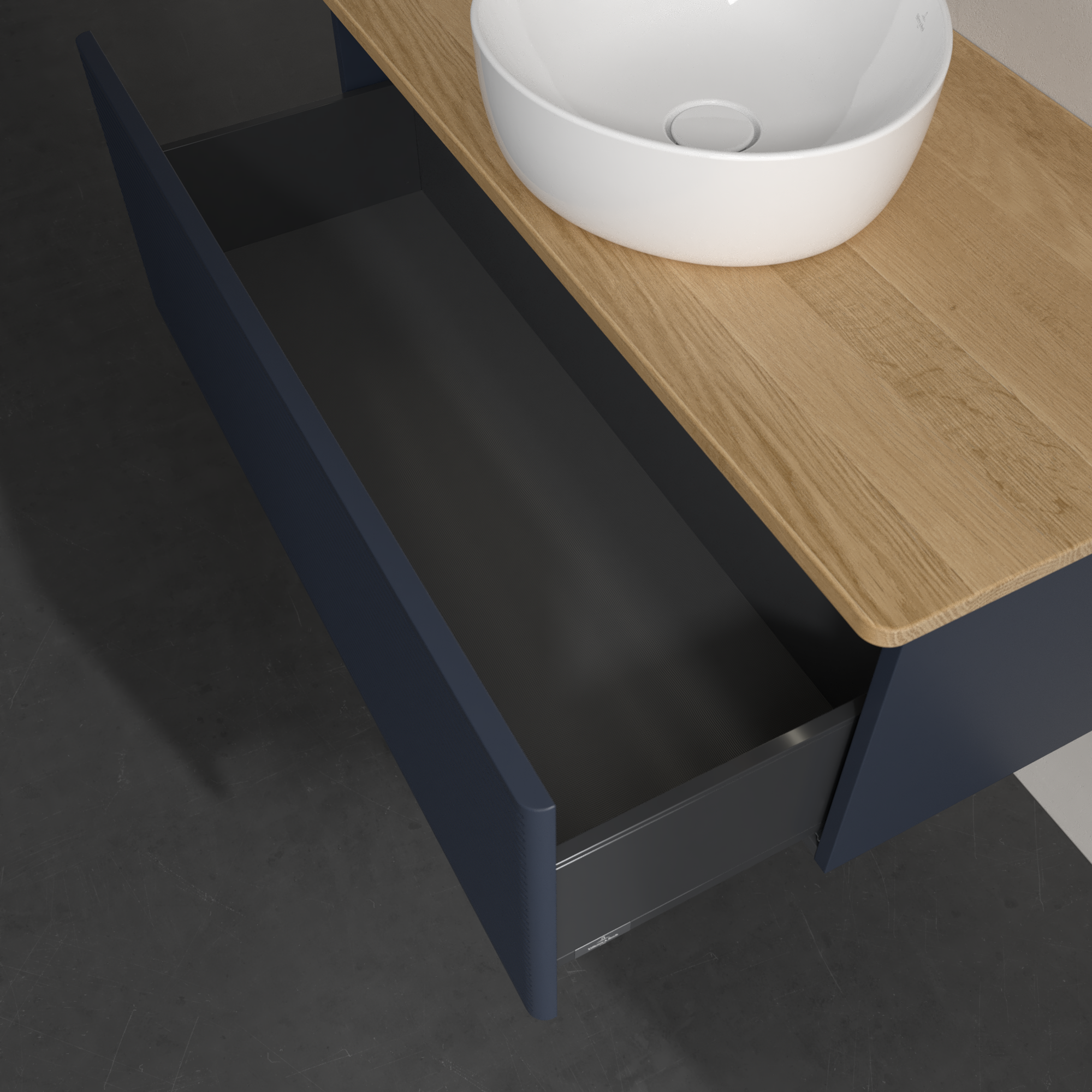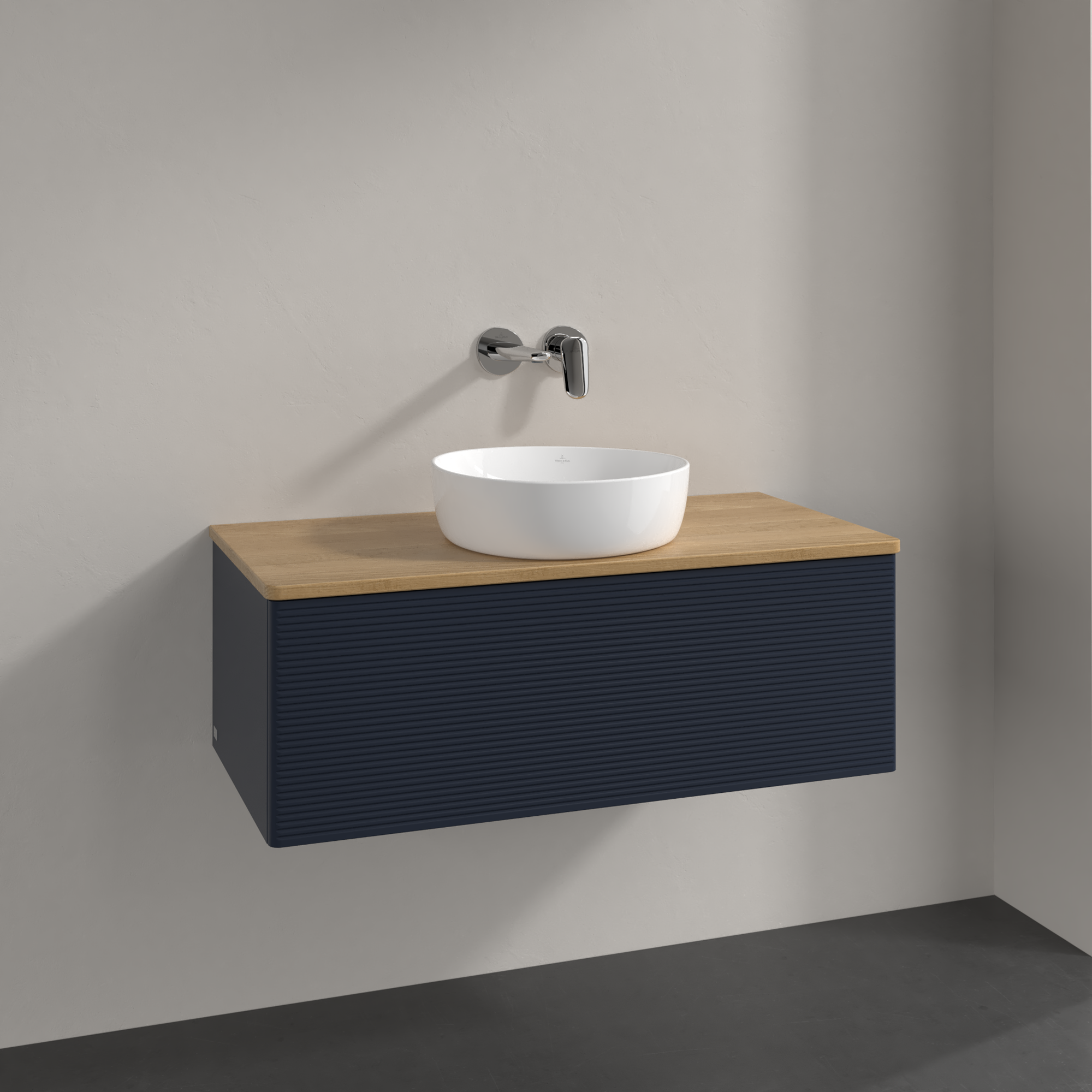 Antao Wastafelonderkast, met verlichting, 1 uittreklade, 1000x360x500mm, front met structuur, Corpus: Midnight Blue Matt Lacquer, Front: Midnight Blue Matt Lacquer, Afdekplaat: Honey Oak