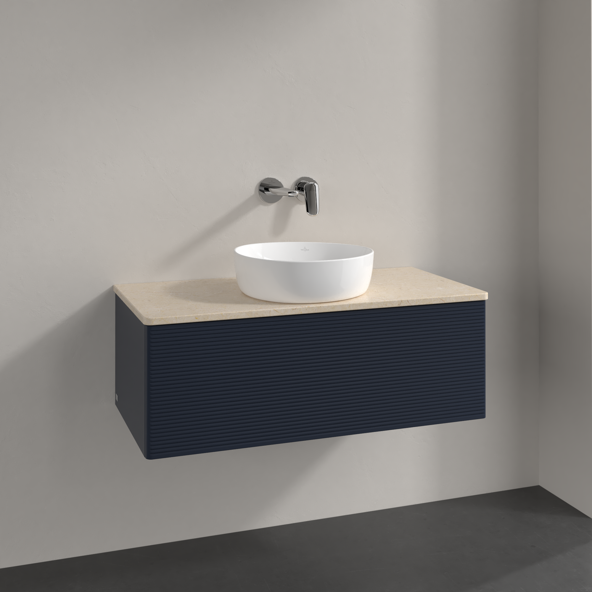 Antao Wastafelonderkast, met verlichting, 1 uittreklade, 1000x360x500mm, front met structuur, Corpus: Midnight Blue Matt Lacquer, Front: Midnight Blue Matt Lacquer, Afdekplaat: Botticino