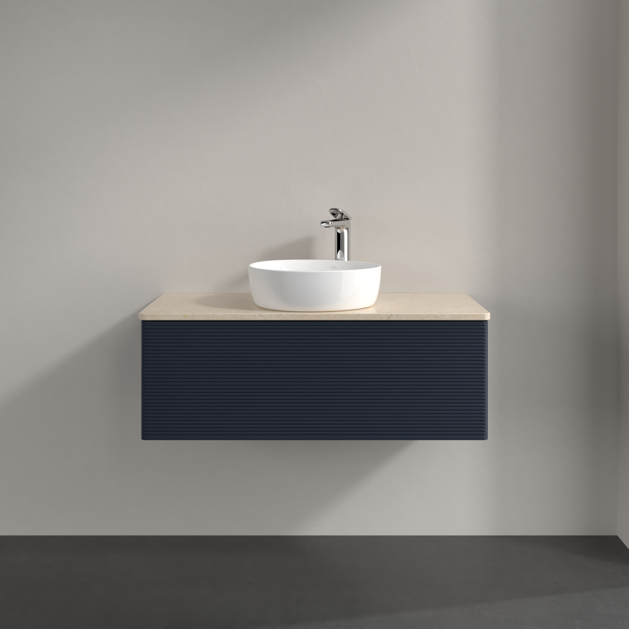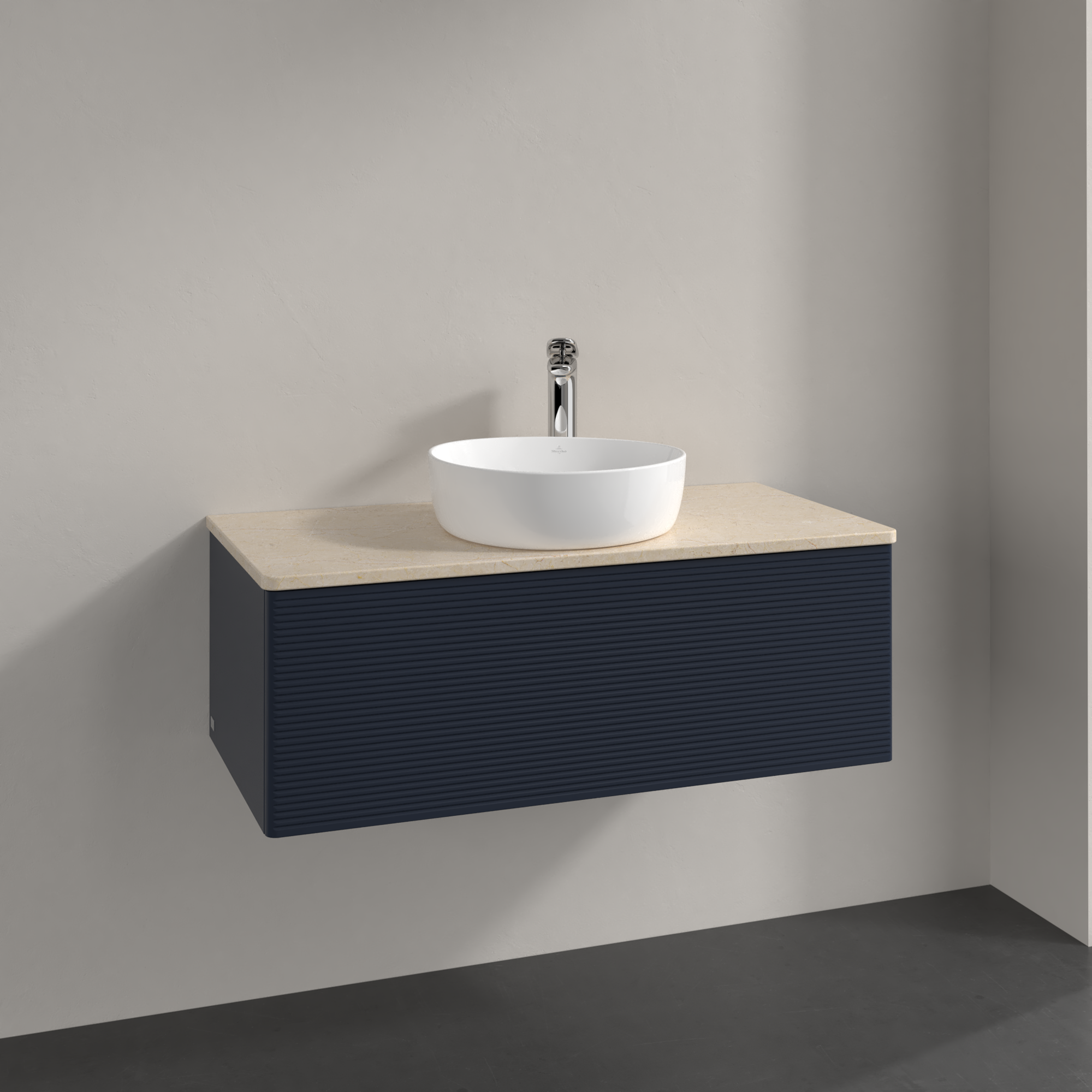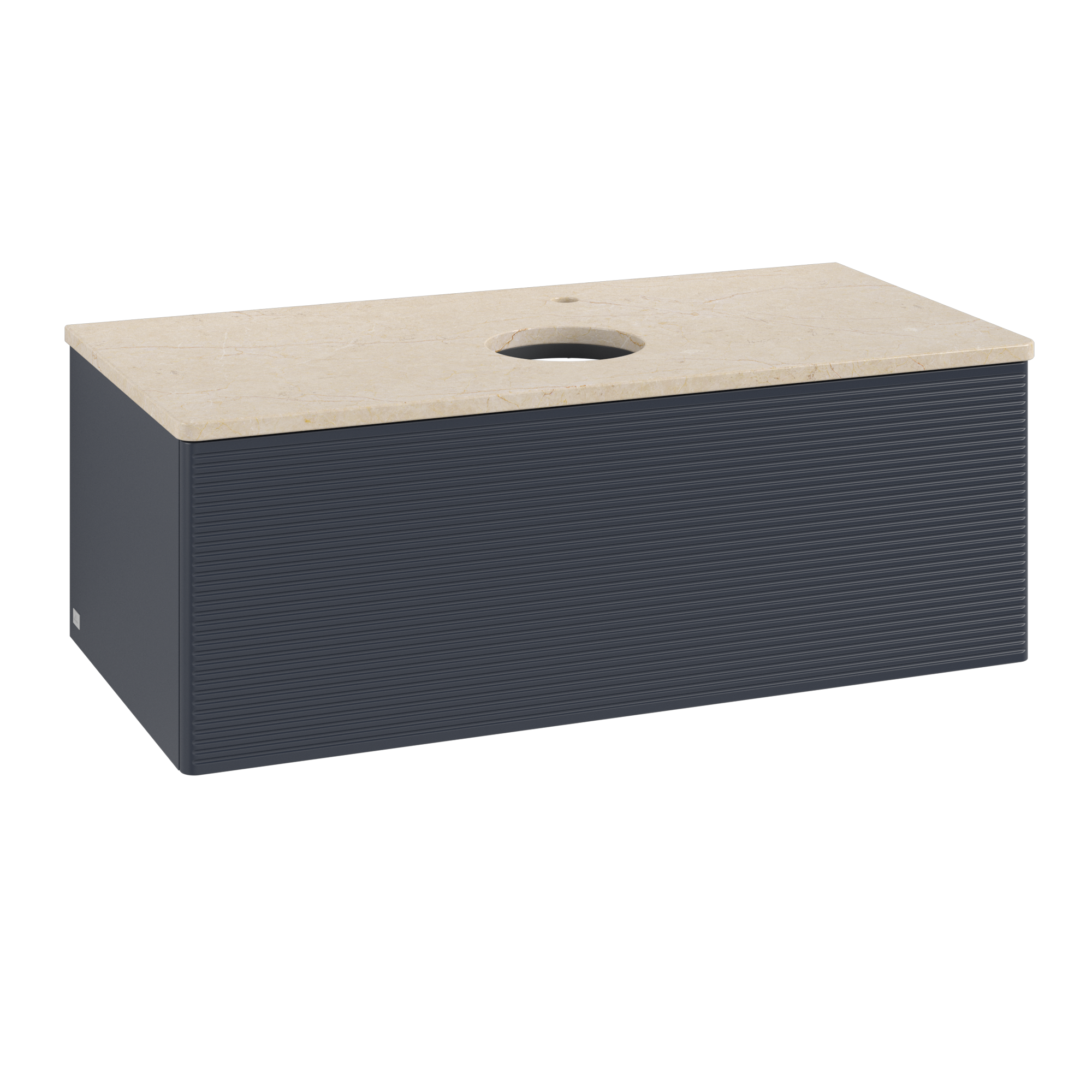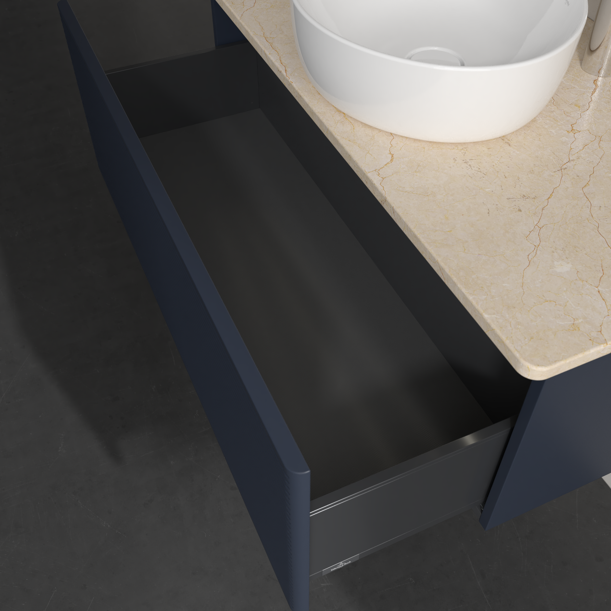 Antao Wastafelonderkast, met verlichting, 1 uittreklade, 1000x360x500mm, front met structuur, Corpus: Midnight Blue Matt Lacquer, Front: Midnight Blue Matt Lacquer, Afdekplaat: Botticino