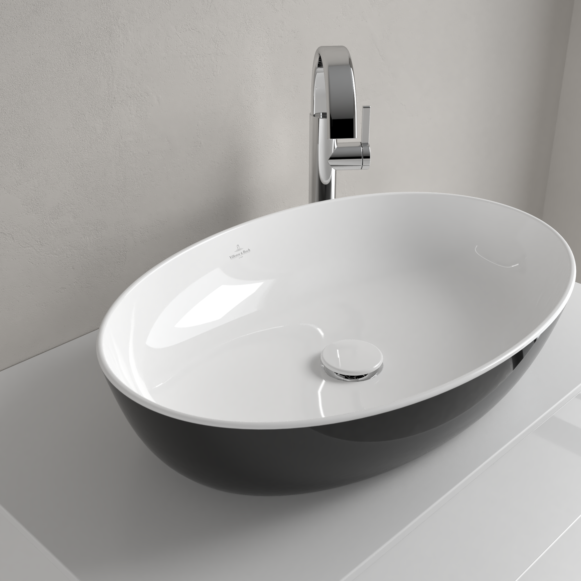 Artis Opzetwastafel, 610x410x130mm, zonder overloop, Coal Black