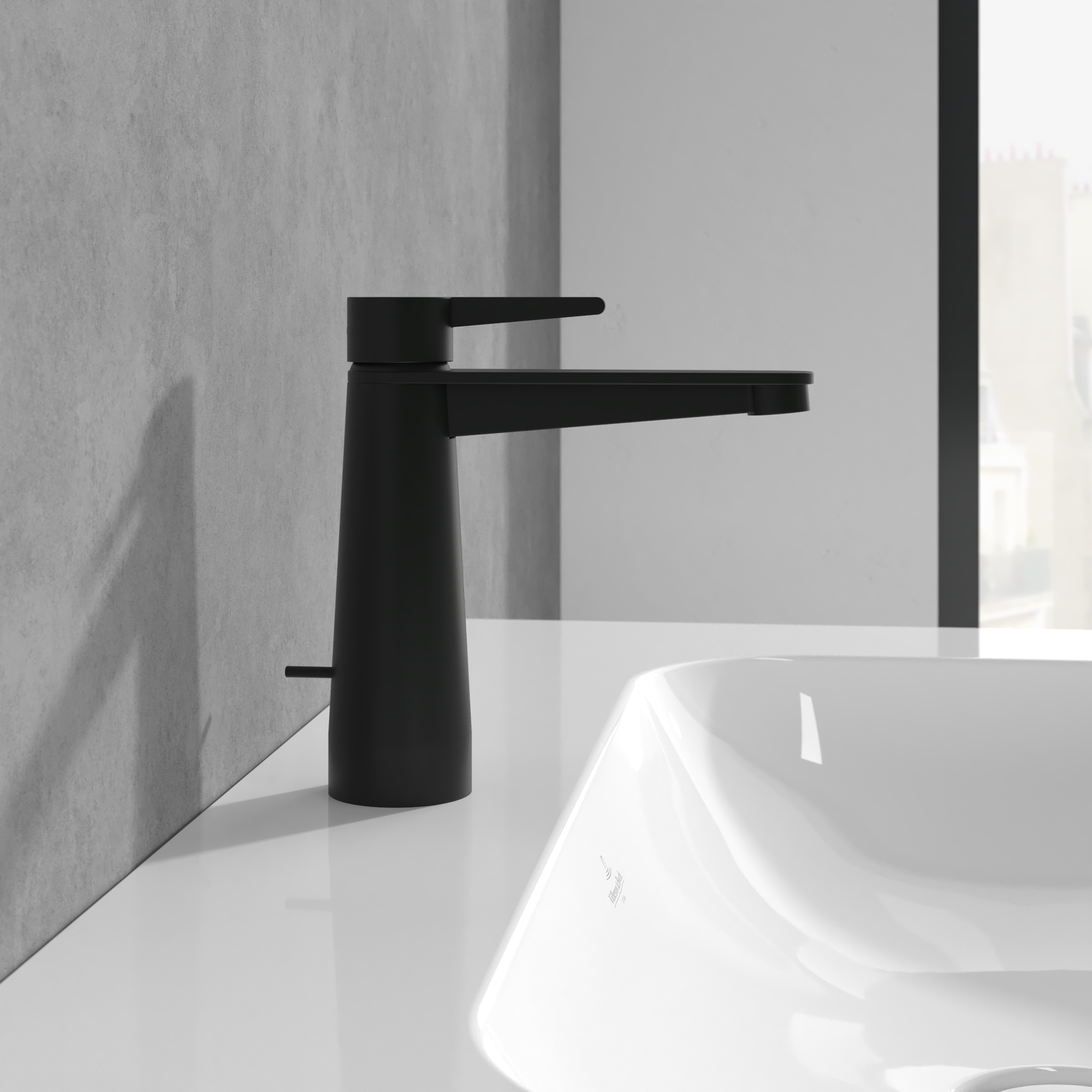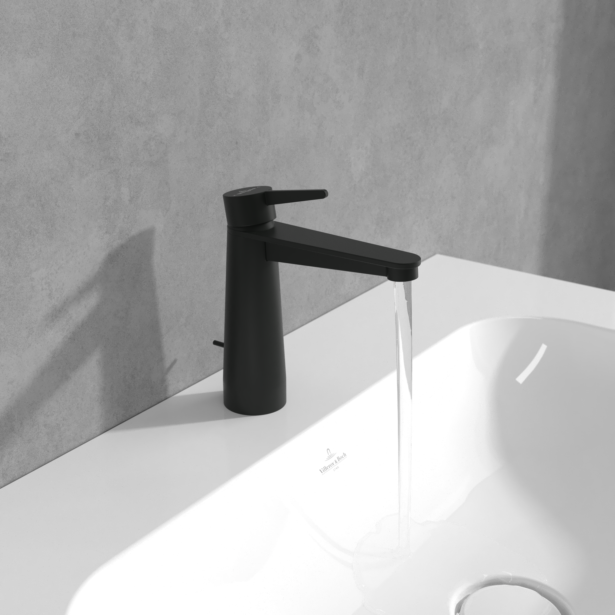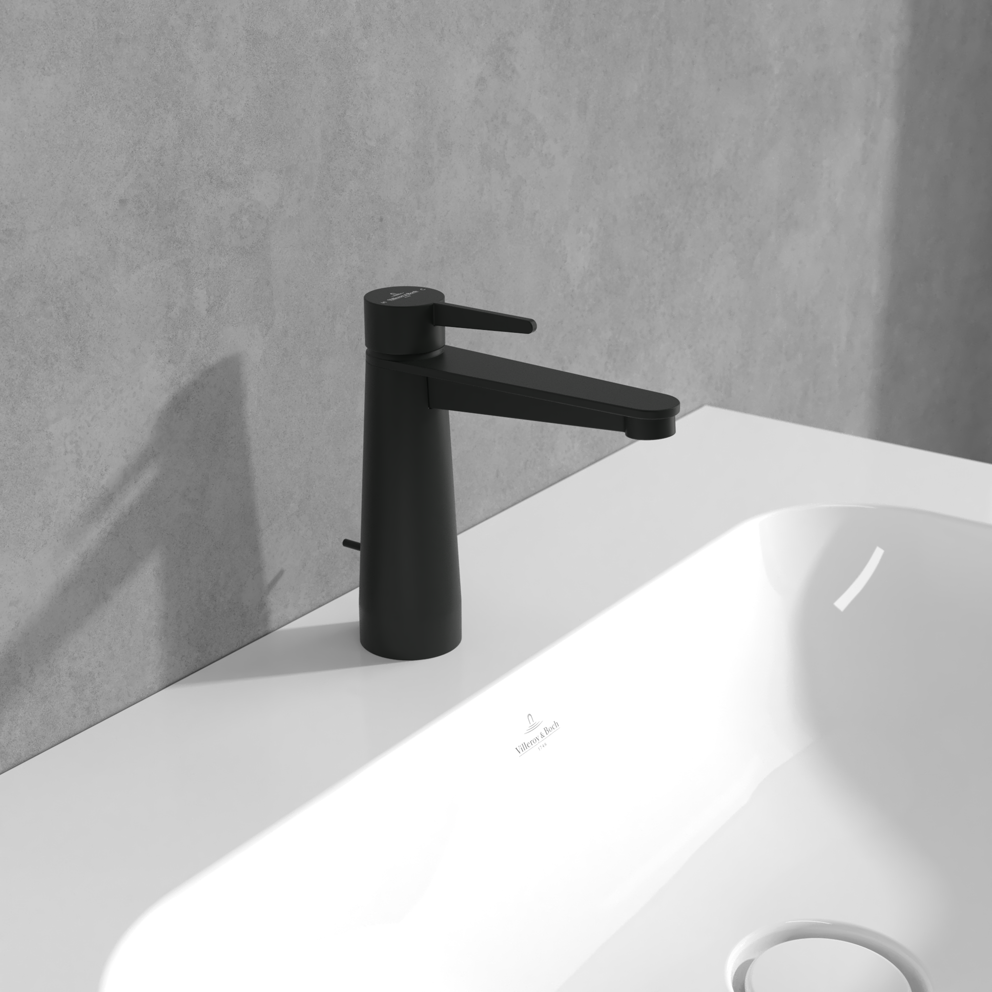 Conum Eengreeps wastafelkraan, Met trekstang-afvoergarnituur, Matt Black