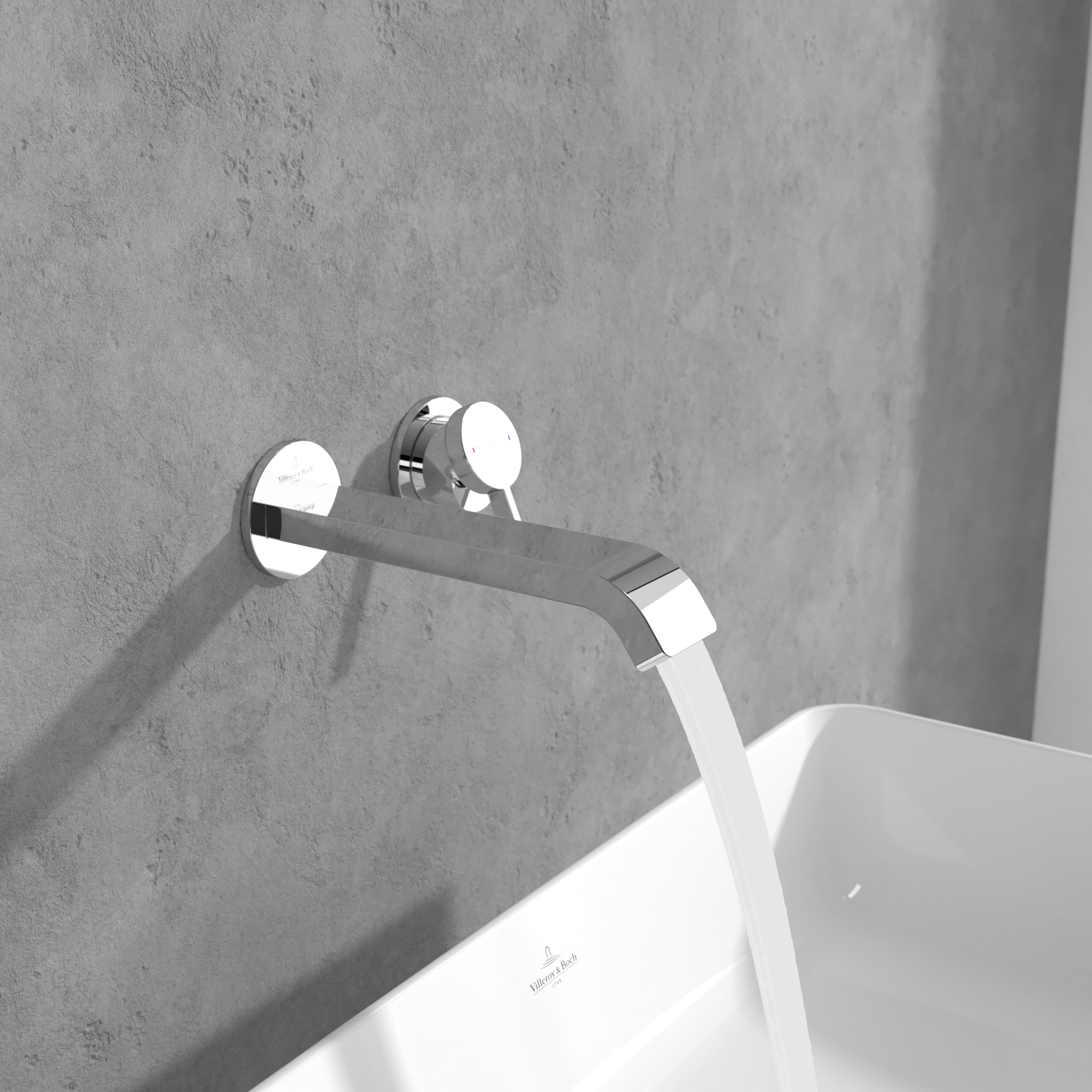 de hendel voor de koudwater- en warmwaterregeling beweegt 45° naar links resp. rechts
