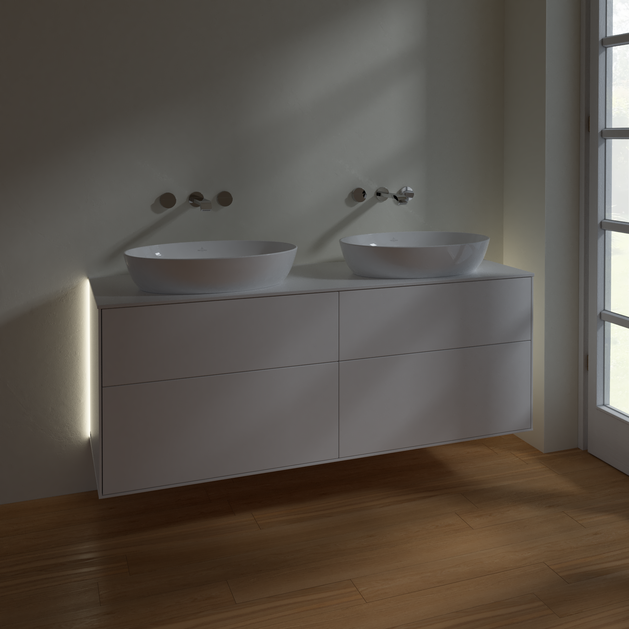 Finion Wastafelonderkast, met verlichting, 4 uittrekladen, 1600x603x501mm, Corpus: White Matt Lacquer, Front: White Matt Lacquer, Afdekplaat: Glass White Matt