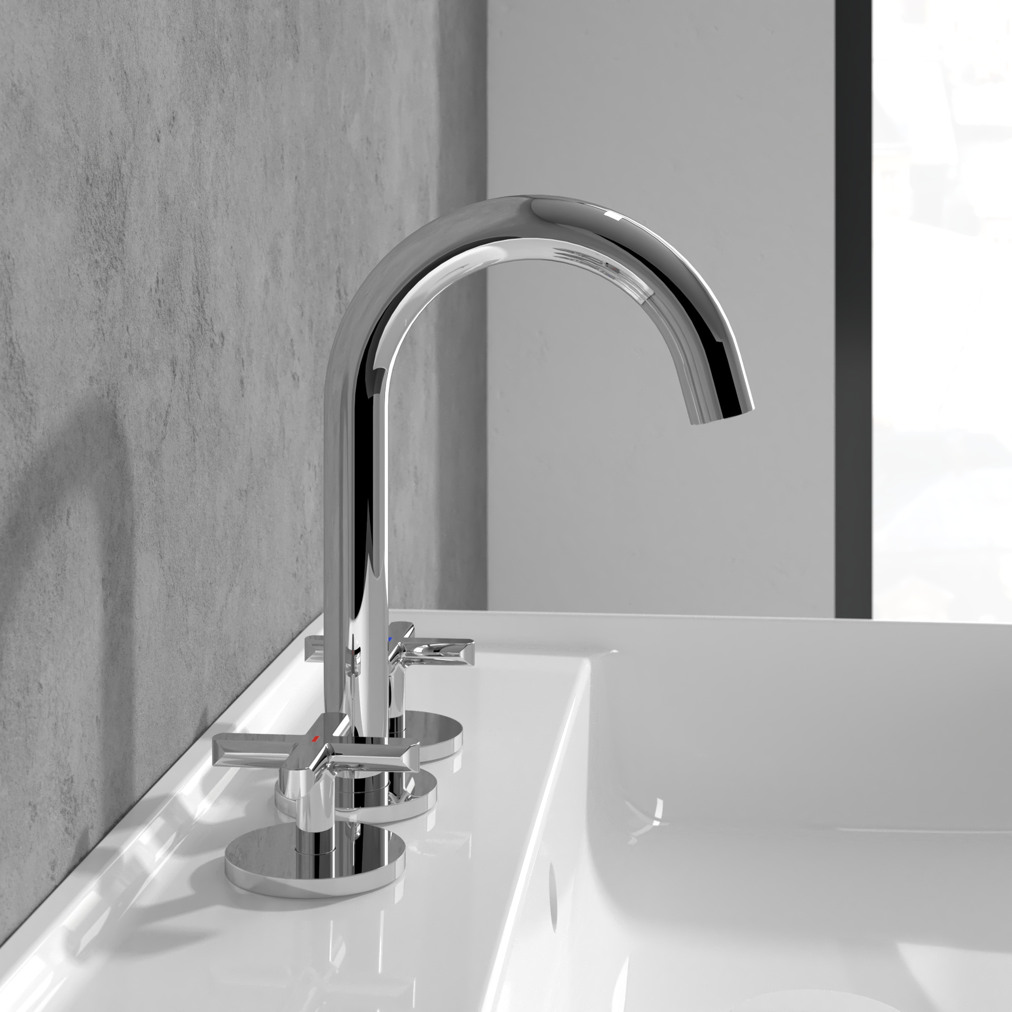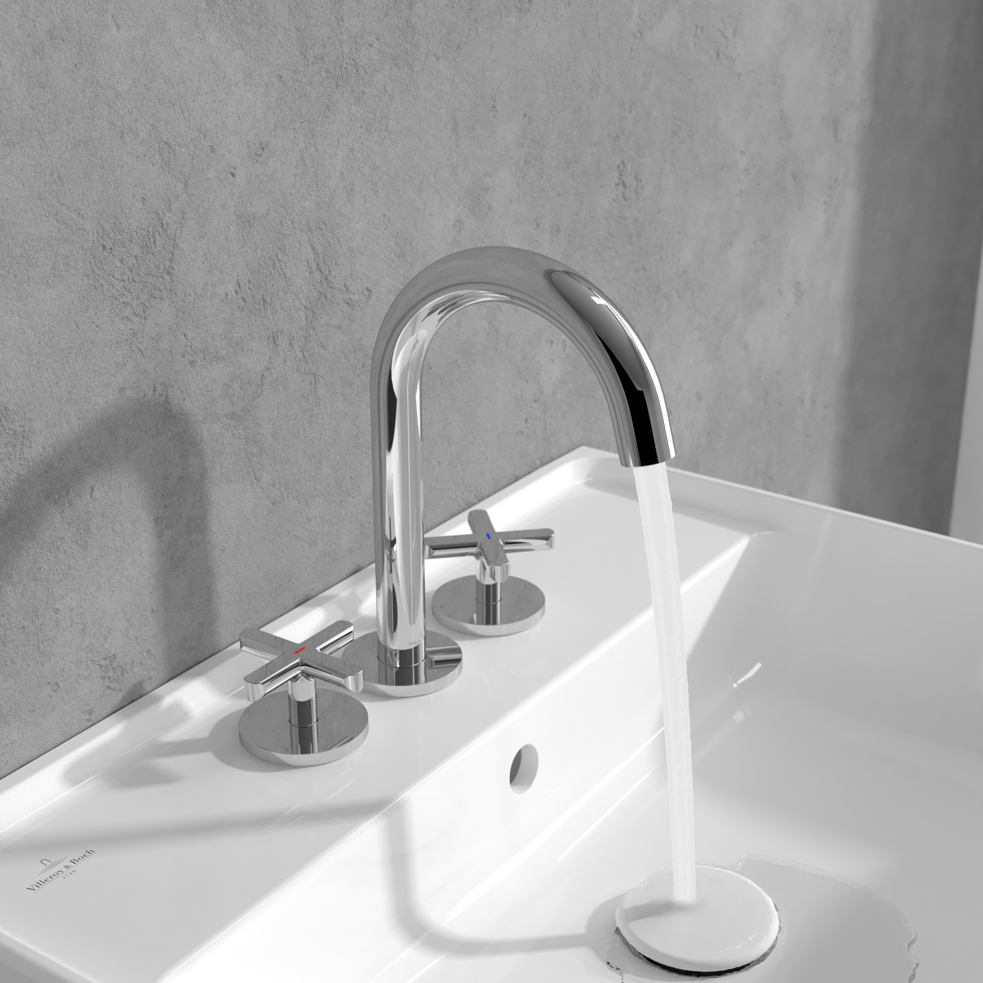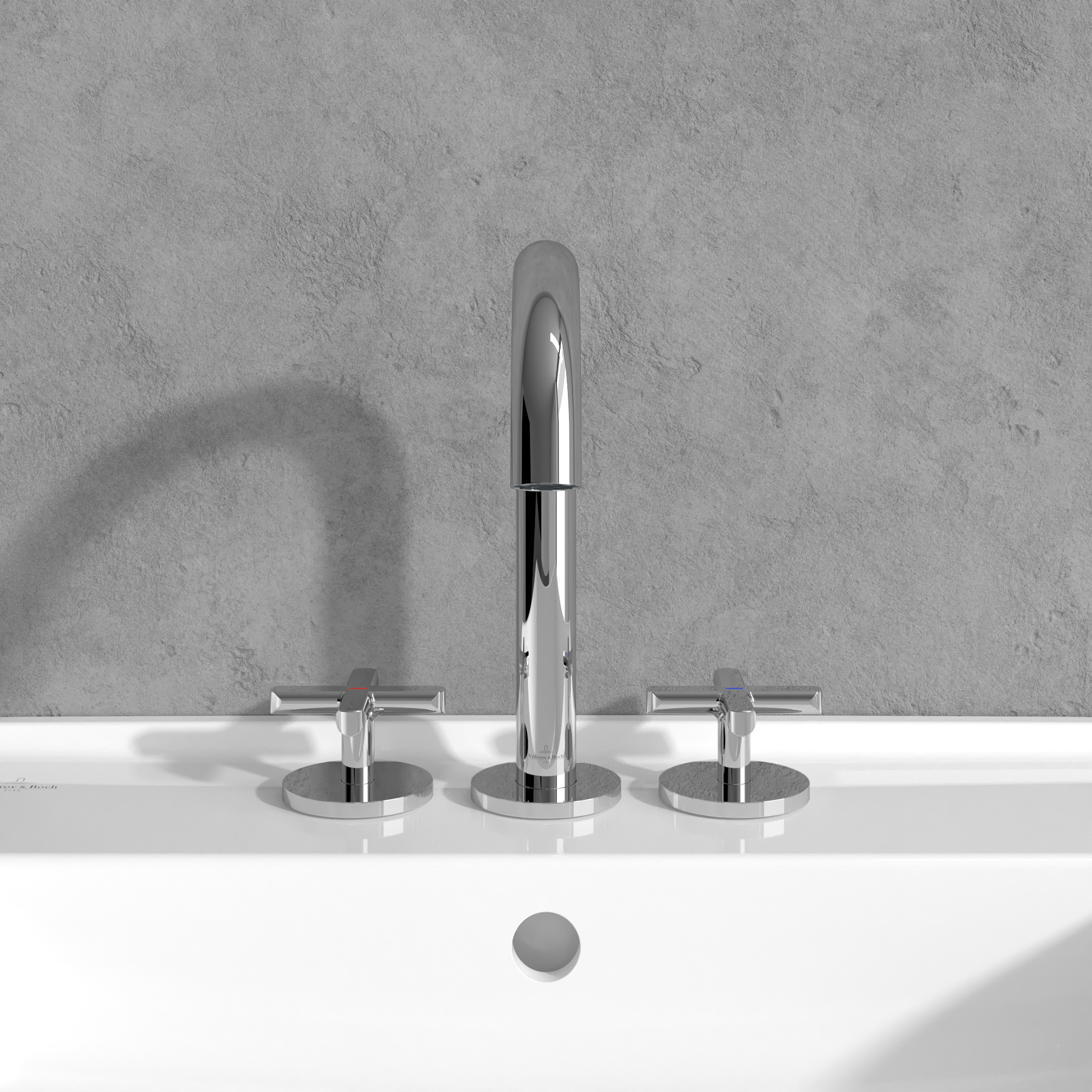 Loop & Friends Driegats wastafelkraan, Zonder Push-Open afvoergarnituur, Chrome