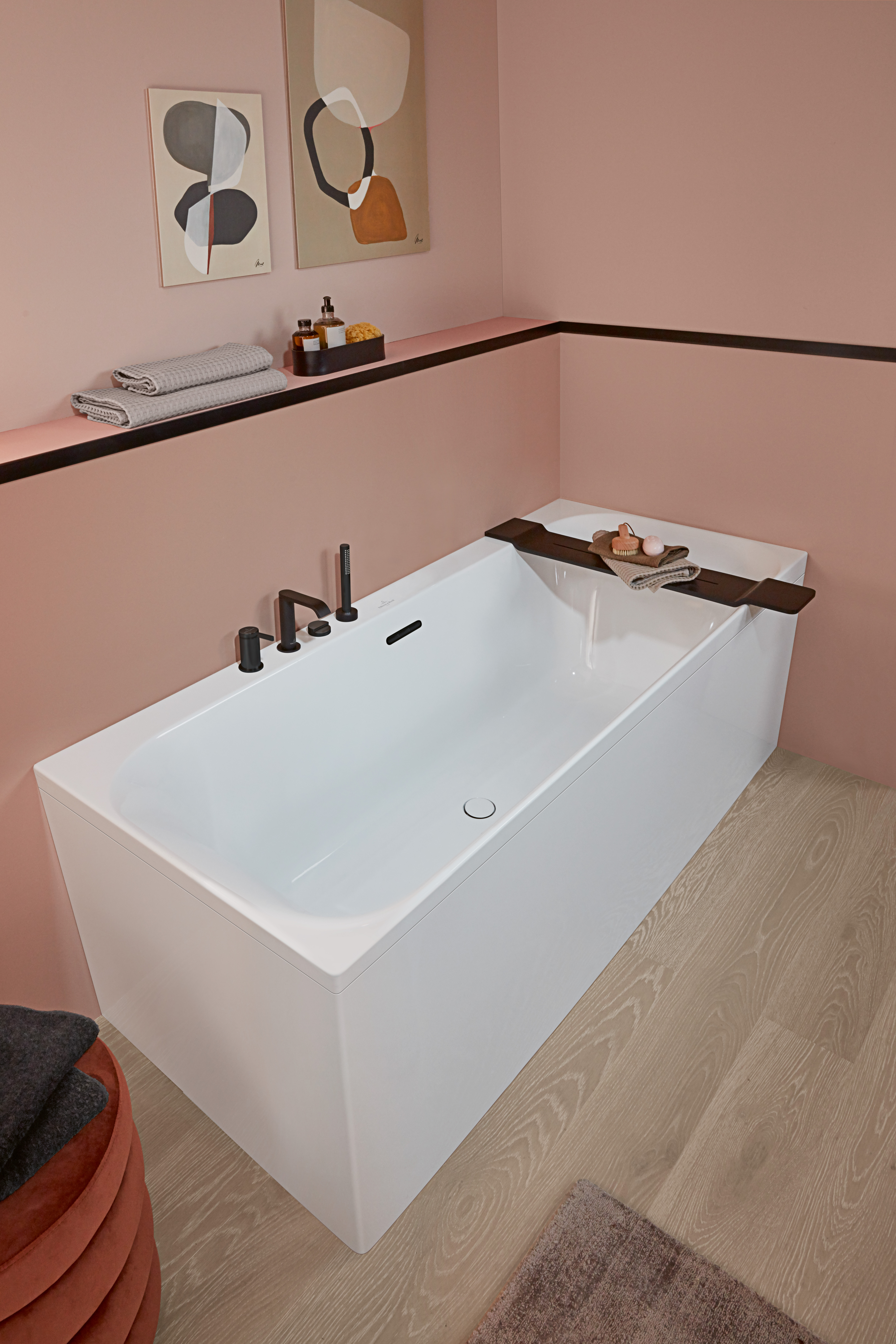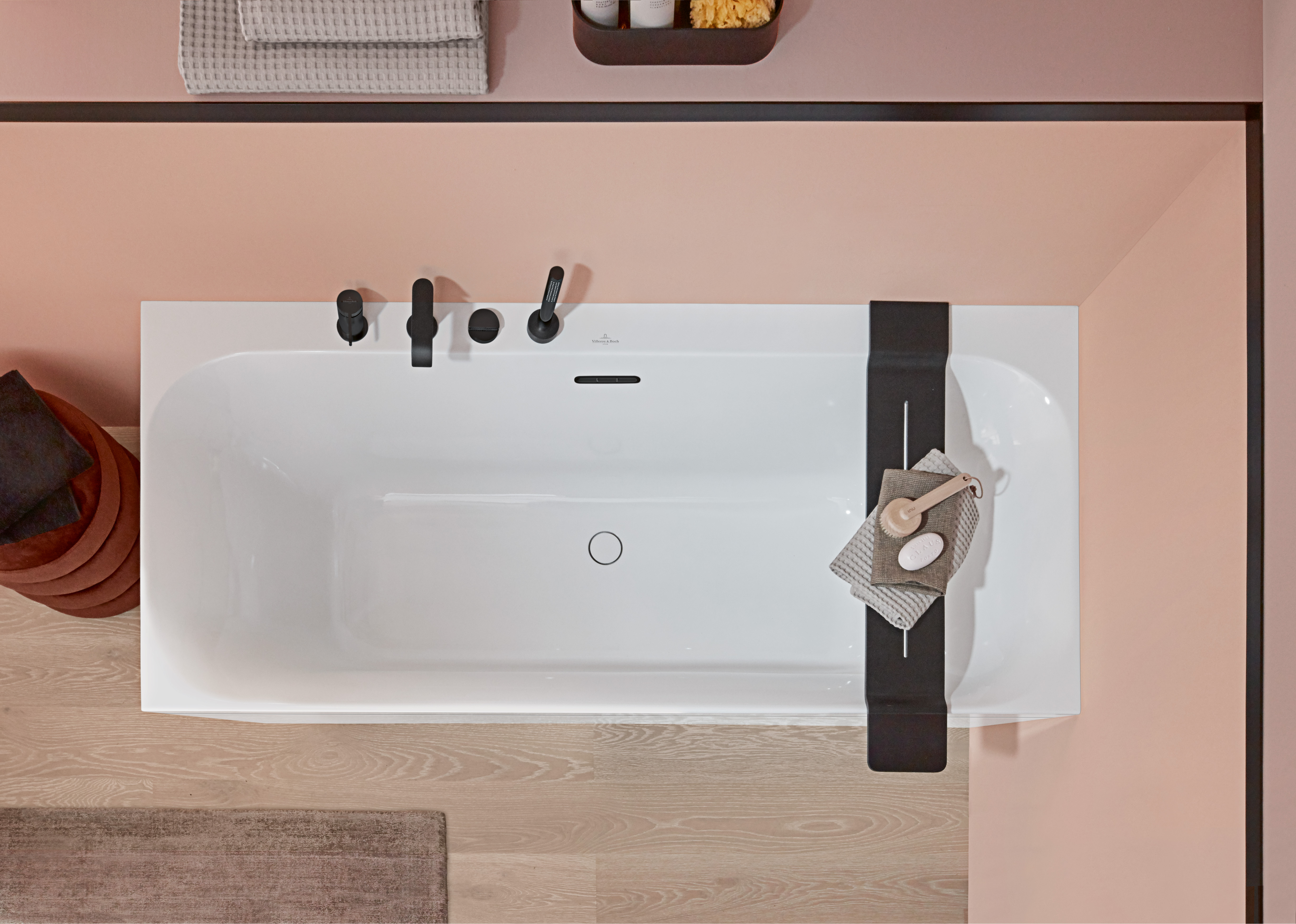 De modelspecifieke afvoer- en overloopgarnituur van wordt niet meegeleverd en moet worden meebesteld. De afvoer is altijd in badkleur.