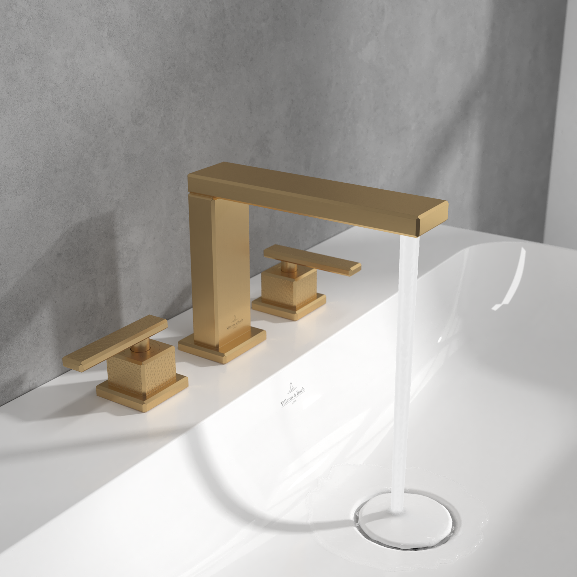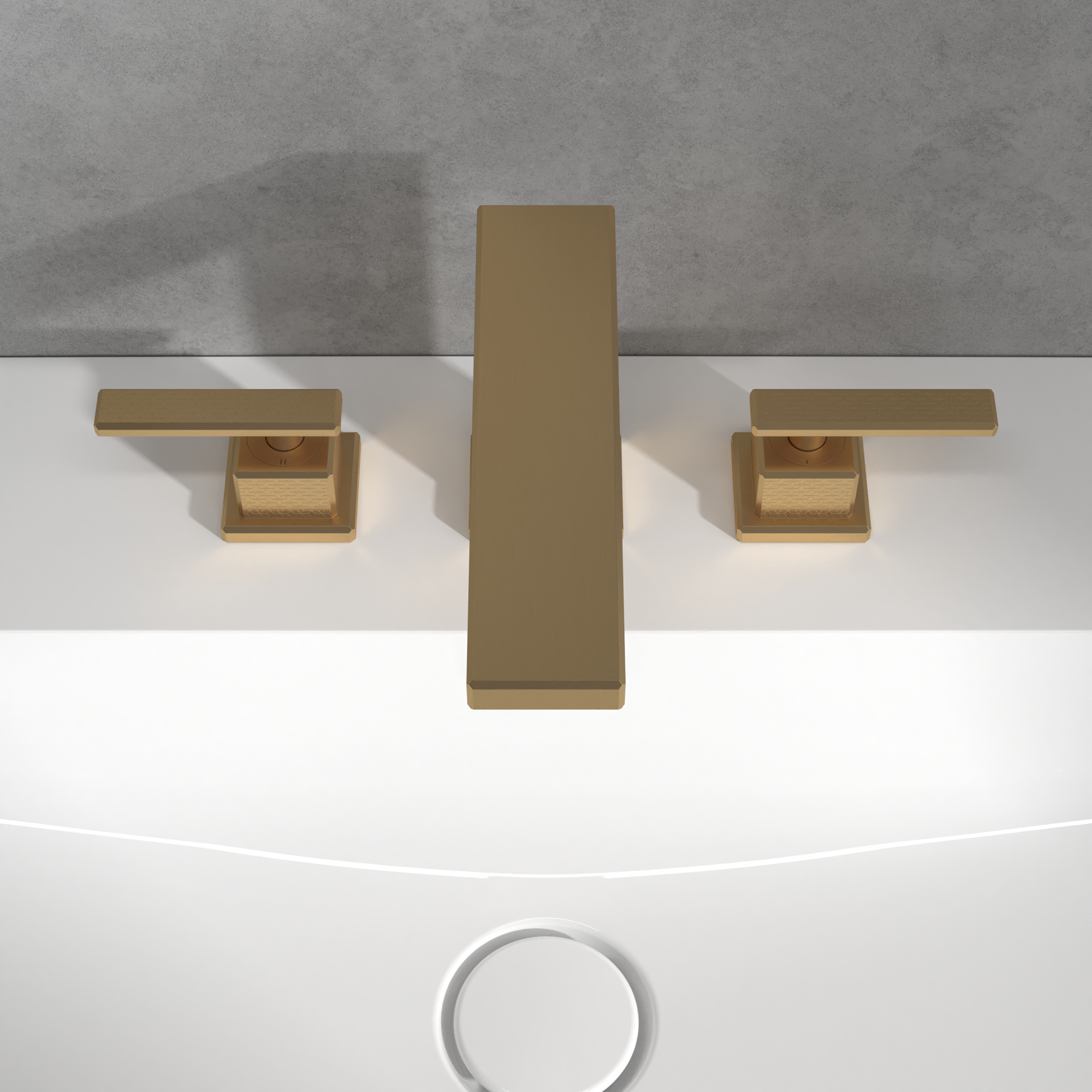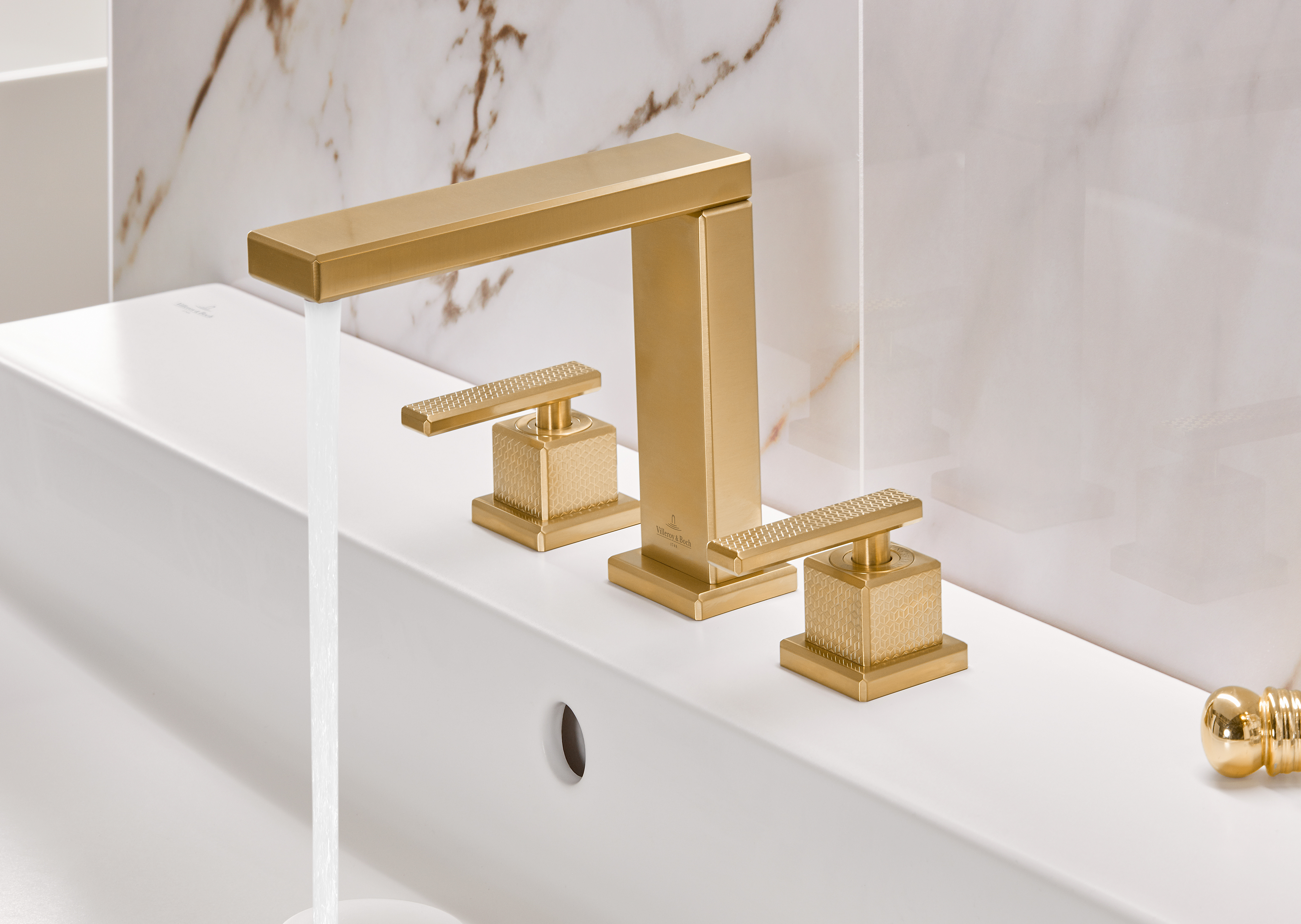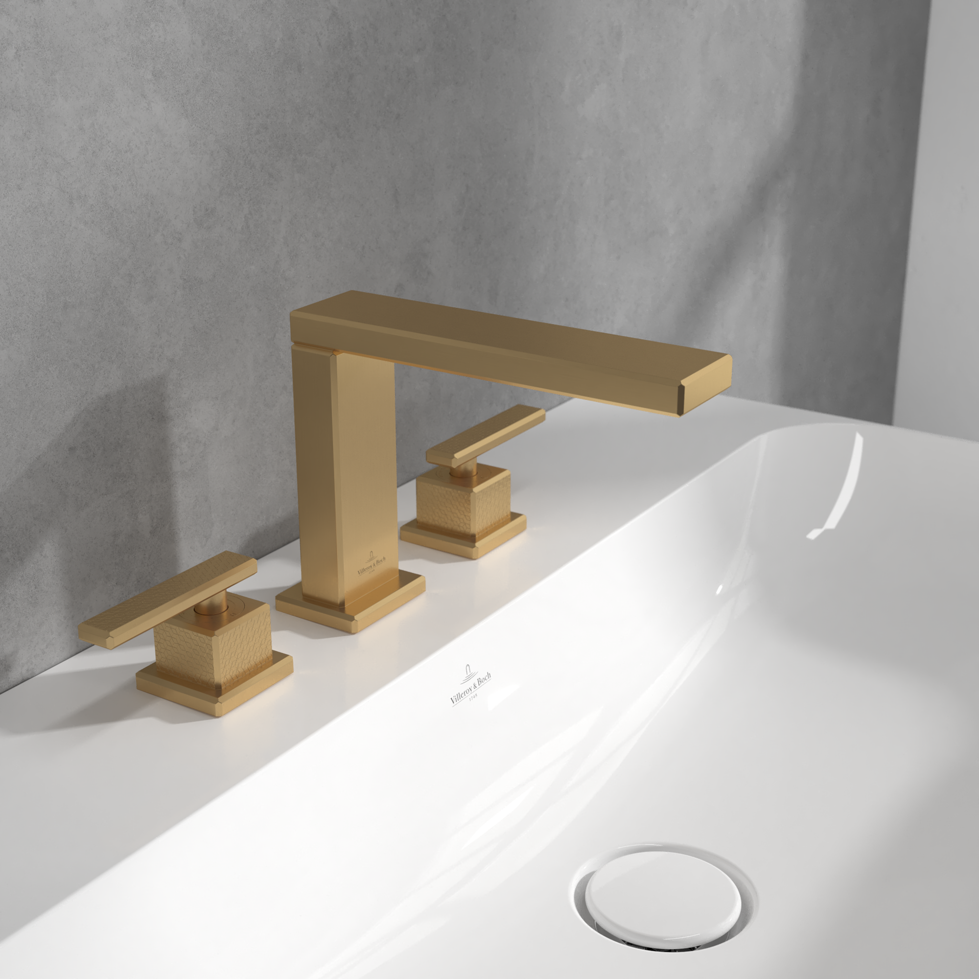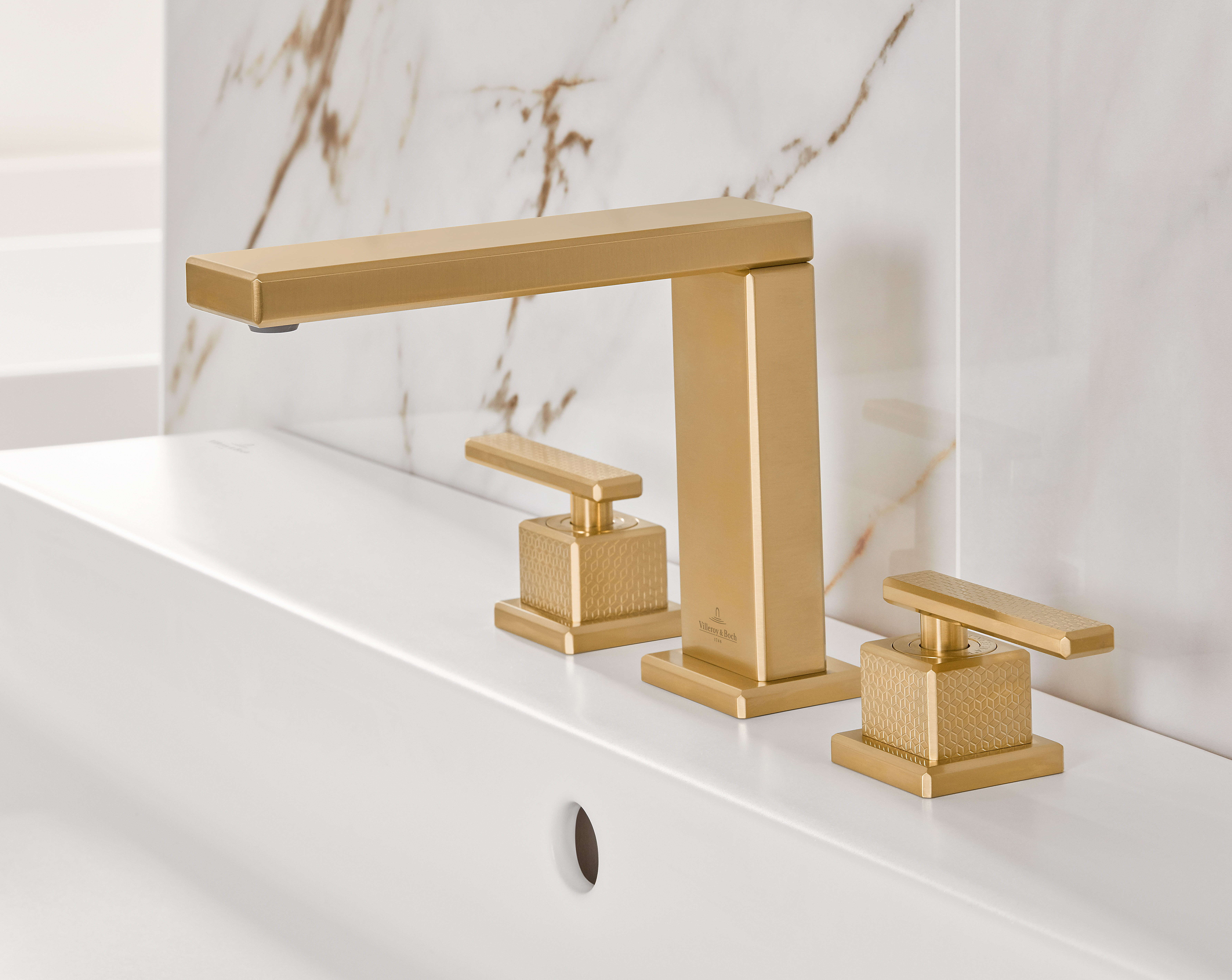 Mettlach Driegats wastafelkraan, Zonder Push-Open afvoergarnituur, Brushed Gold