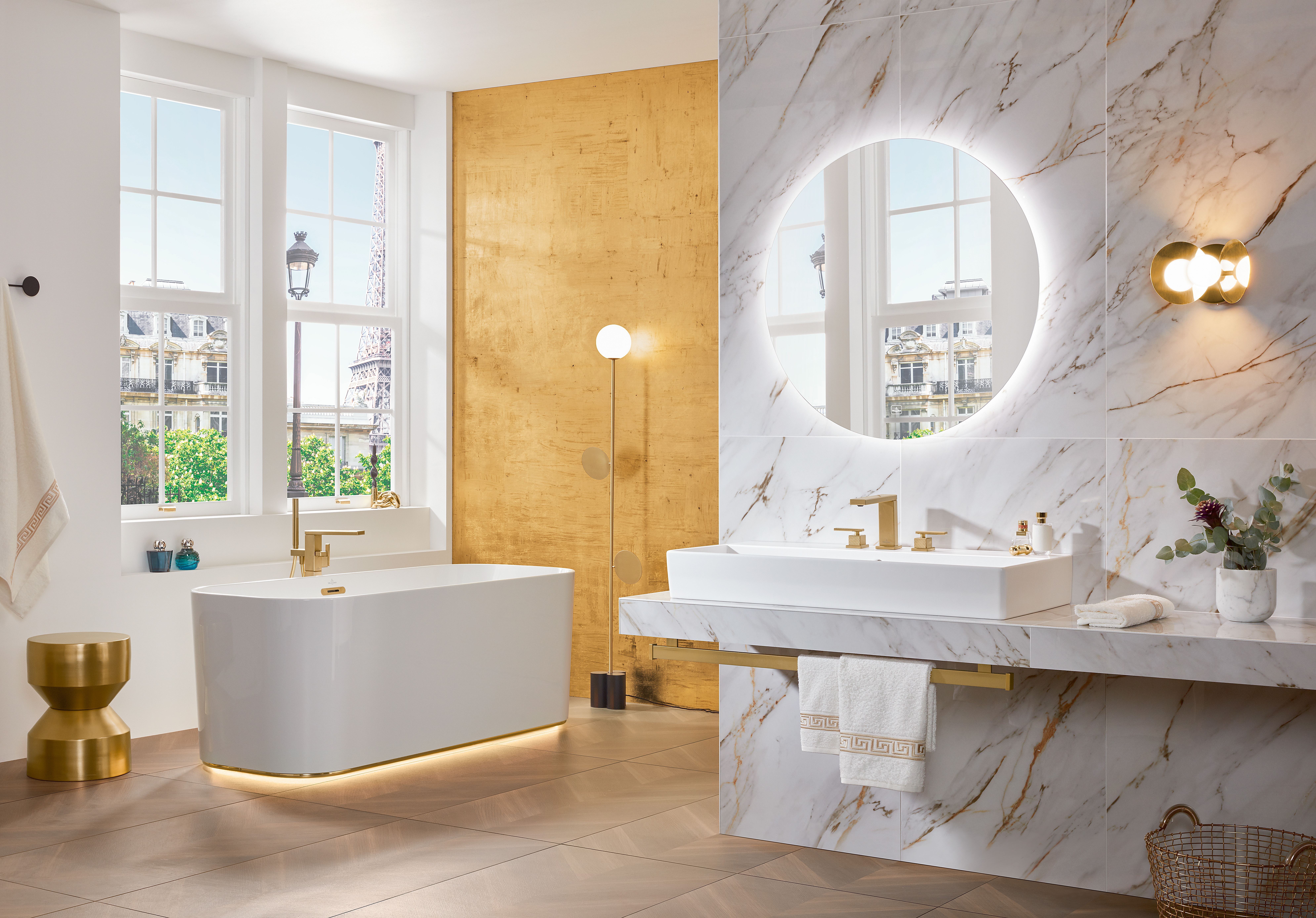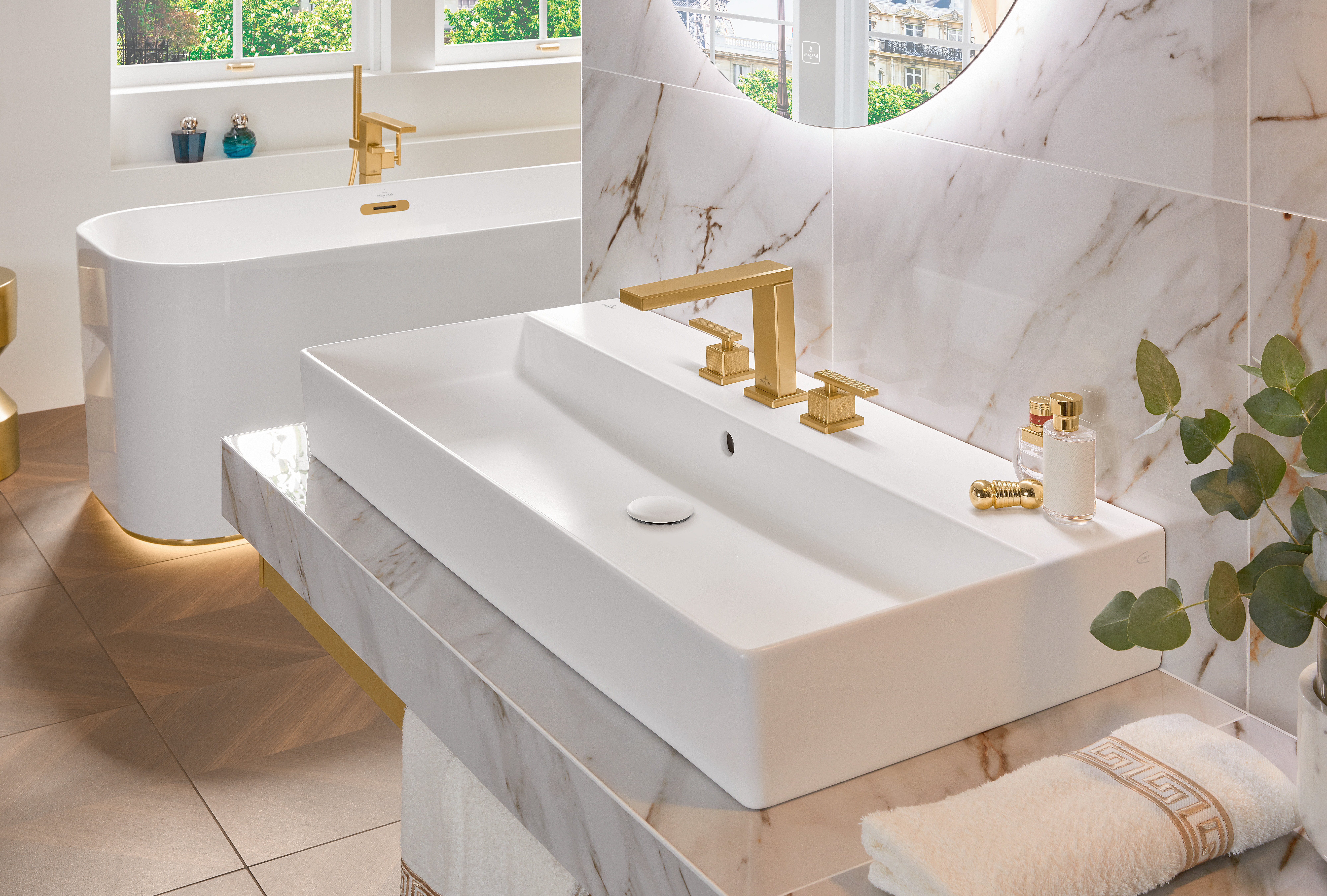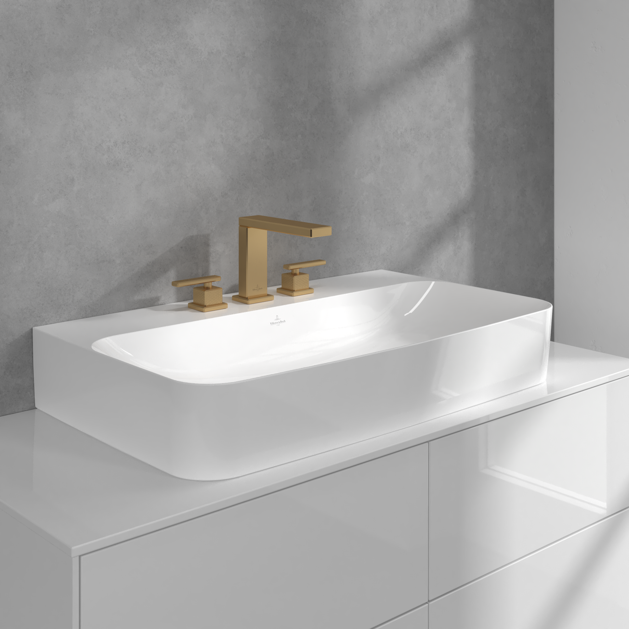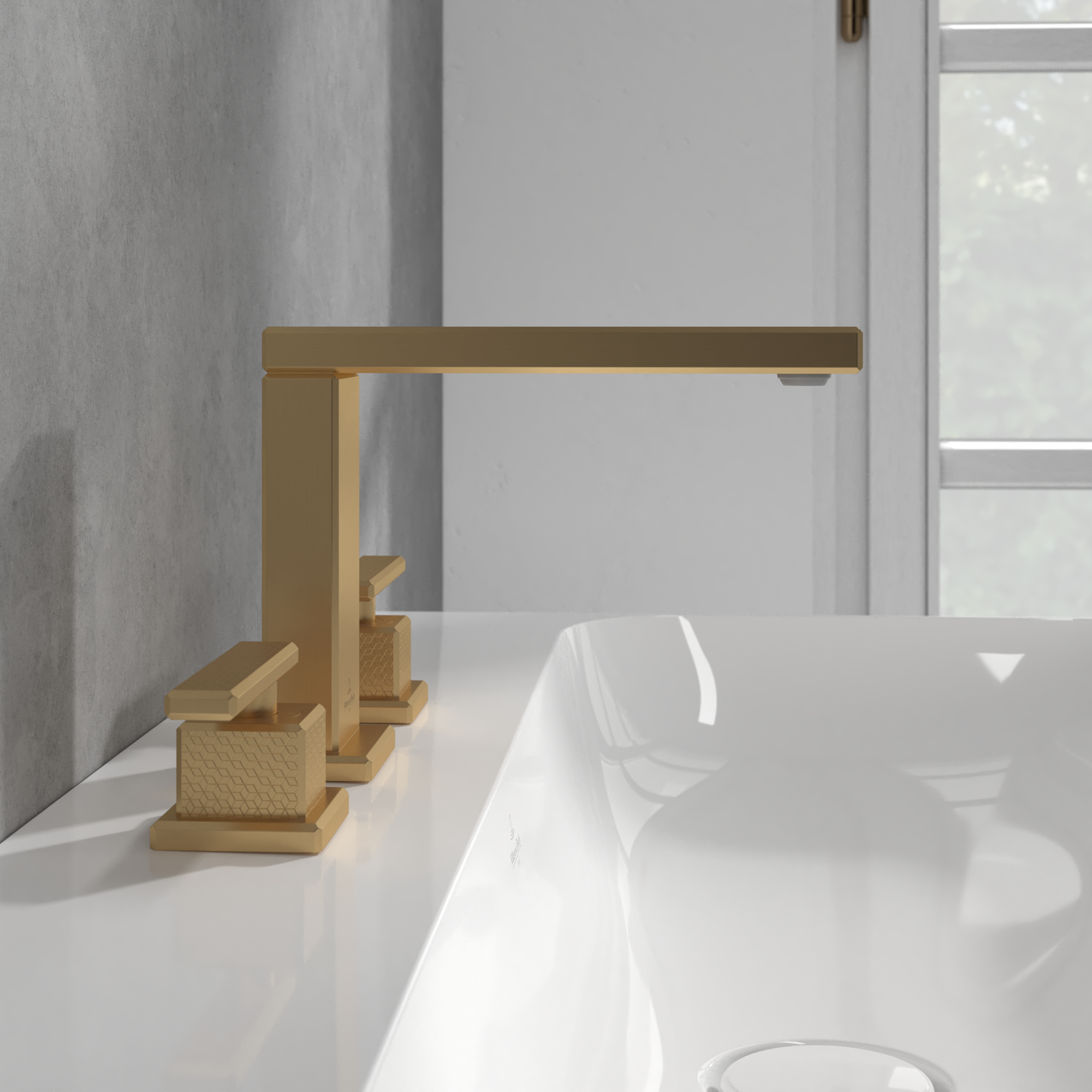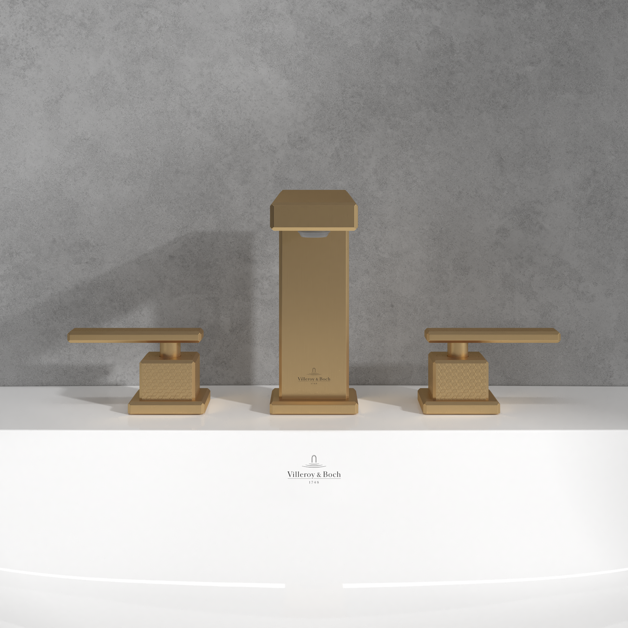 Mettlach Driegats wastafelkraan, Zonder Push-Open afvoergarnituur, Brushed Gold