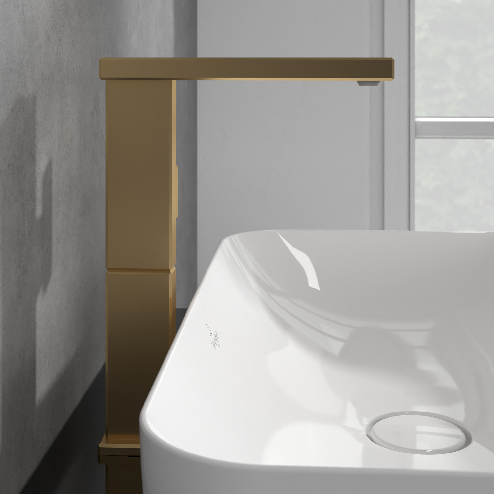 Mettlach Eengreeps wastafelkraan verhoogd, Zonder Push-Open afvoergarnituur, Brushed Gold
