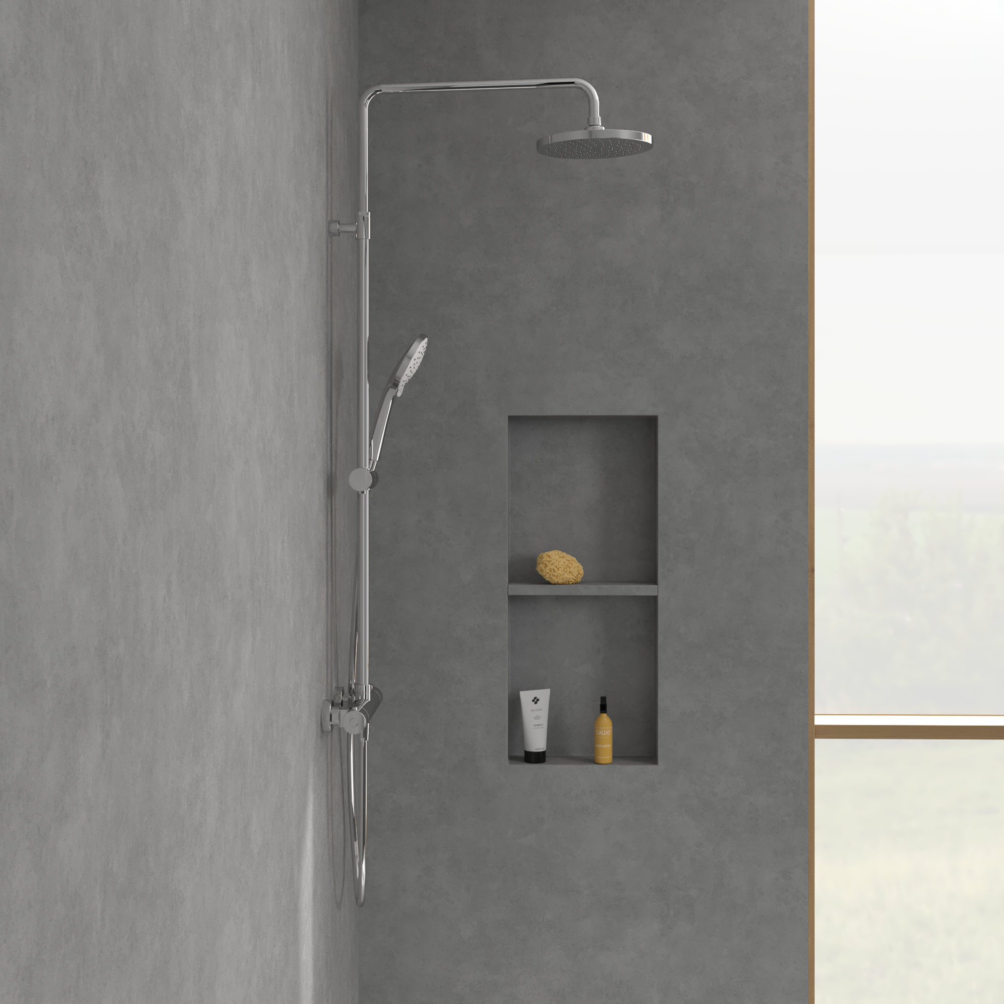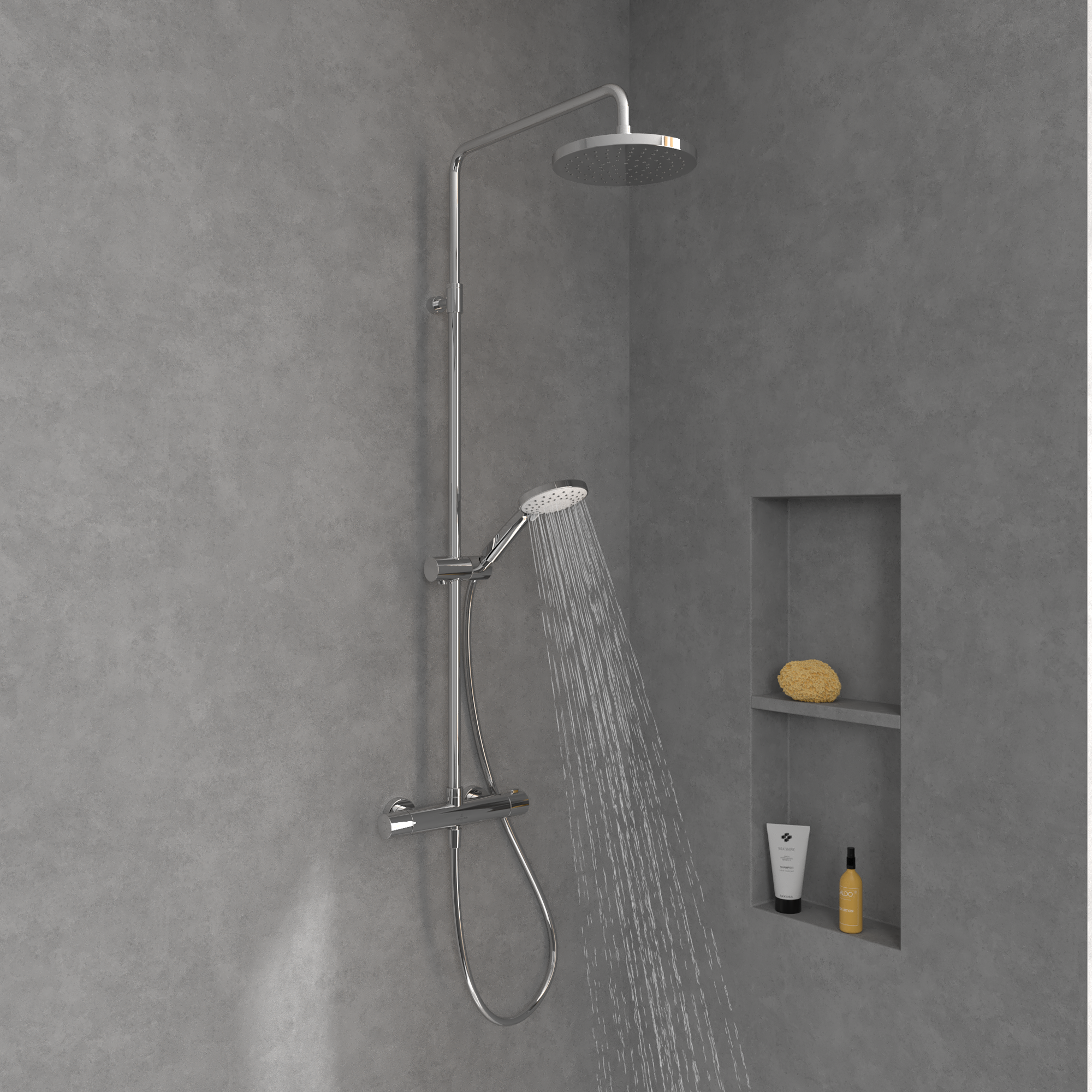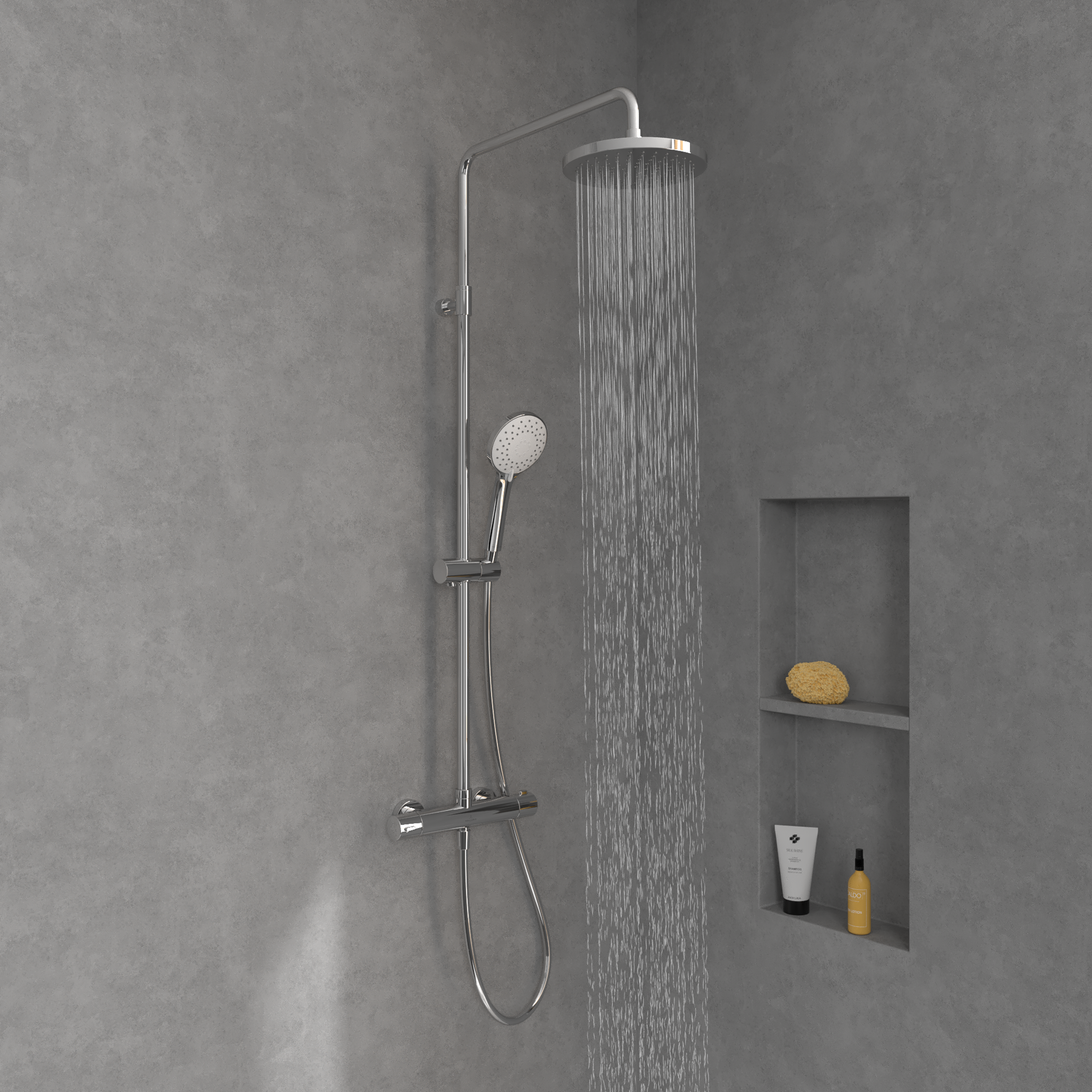 Universal Showers Douchesysteem met drie functies, voor wandmontage, Chrome