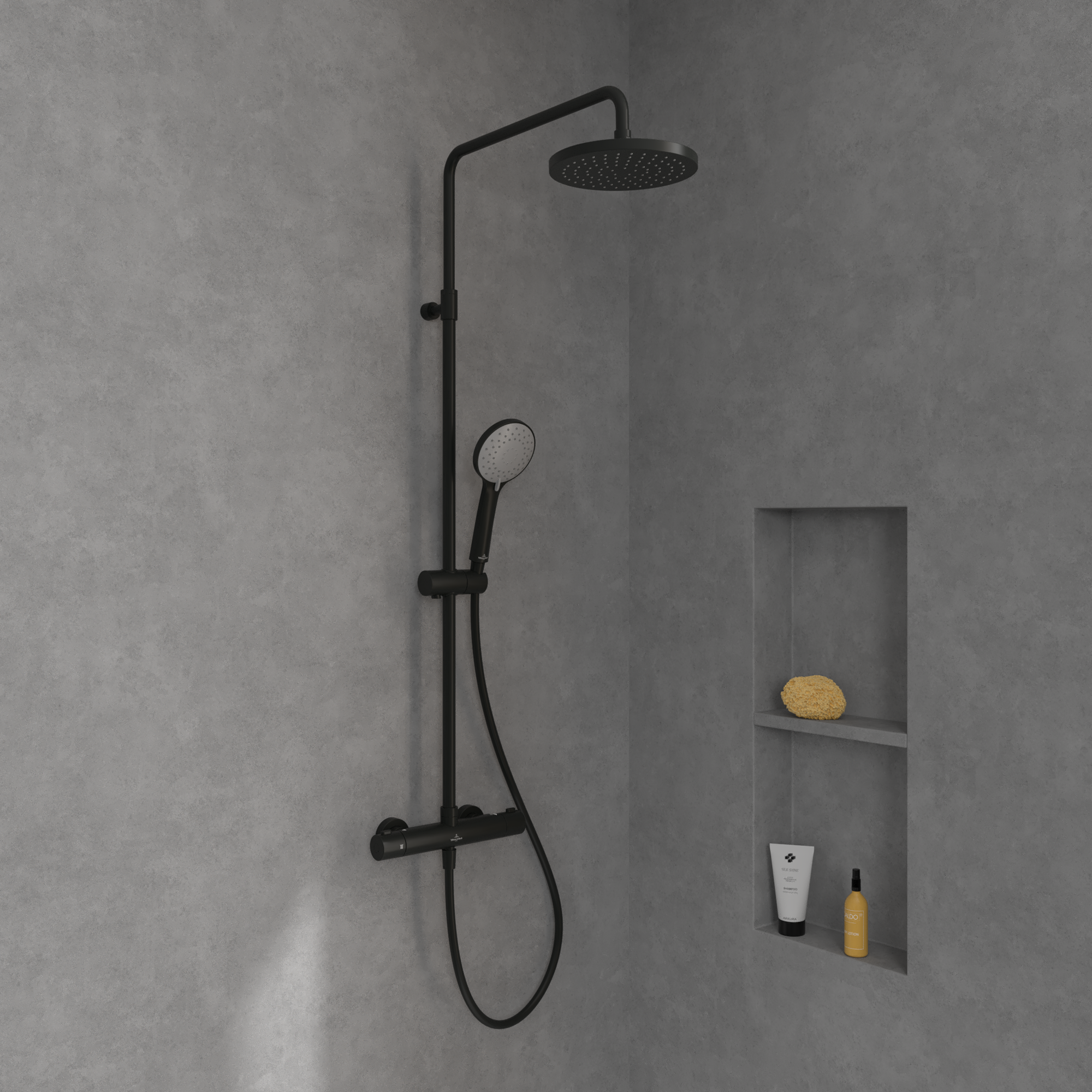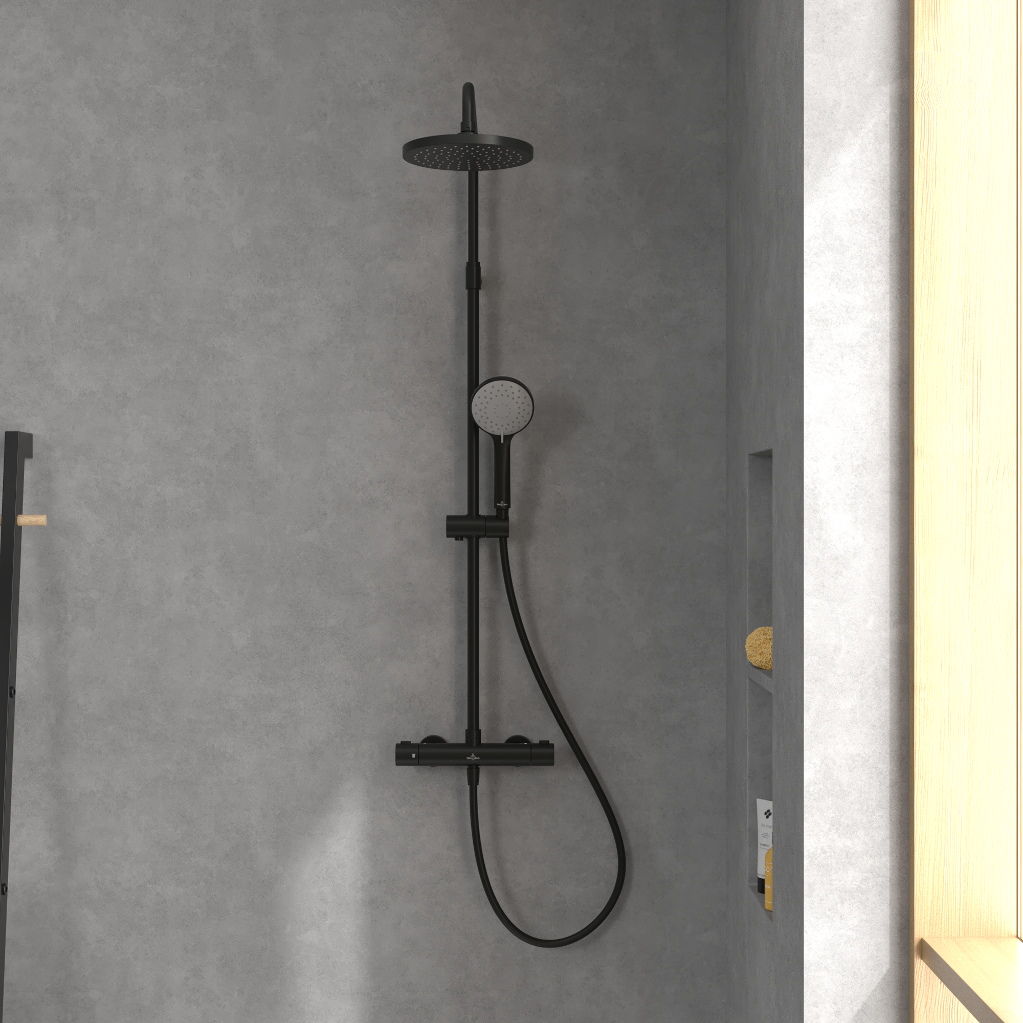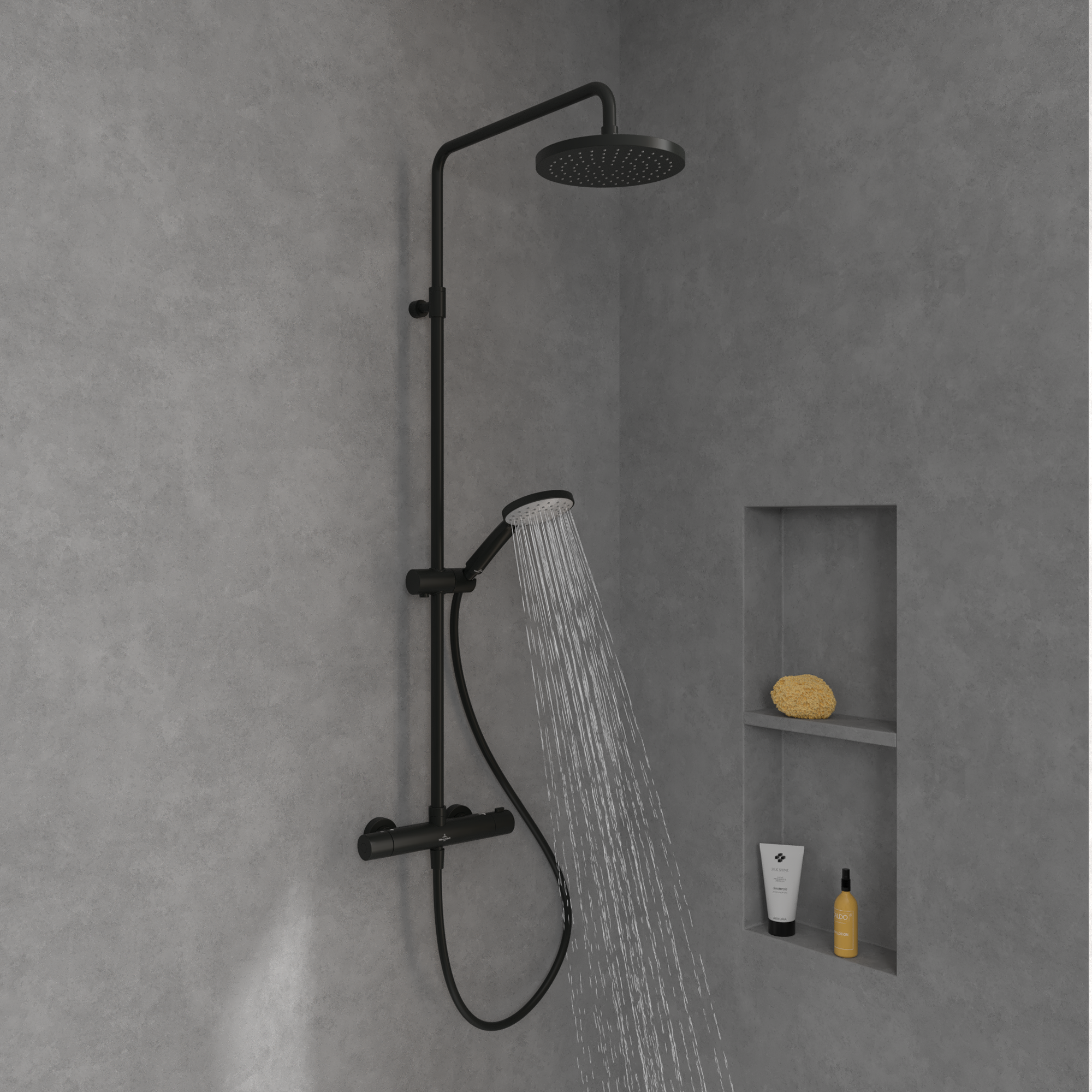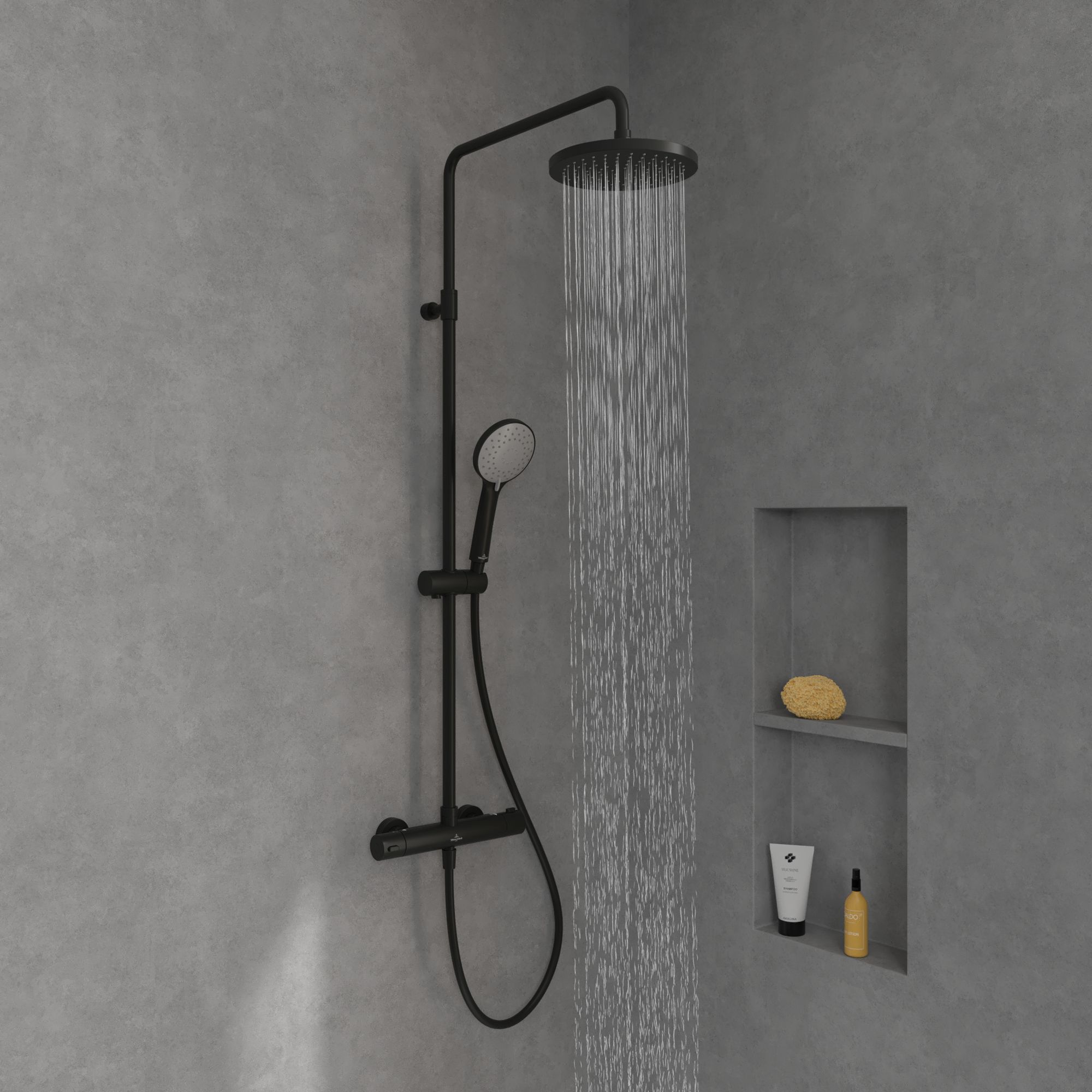 Universal Showers Douchesysteem met drie functies, voor wandmontage, Matt Black
